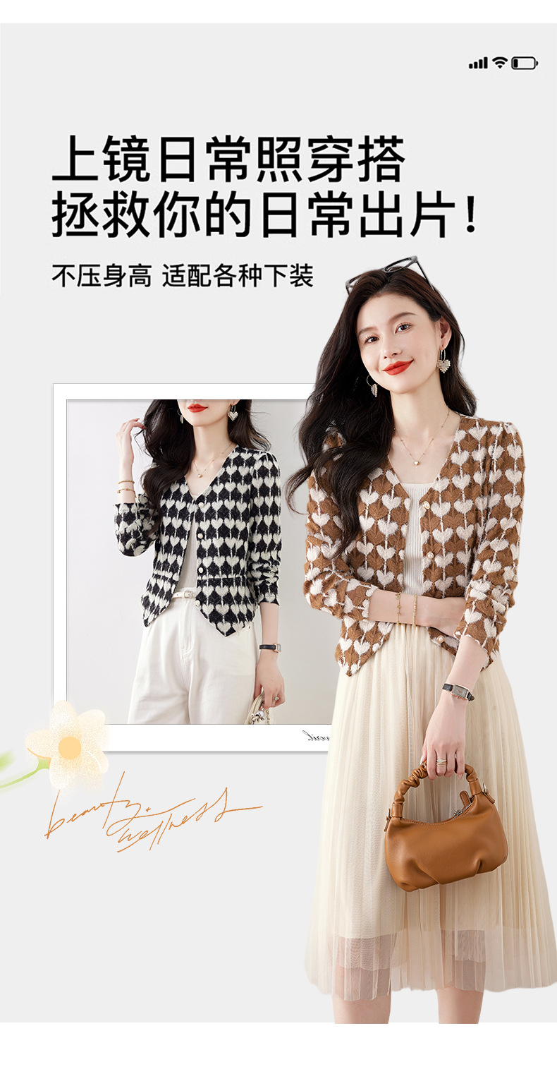 KQL 403H7928洋气上衣小香风短款修身针织开衫