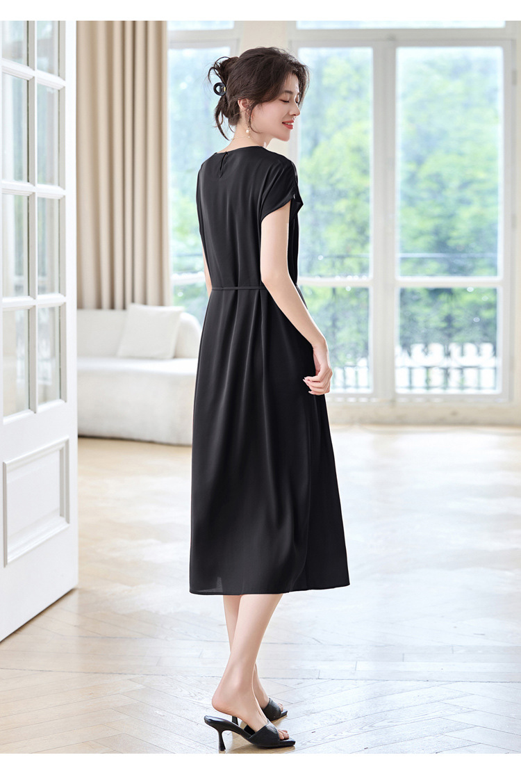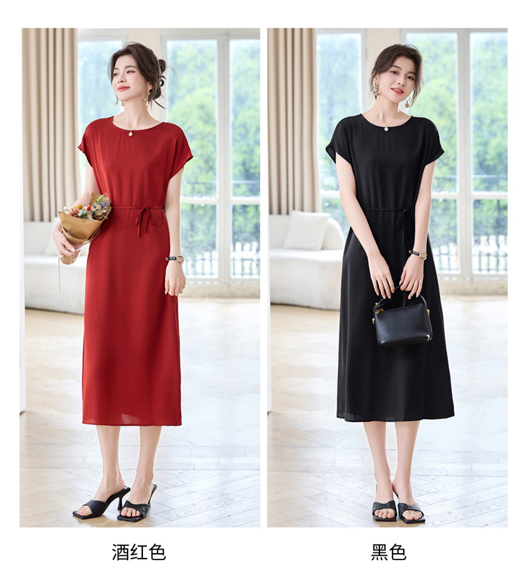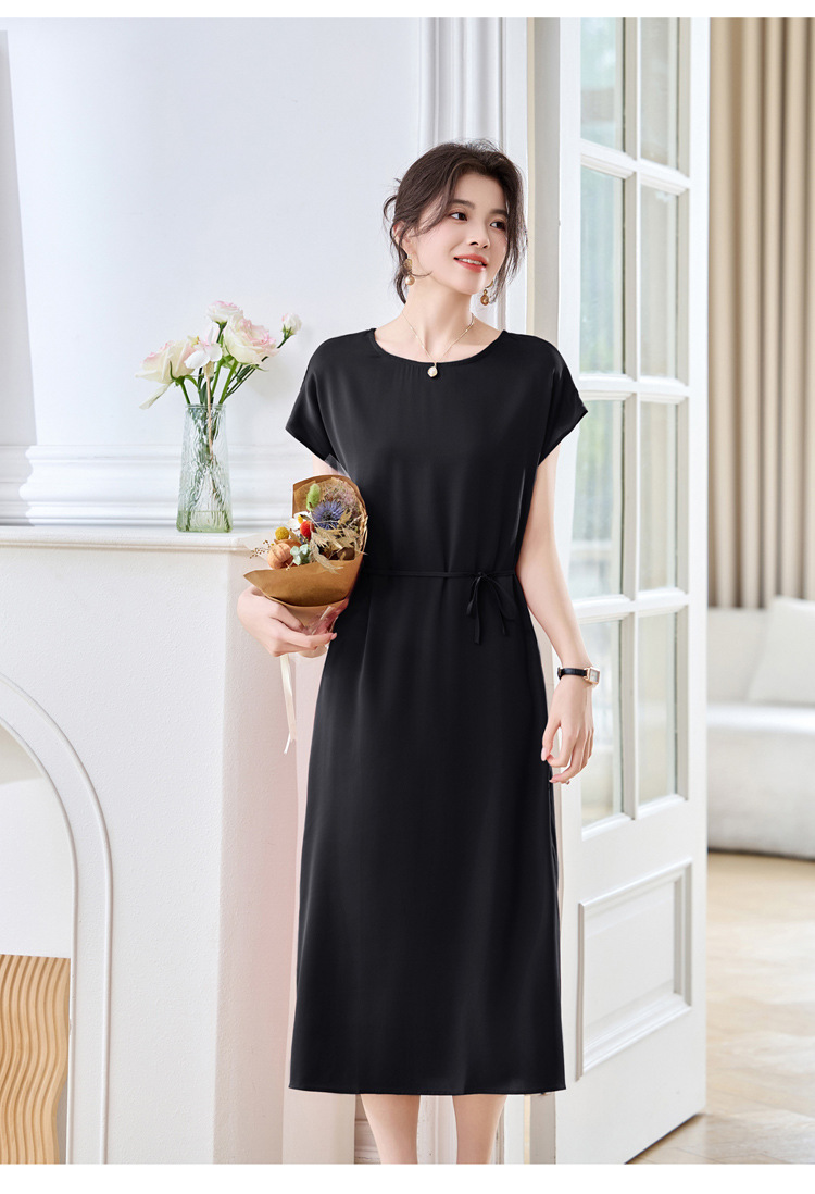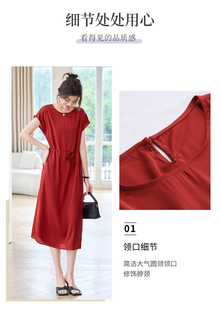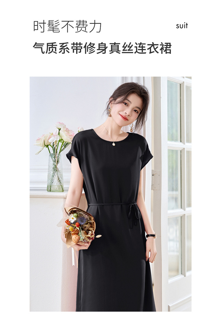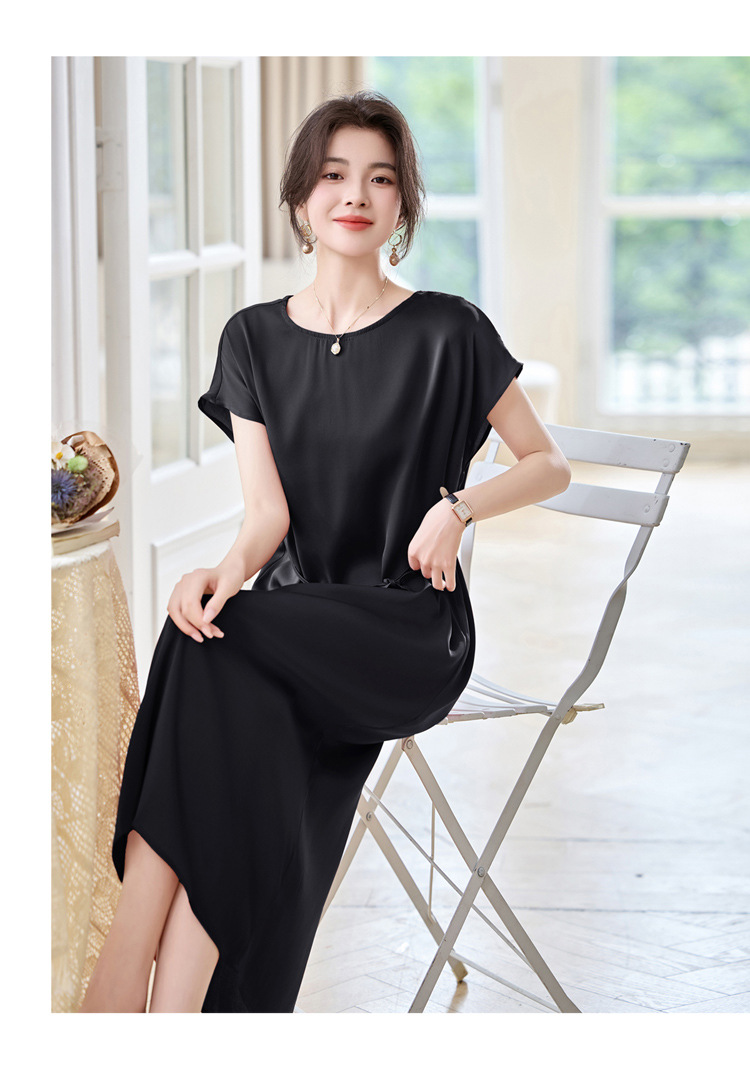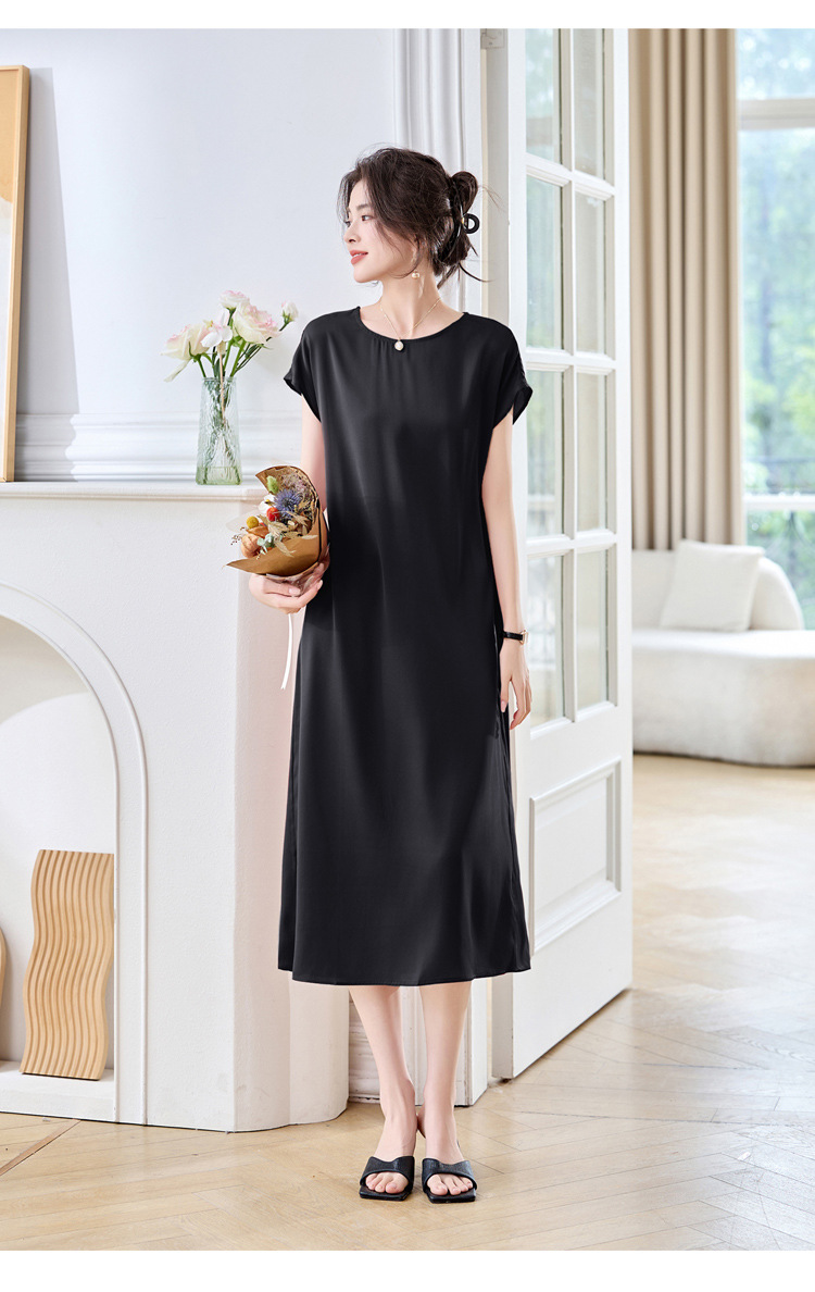 ASE2025夏季新款圆领设计光泽感桑蚕丝连衣裙时尚中长款高端轻奢裙子