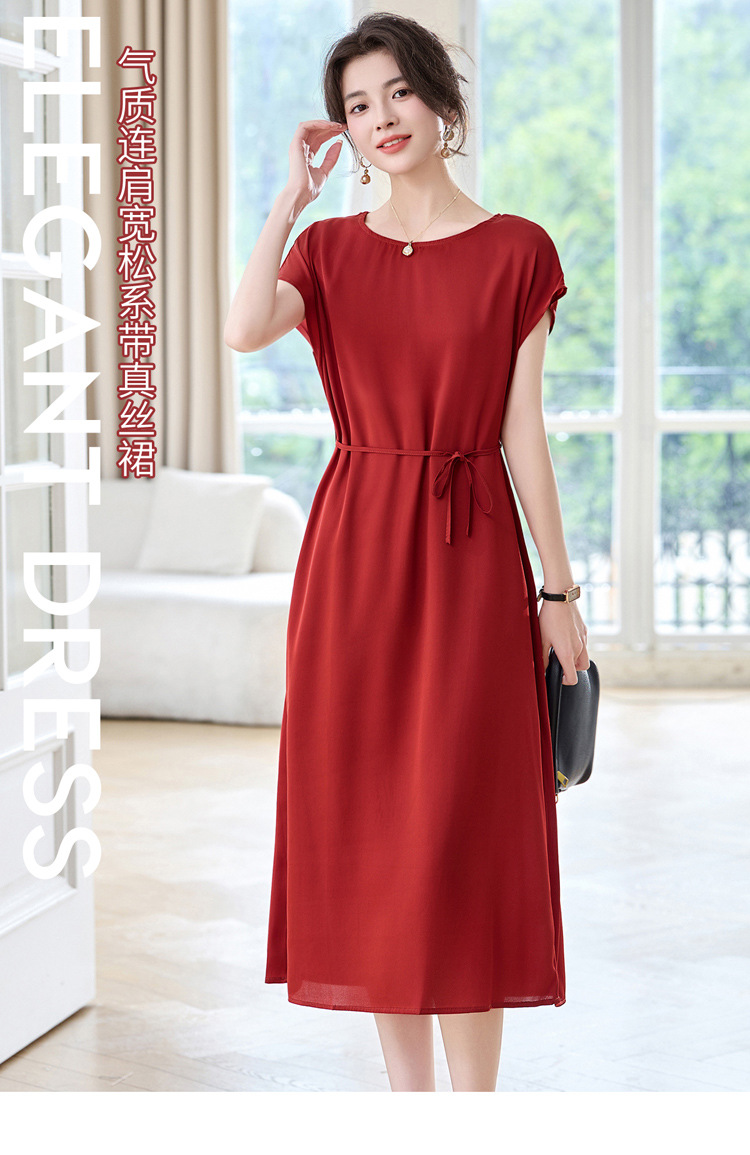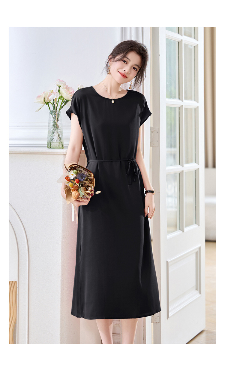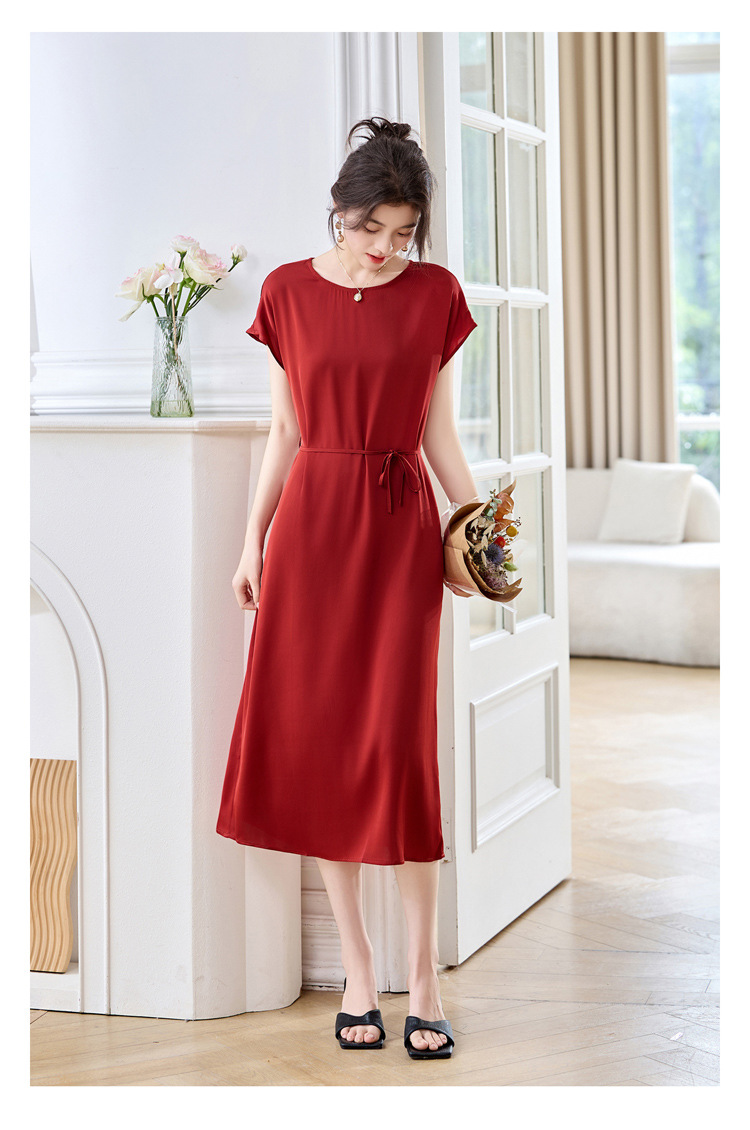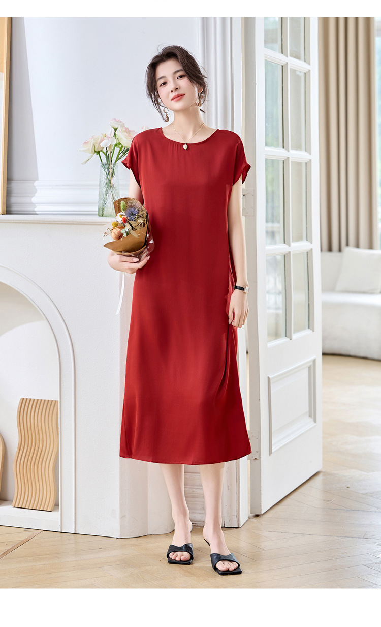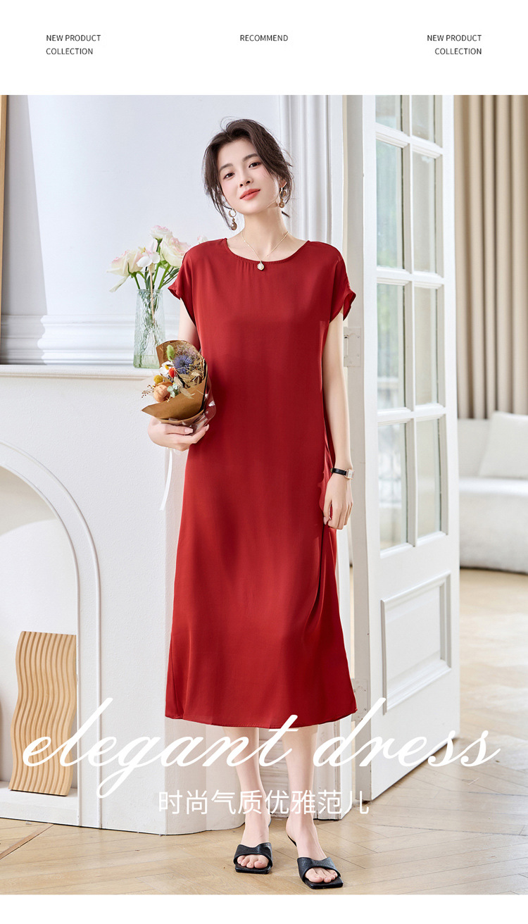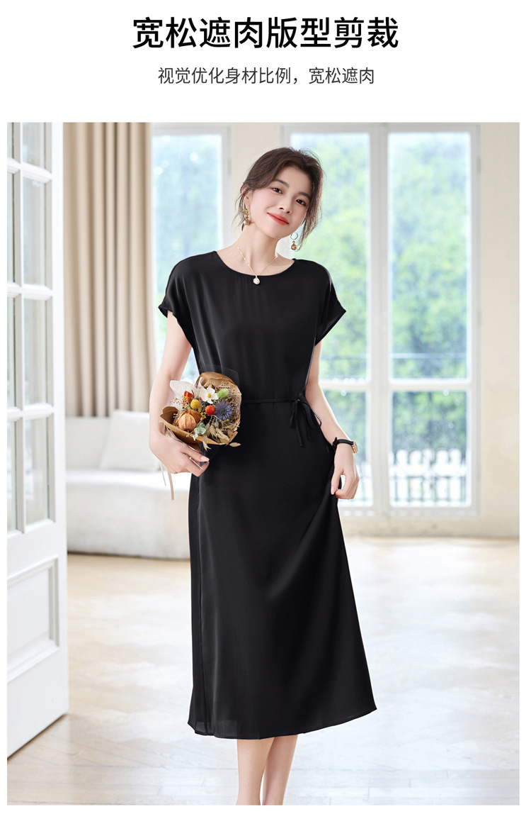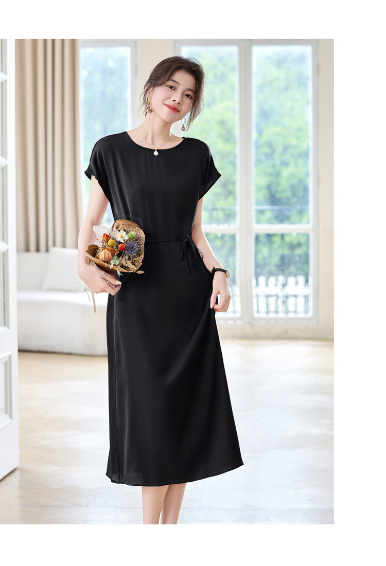 ASE2025夏季新款圆领设计光泽感桑蚕丝连衣裙时尚中长款高端轻奢裙子
