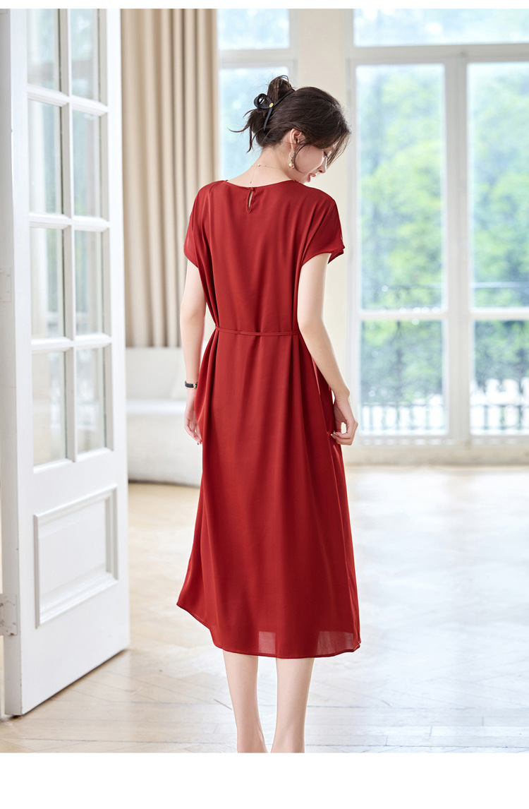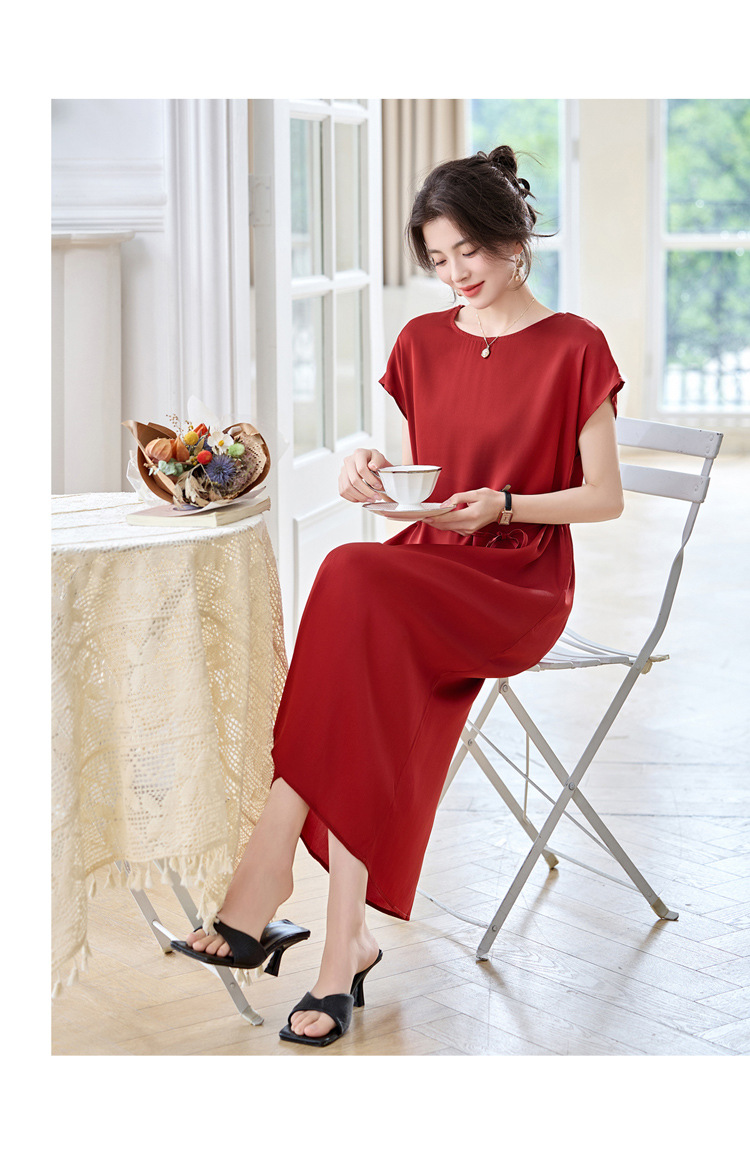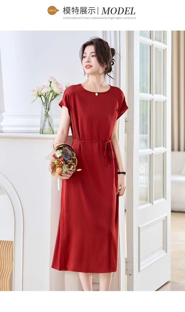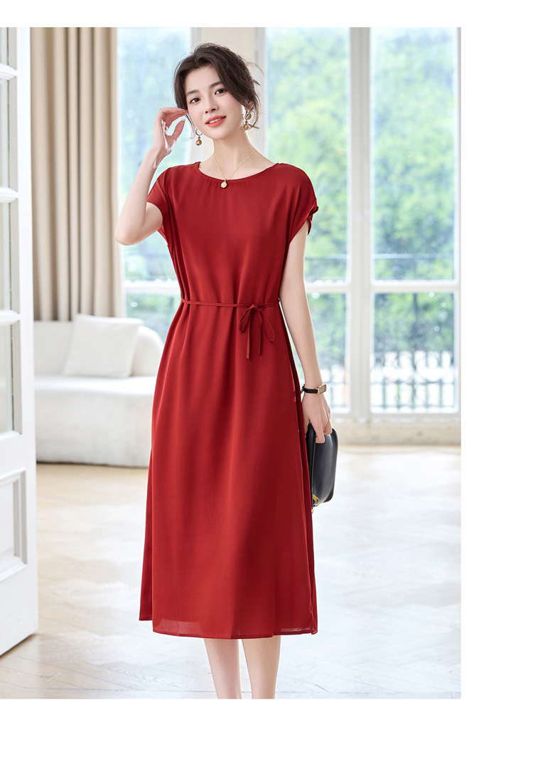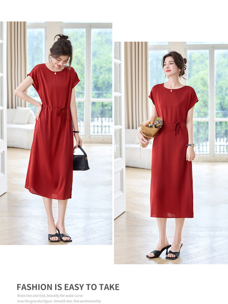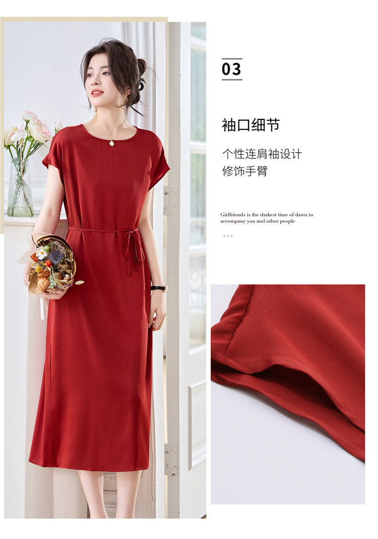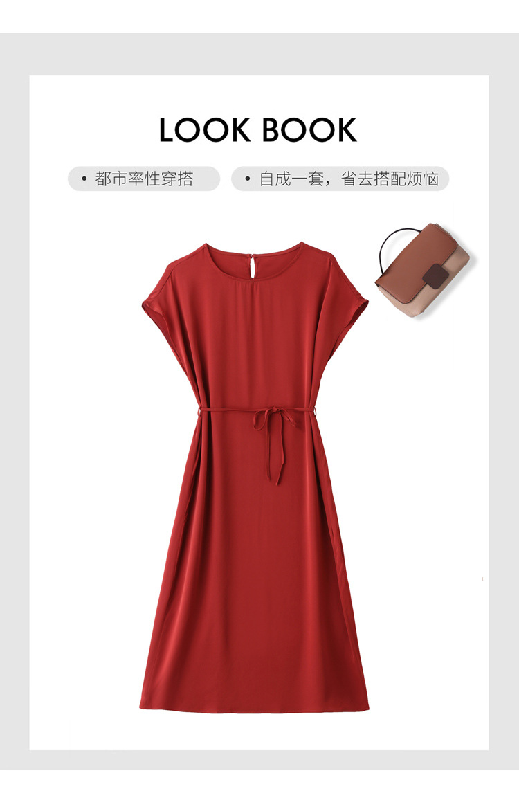ASE2025夏季新款圆领设计光泽感桑蚕丝连衣裙时尚中长款高端轻奢裙子