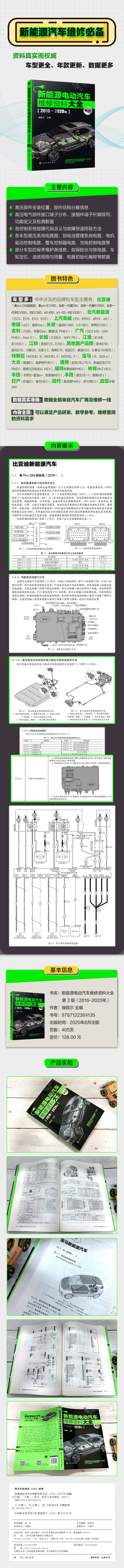 随着新能源电动汽车这一行业的兴起,整个产业链的配套服务,相关电动汽车配件、服务组件的研发,教育产业中汽车新能源专业的建设,以及电动汽车的售后技术支持,维修养护服务等都在寻找着属于各自的机遇。而在技术出版输出方面,种类繁多的相关新能源汽车技术以及电动汽车原理构造、维修与养护的图书也数不胜数,但能够提供对应车辆数据与技术资料的书籍却很少。为此,笔者根据当前市场热销及电动汽车(也包括油电混动车型)保有量的排行,选取了数款国内外知名品牌新能源电动车型,并集中整理了这些车型的技术资料,以供行业之需。