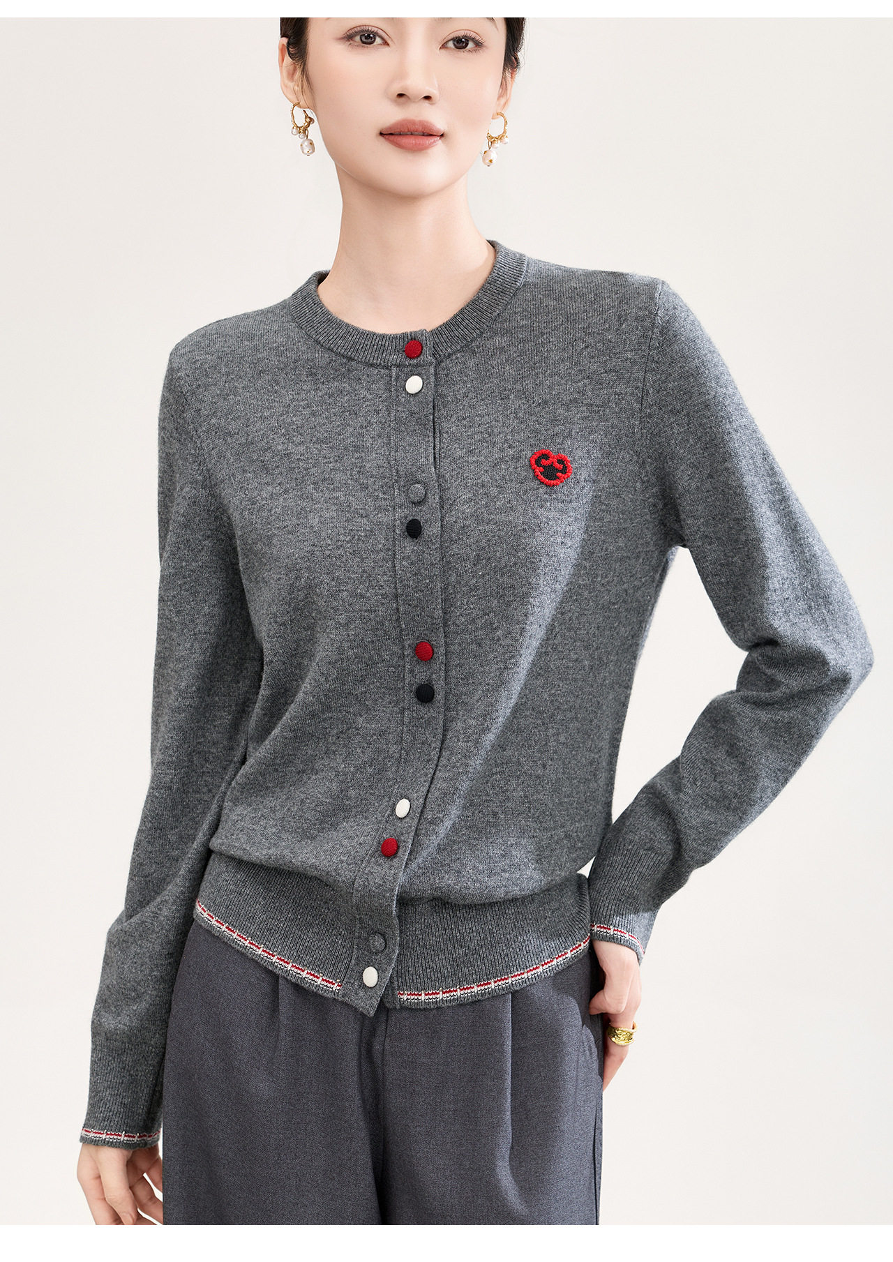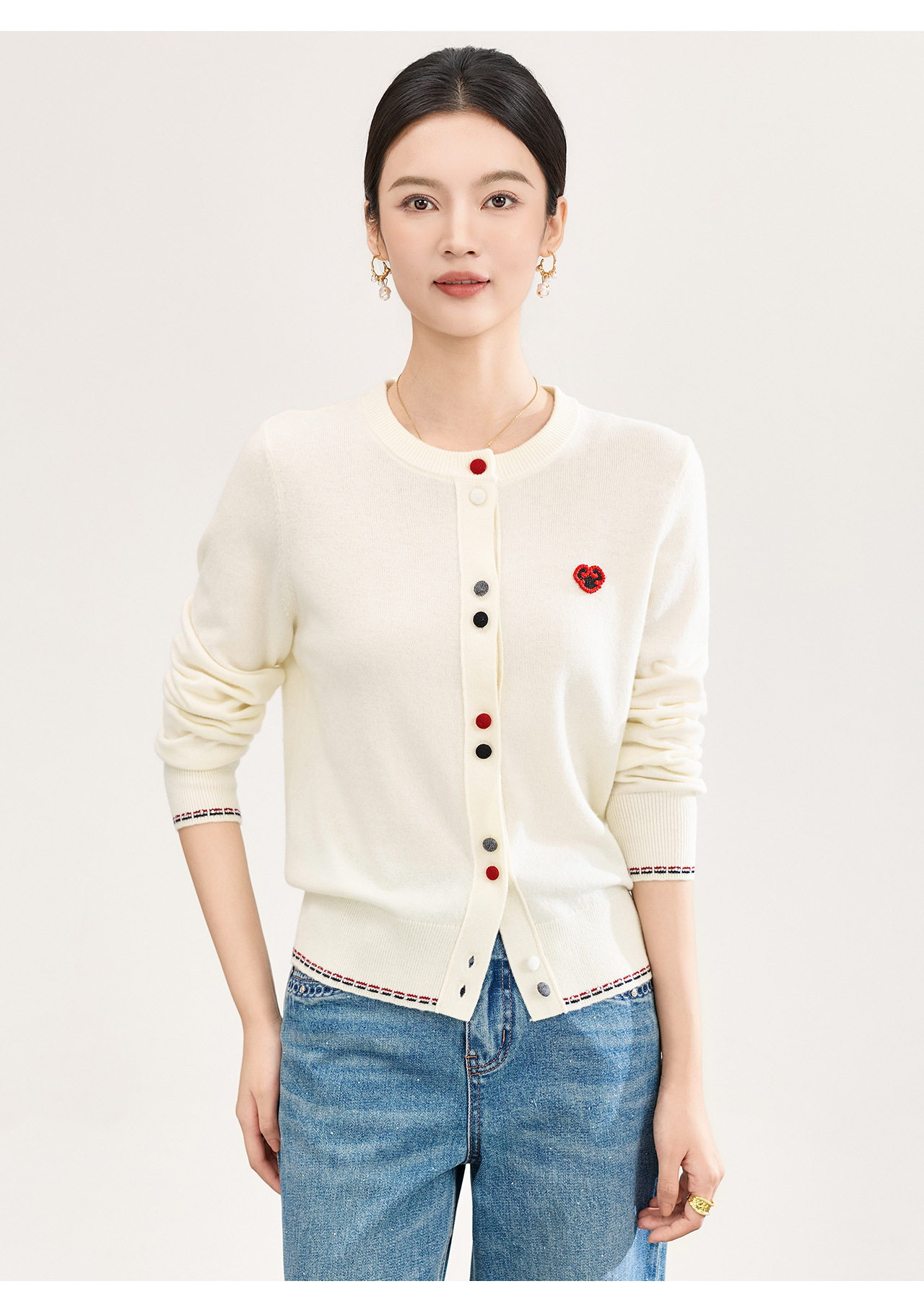 「高货wl」全新升级【铂金会员275/天猫369/差价94】(10739)洛诗琳气质纯羊毛开衫2026春季新款彩色纽扣针织外套女