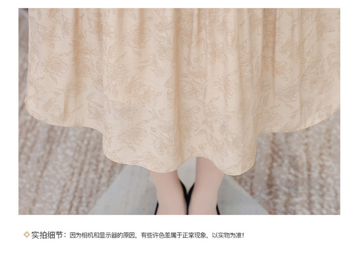 复古改良中式连衣裙夏季短袖高腰裙时尚气质印花中长款A字裙 商品图4