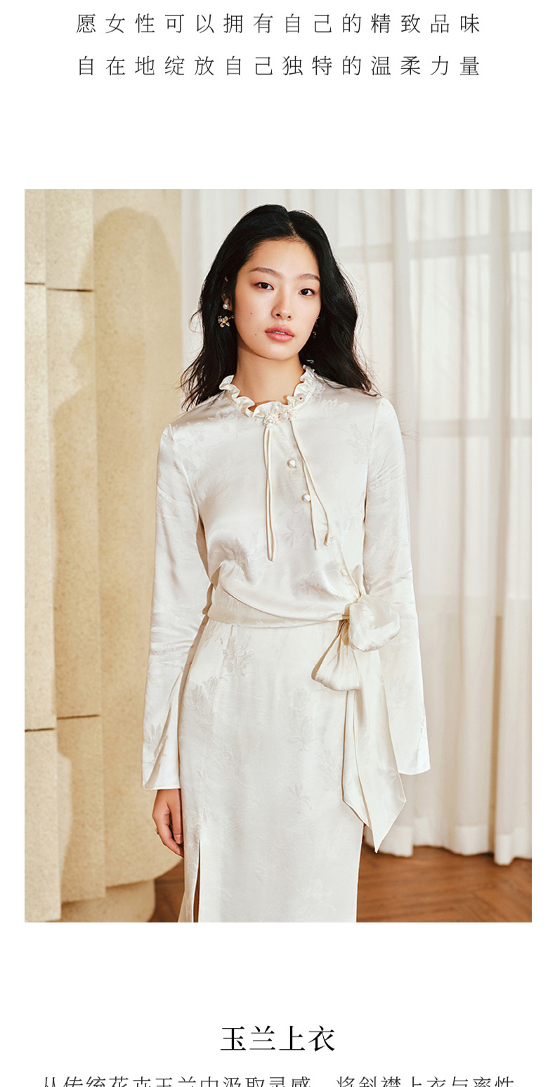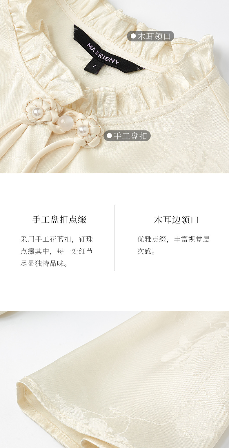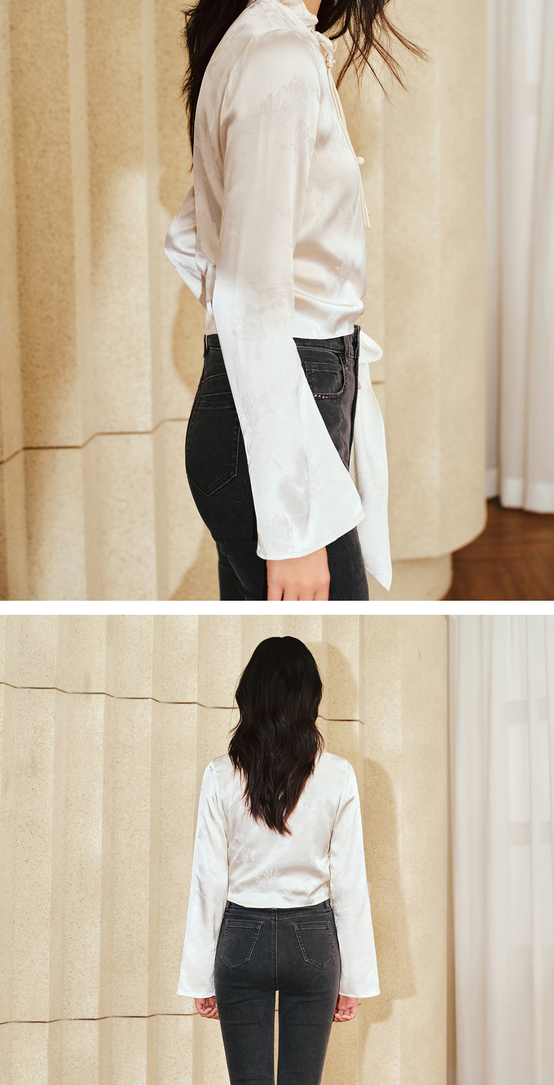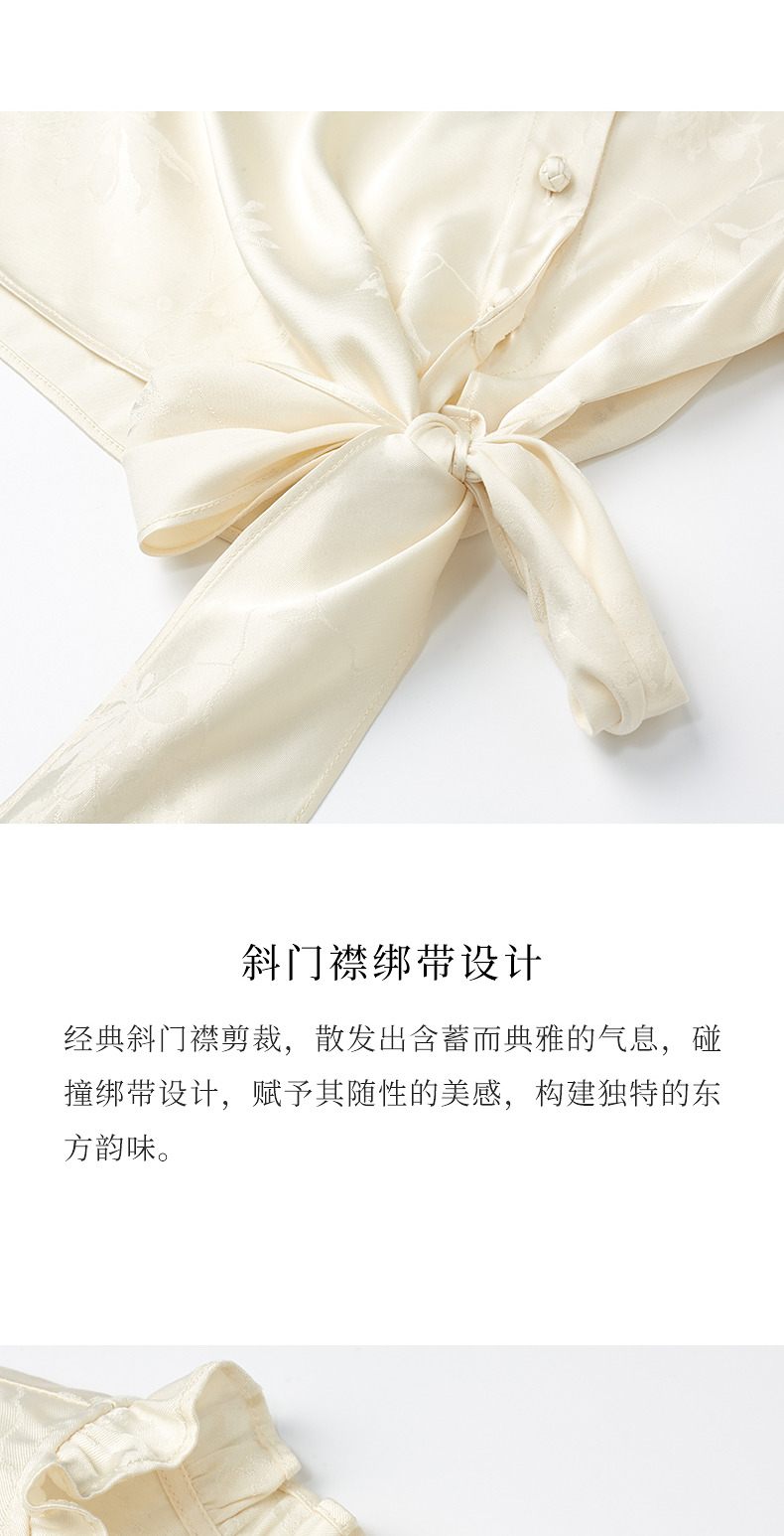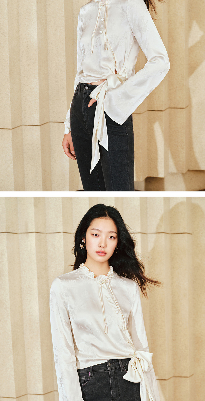 【商场同款】MAXRIENY国风新中式盘扣玉兰花衬衫斜门襟绑带上衣(货号:MS85TP017)