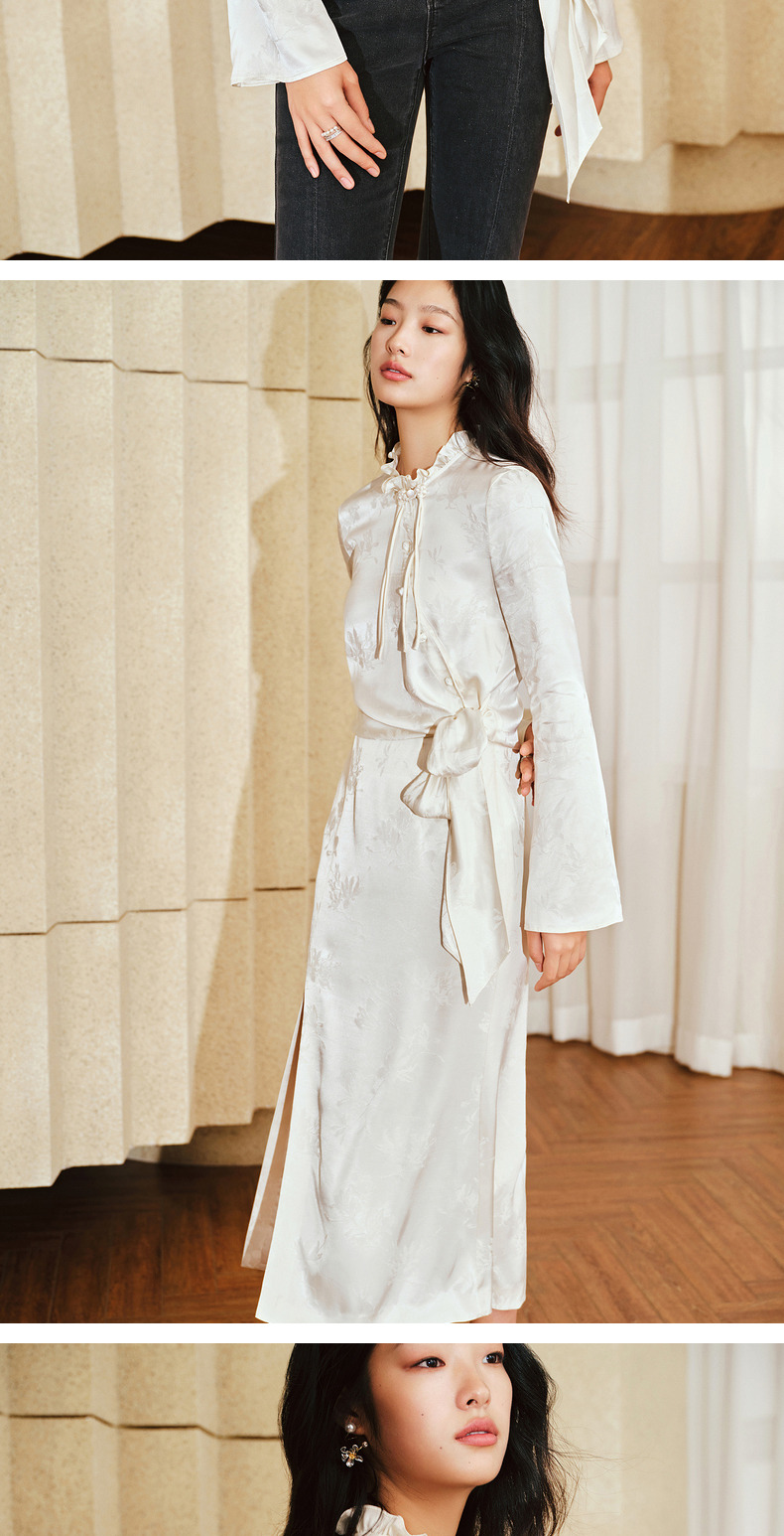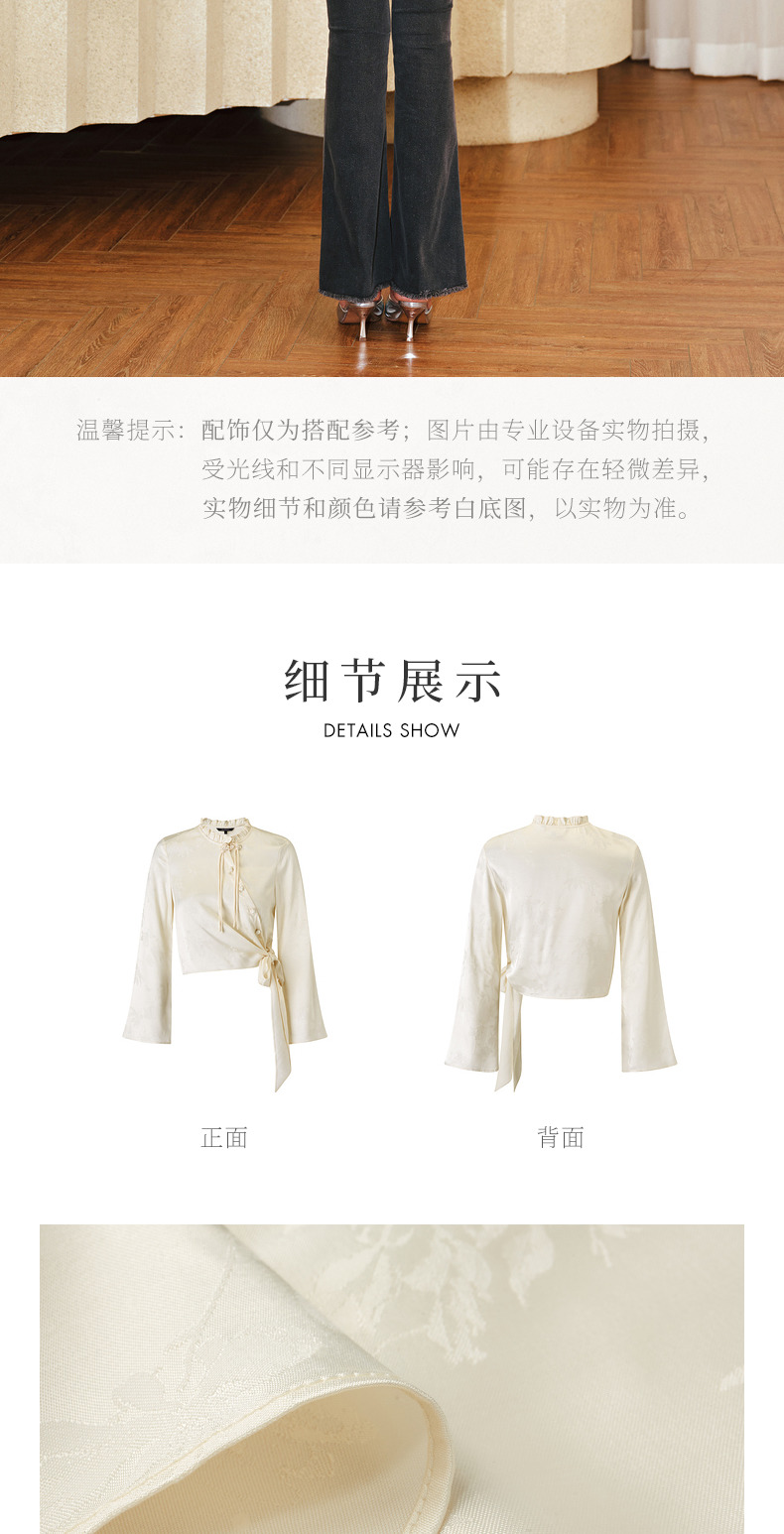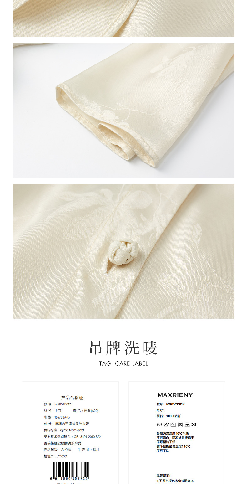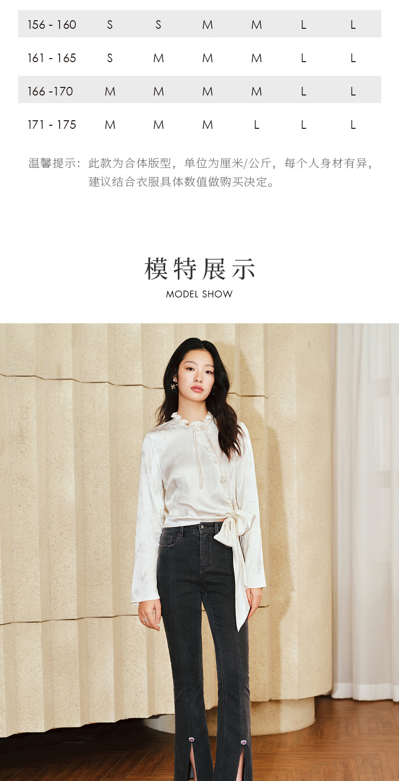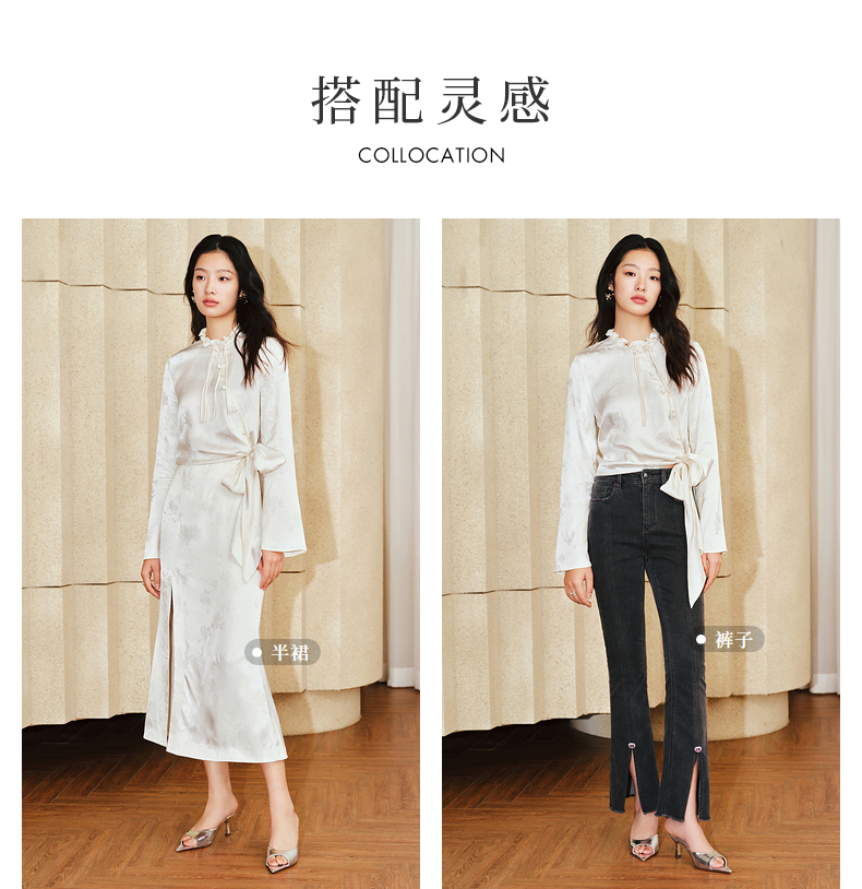 【商场同款】MAXRIENY国风新中式盘扣玉兰花衬衫斜门襟绑带上衣(货号:MS85TP017)