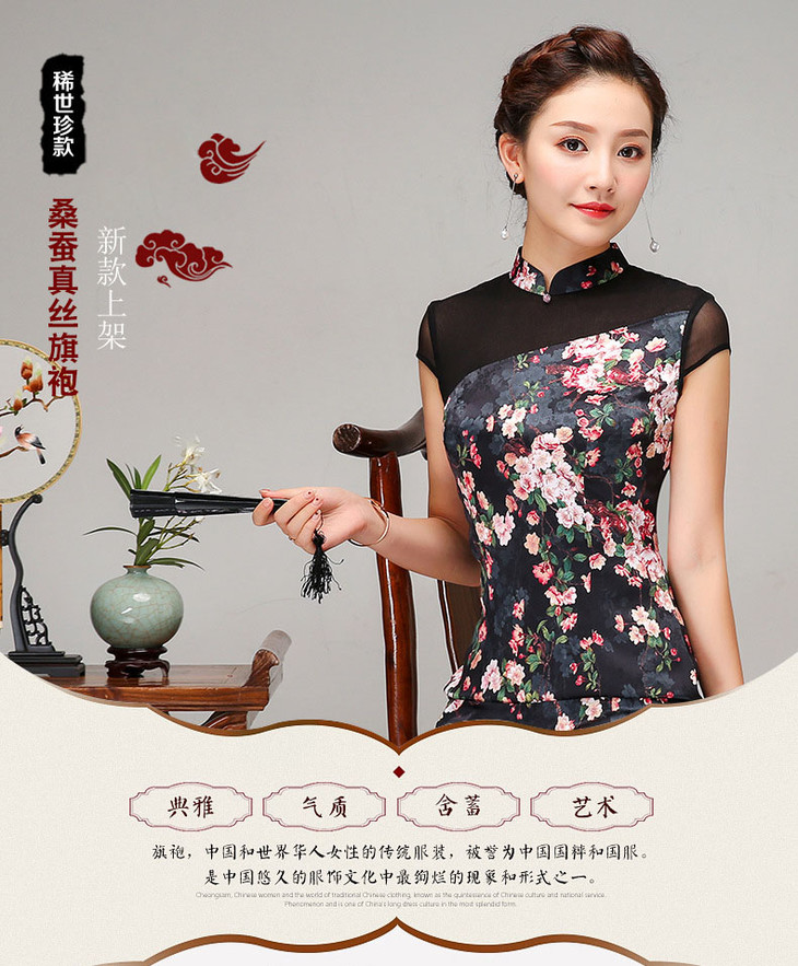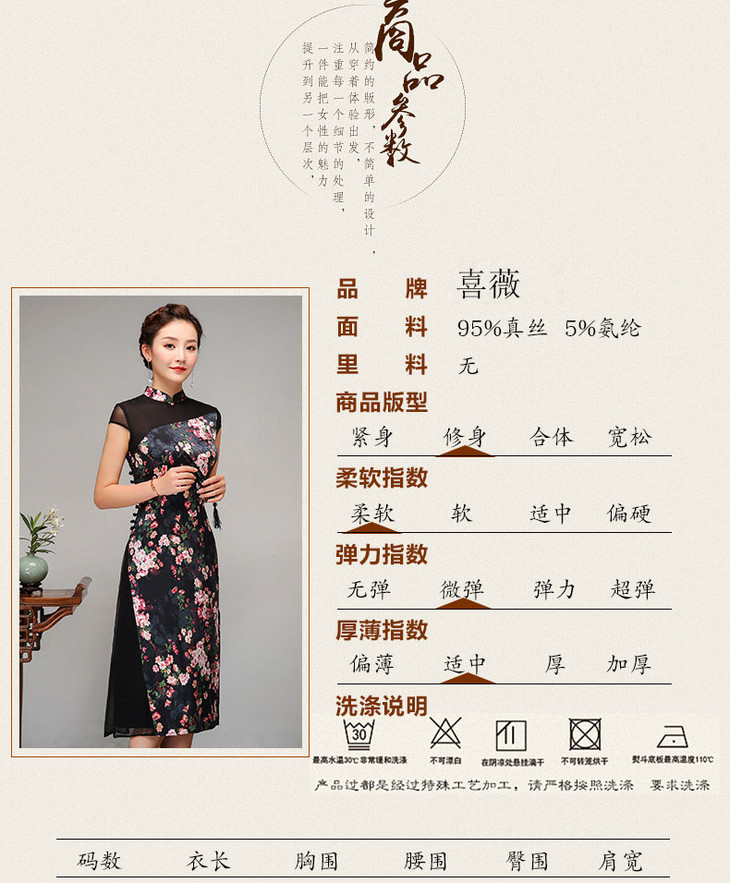 上海旗袍厂TZRY-11010新夏季定制真丝旗袍 复古改良优雅黑色连衣裙休闲 性感舒适