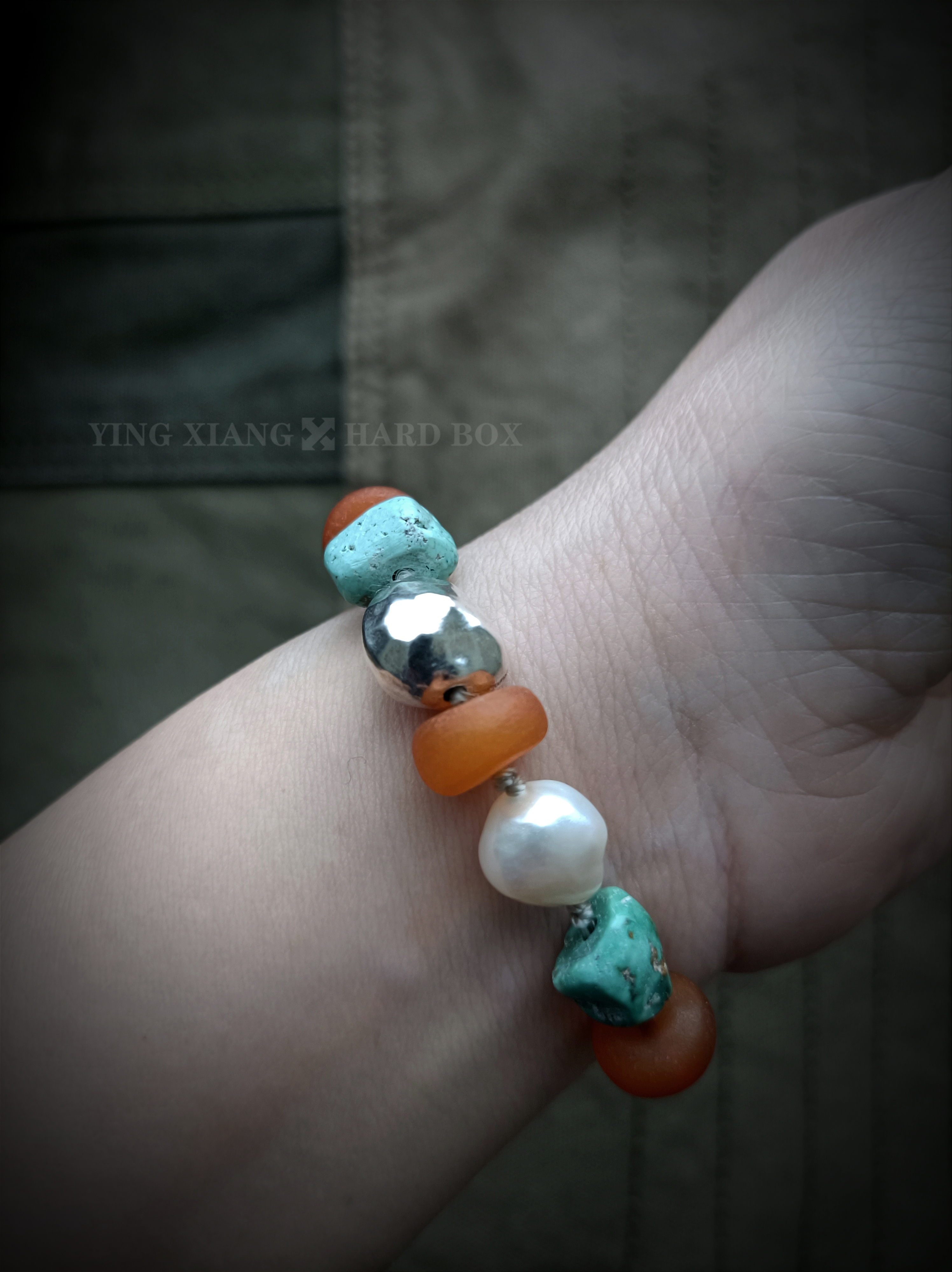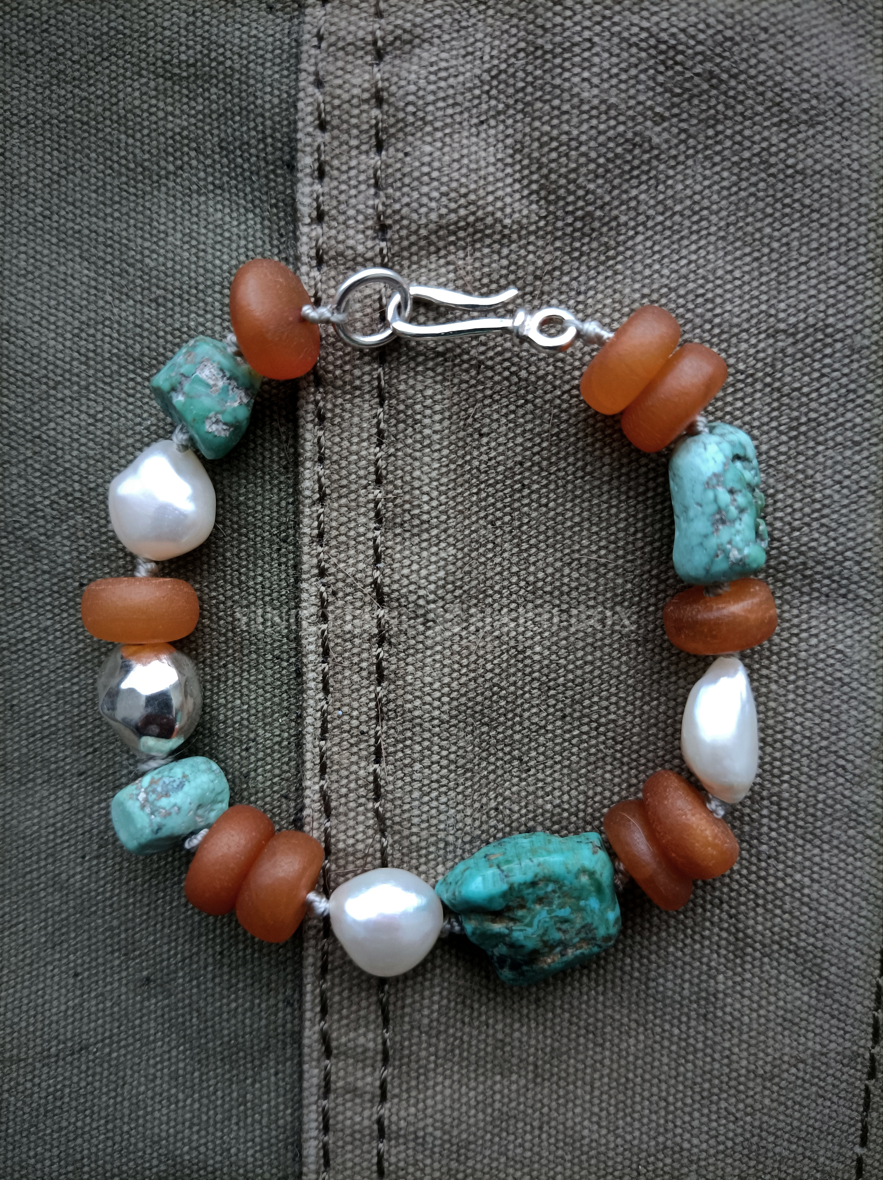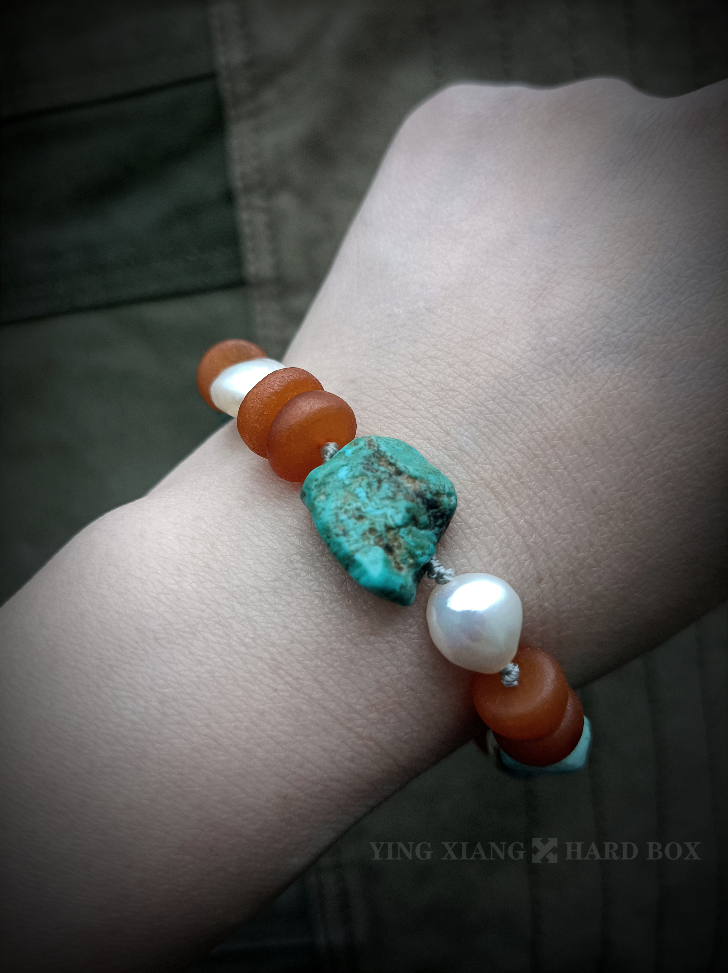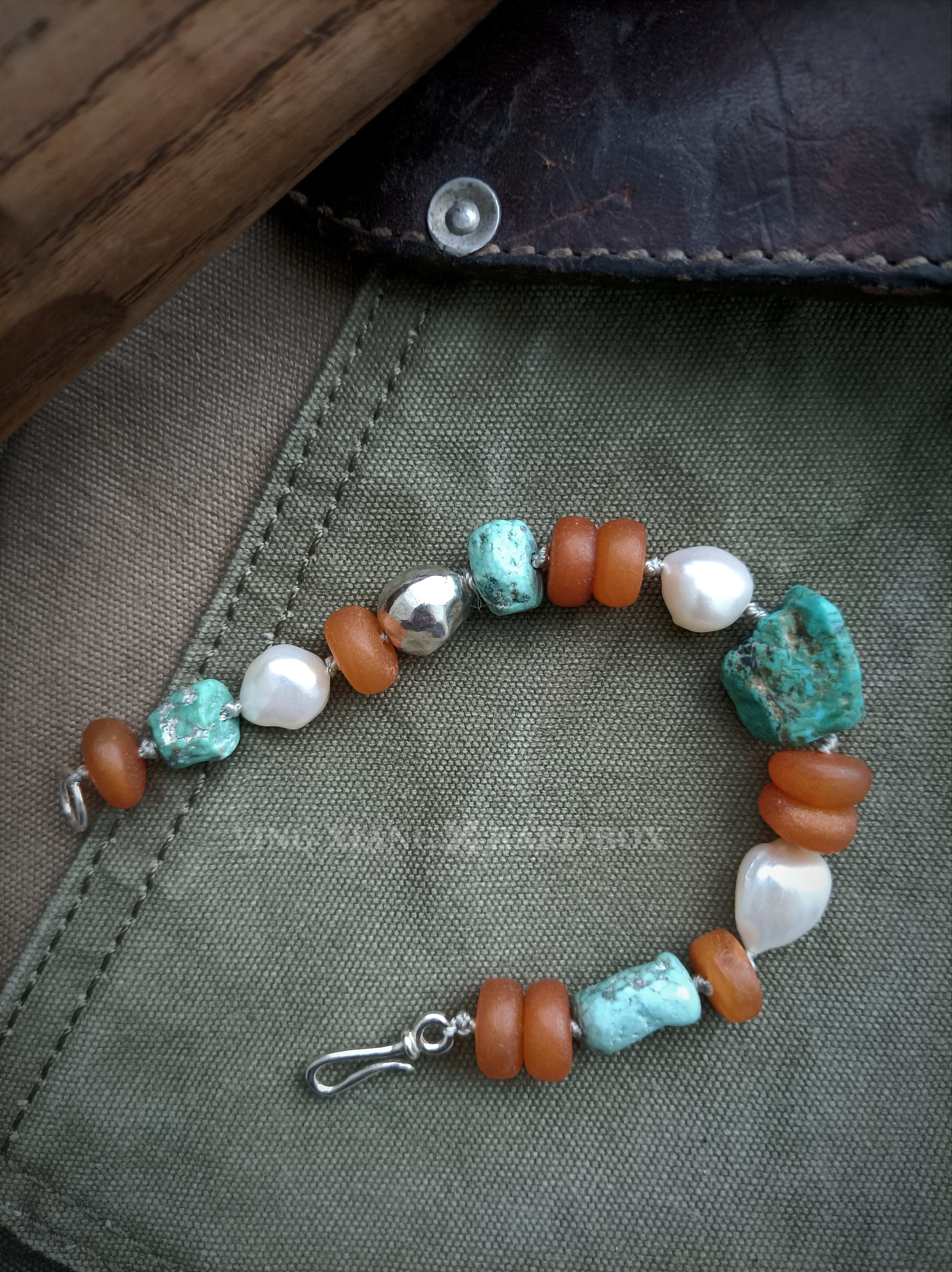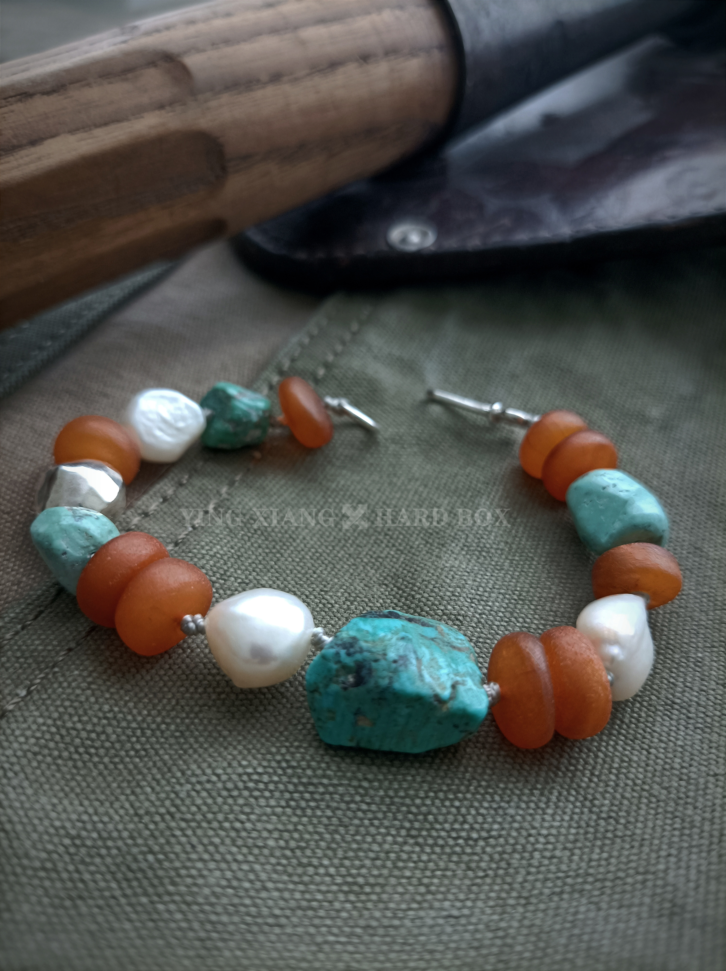 天然老绿松石+#随型 天然老蜜蜡隔片 天然巴洛克异形珍珠 925银隔珠+连接扣