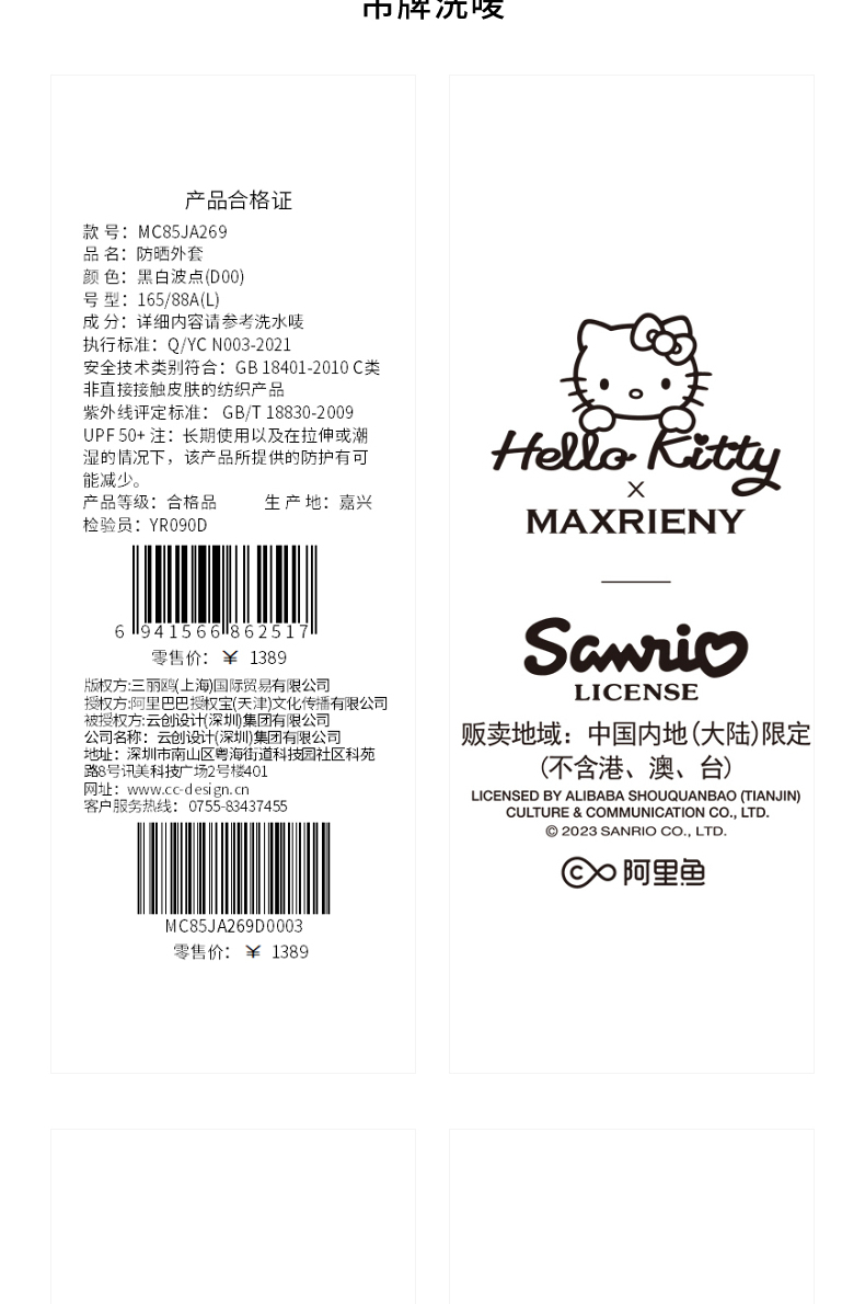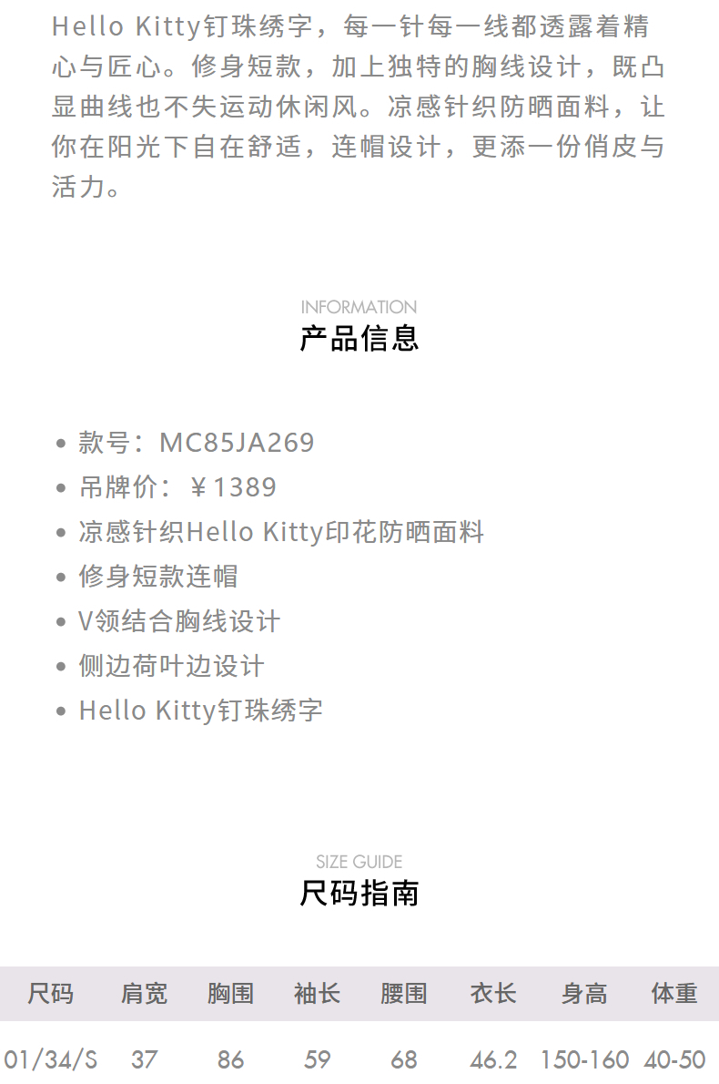 【Hello Kitty时尚防晒系列】MAXRIENY Kitty短款连帽防晒外套(货号:MC85JA269)
