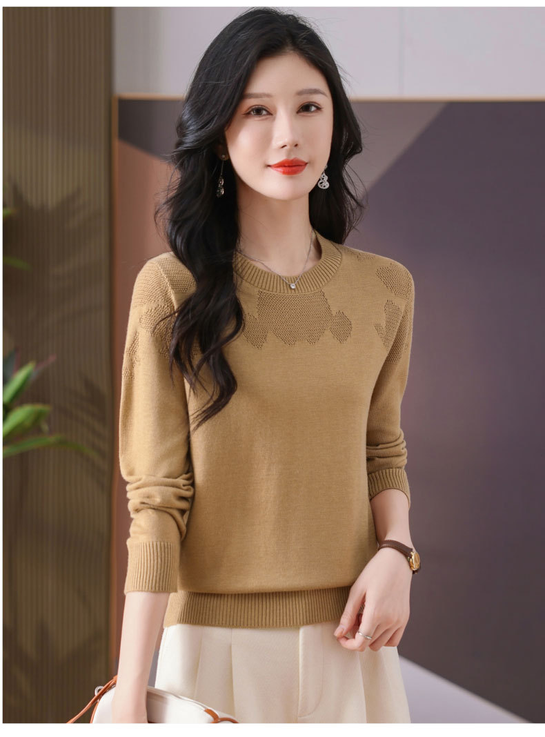 CC-101-26042针织打底衫女士长袖早秋装2024新款春秋薄款上衣内搭毛衣