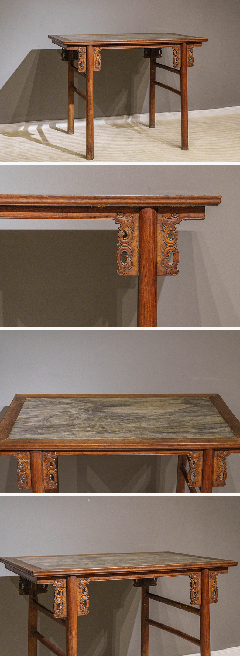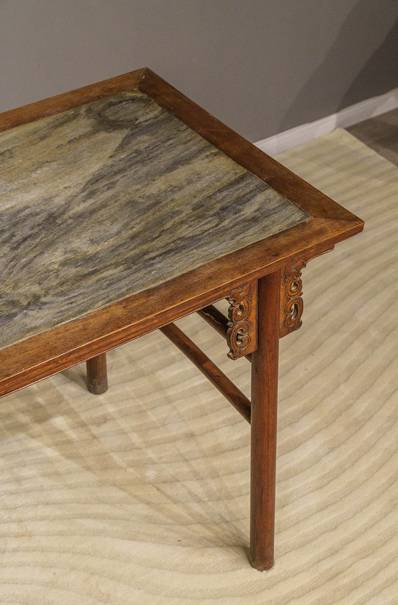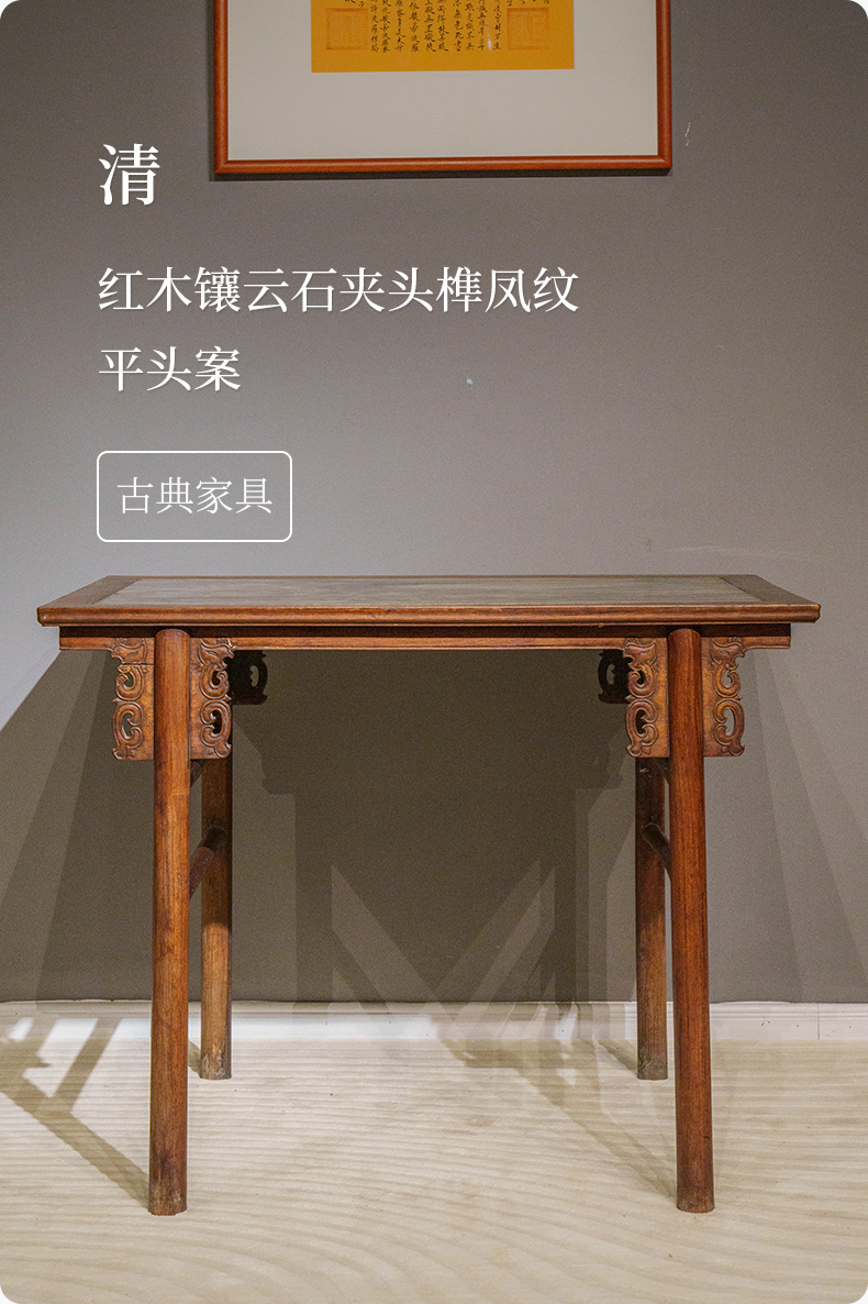 清 红龙镶云石夹头榫凤纹平头案