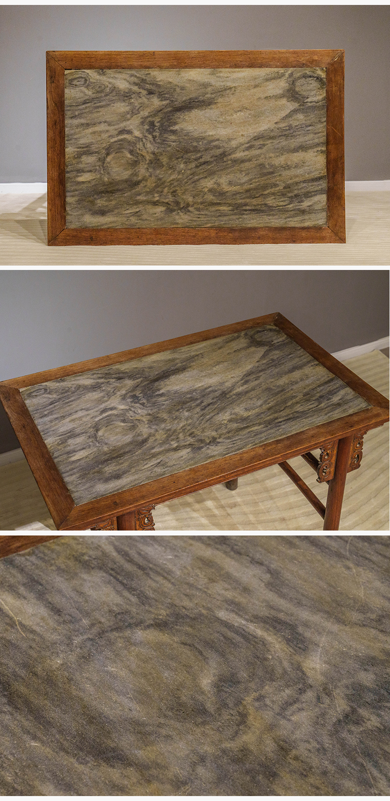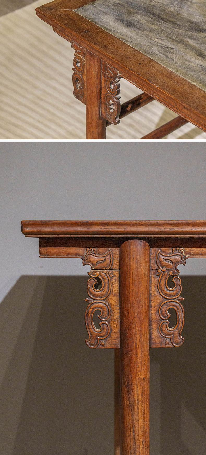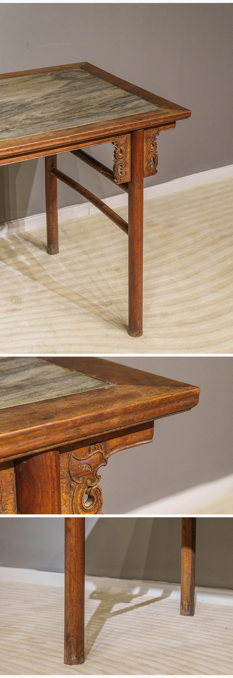 清 红龙镶云石夹头榫凤纹平头案