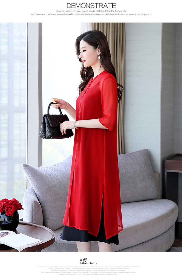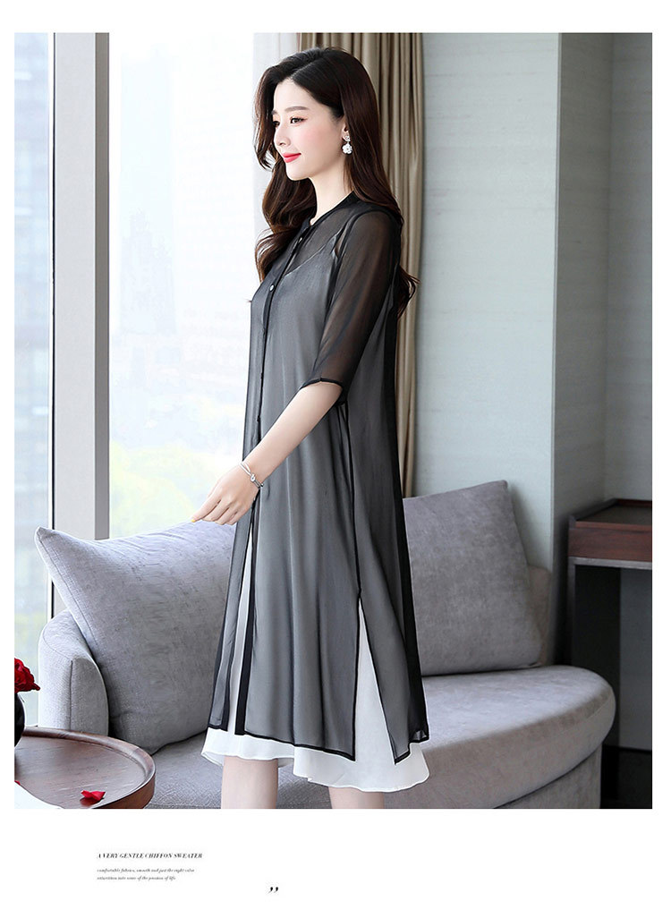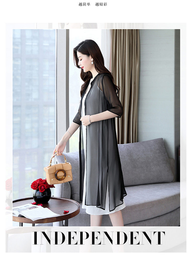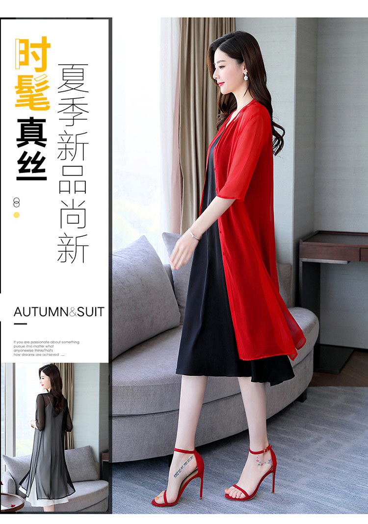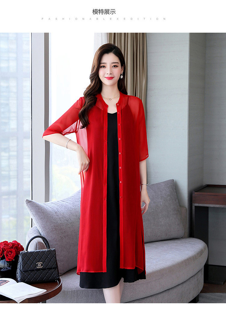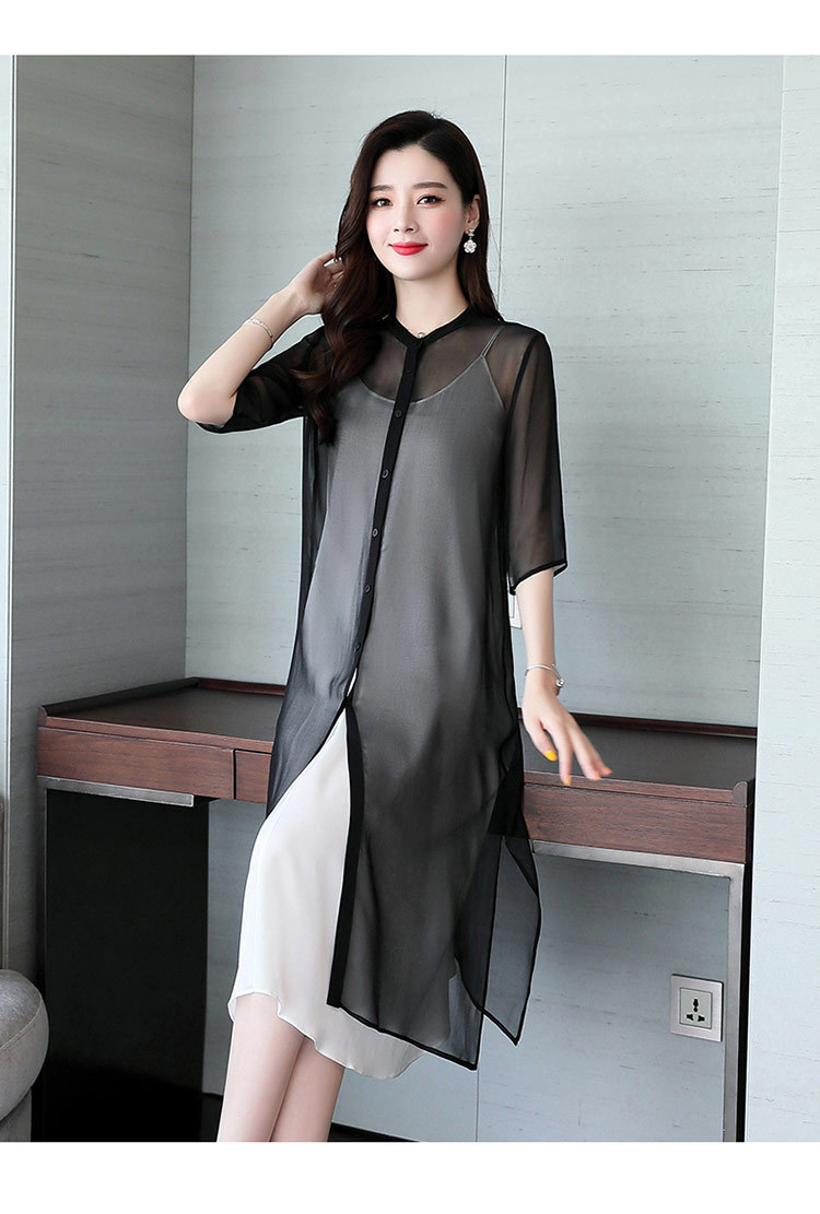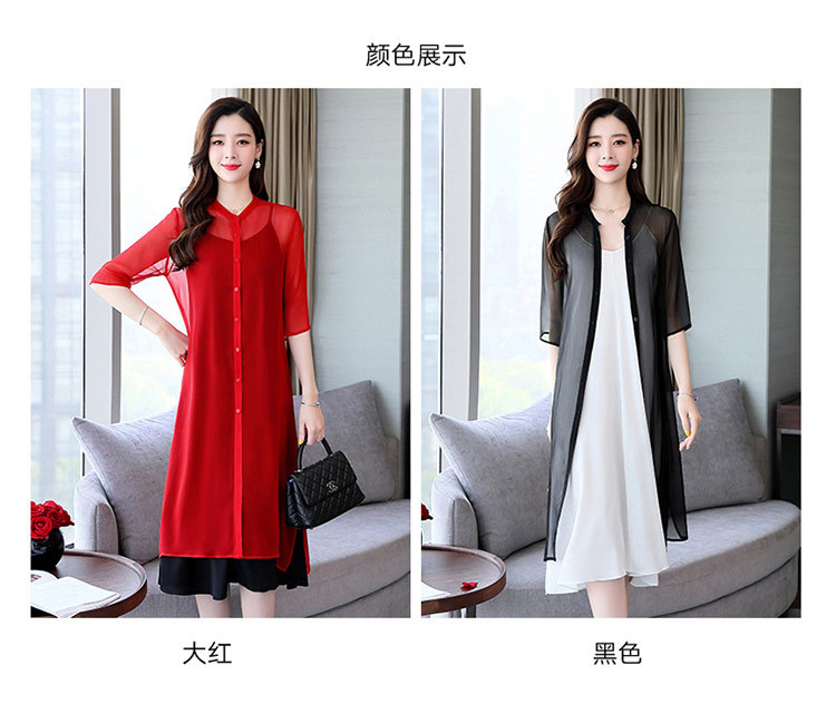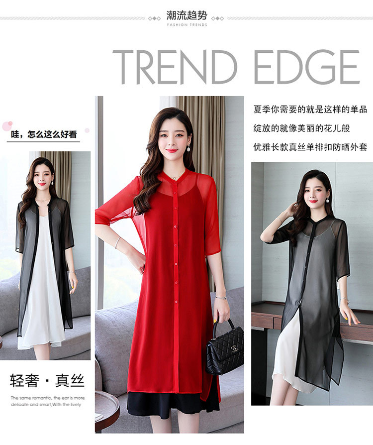 上海旗袍厂ASE-ASE2218开叉侧摆真丝长款单排开衫外披