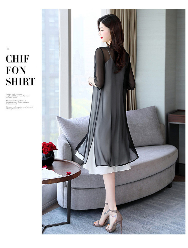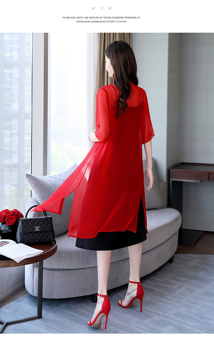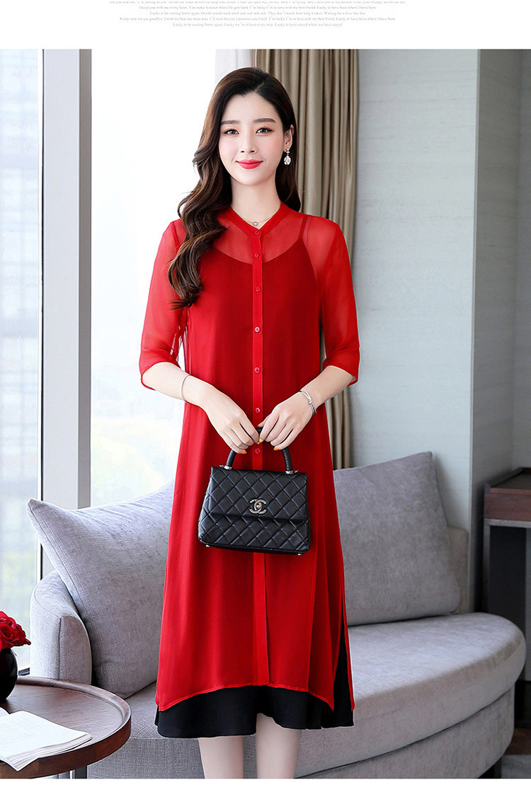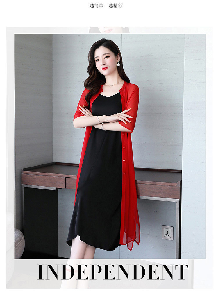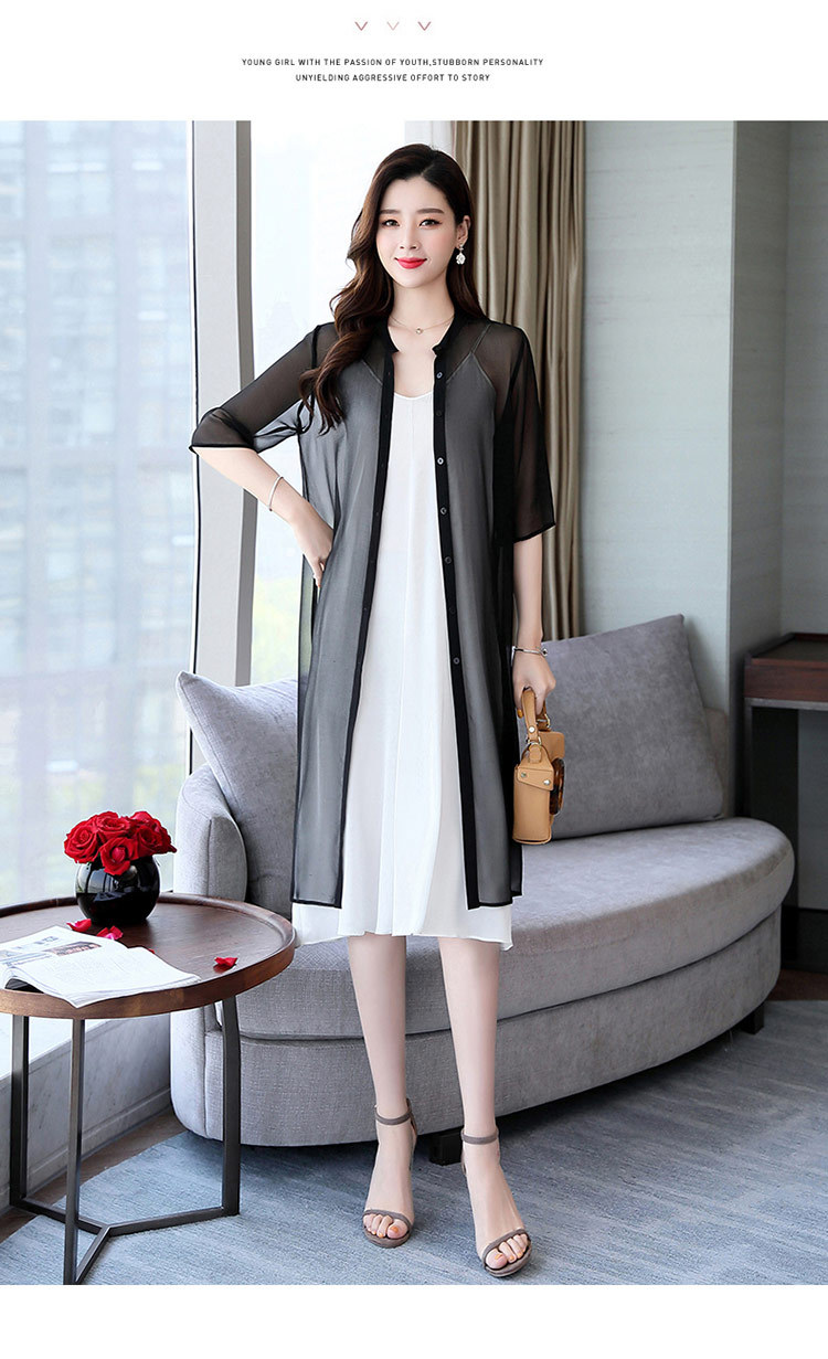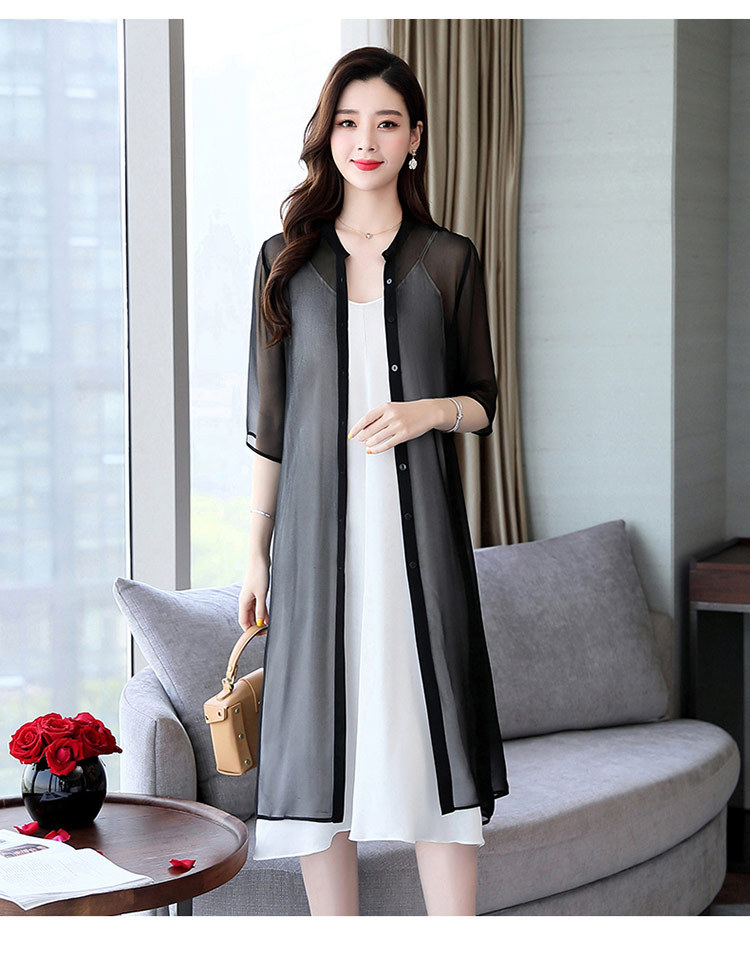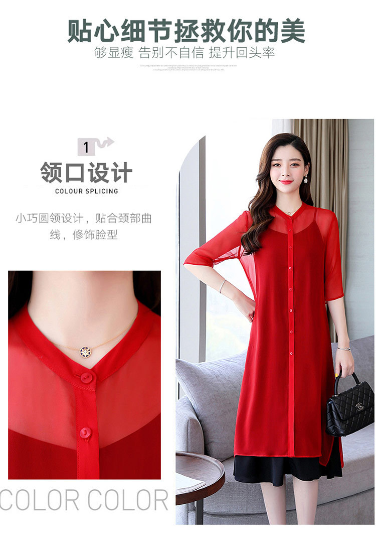 上海旗袍厂ASE-ASE2218开叉侧摆真丝长款单排开衫外披