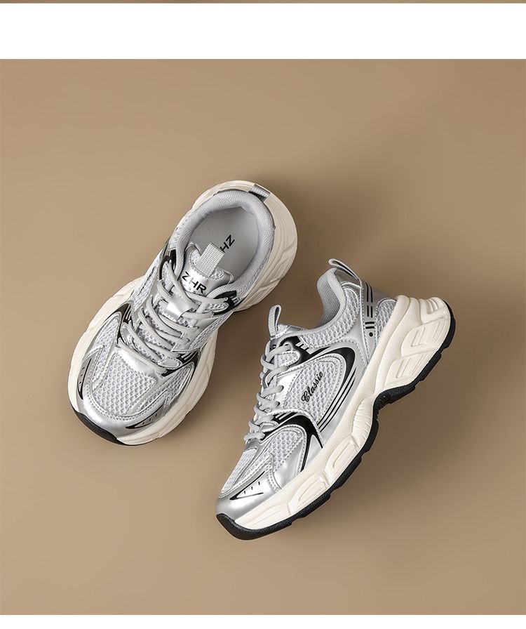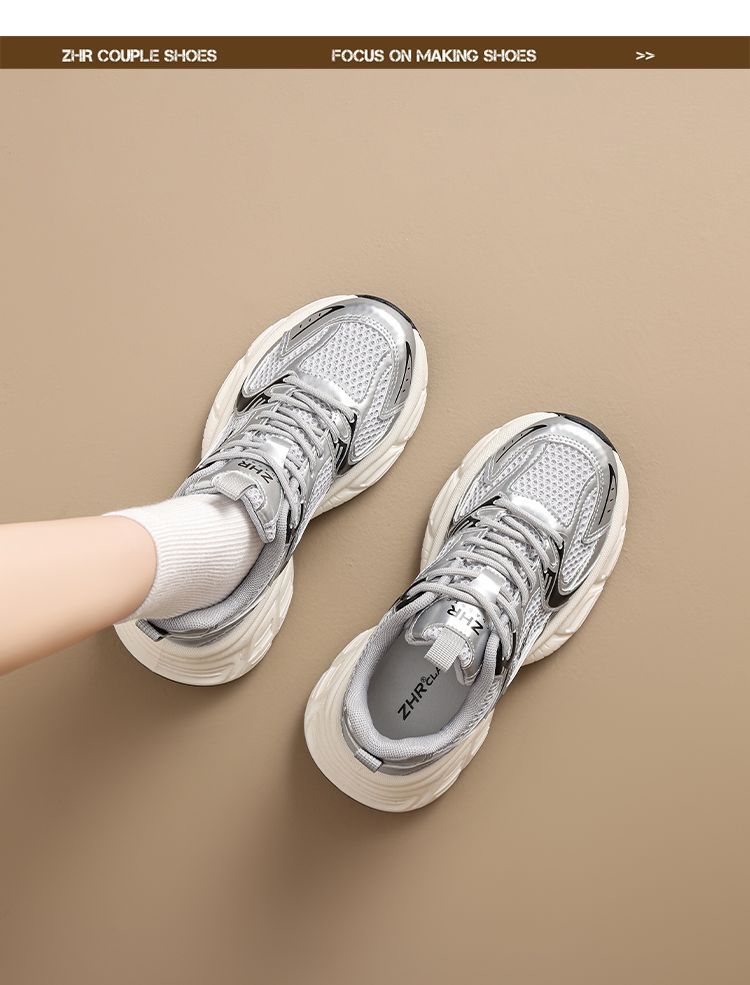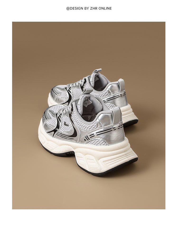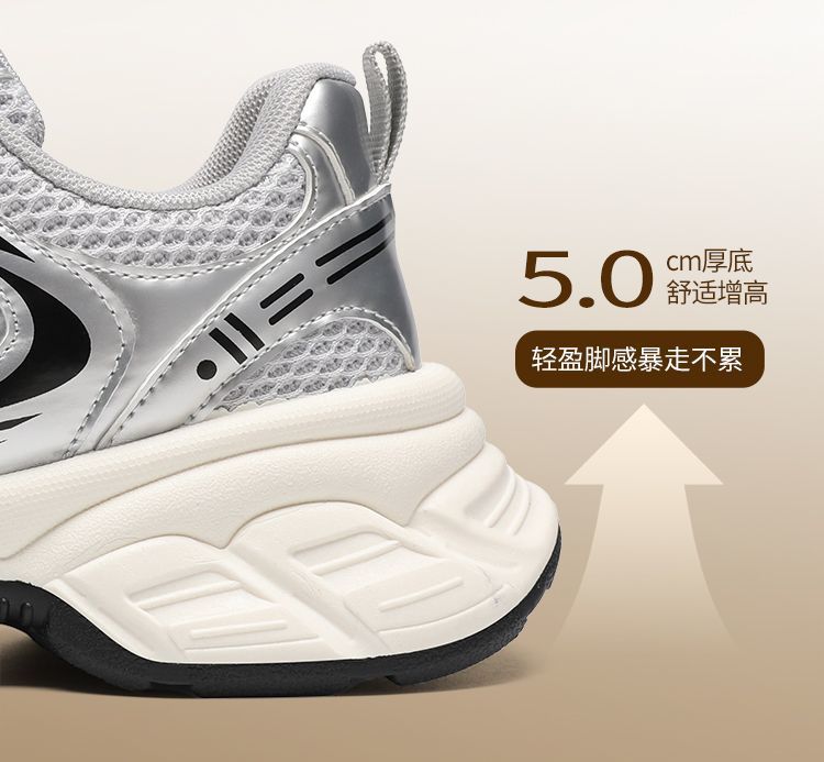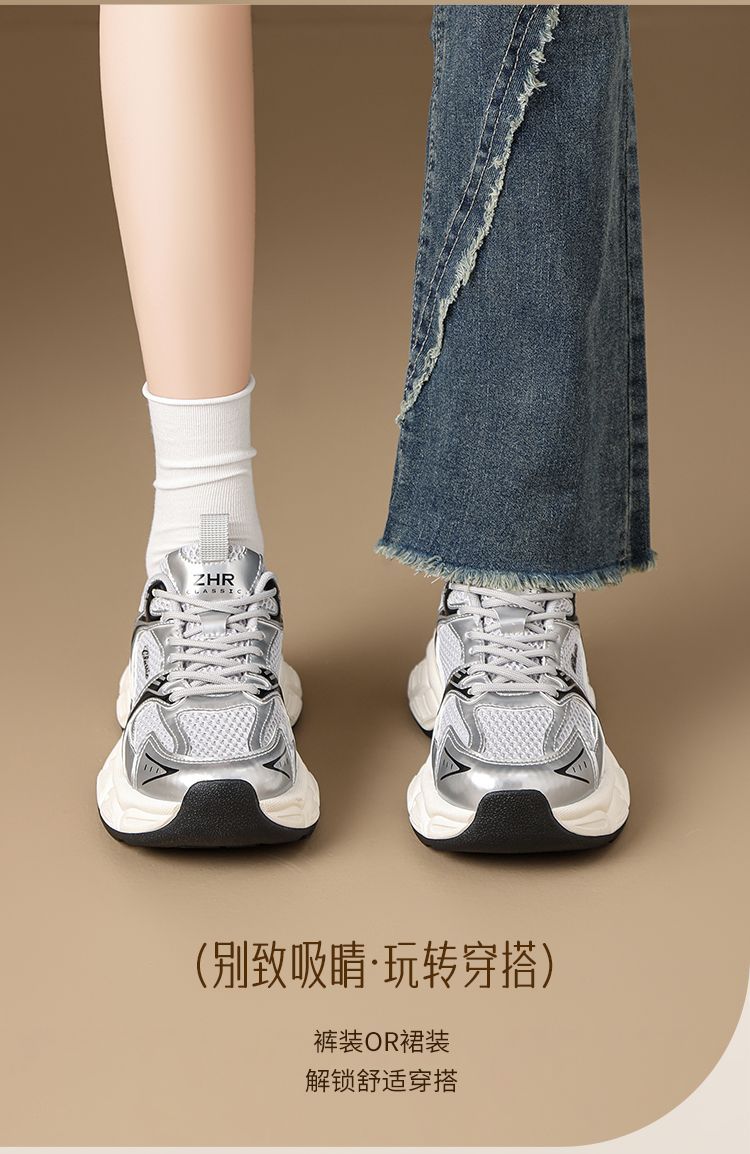 【增高5cm】ZHR厚底银色老爹鞋2025小个子运动鞋网面透气休闲女鞋