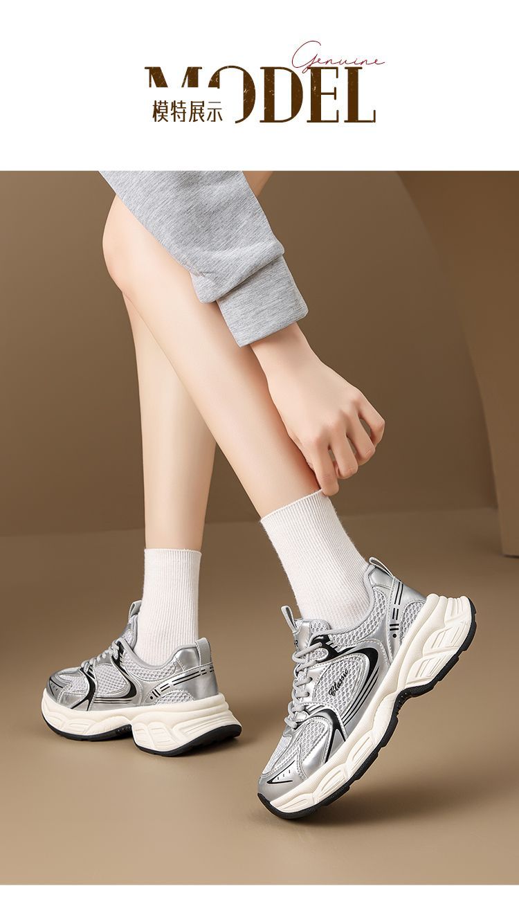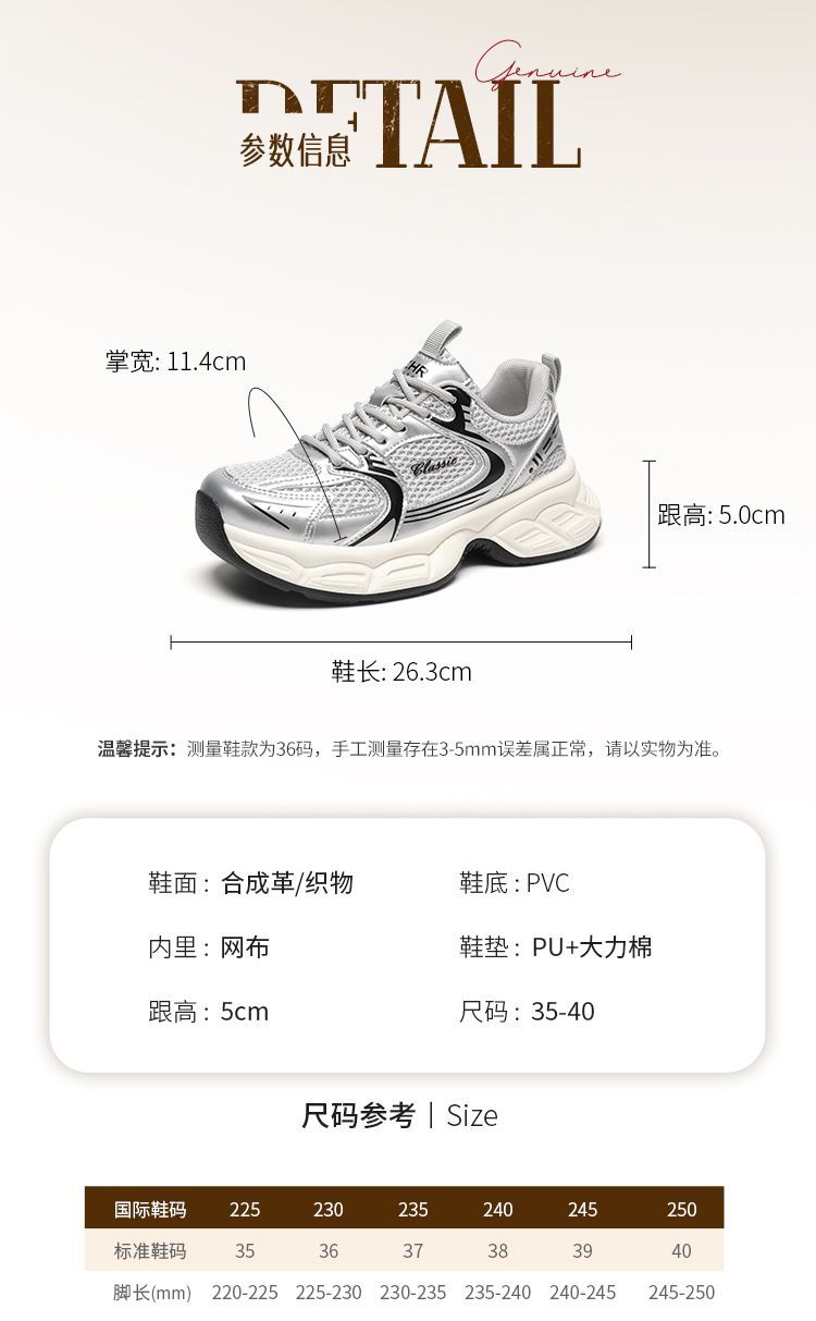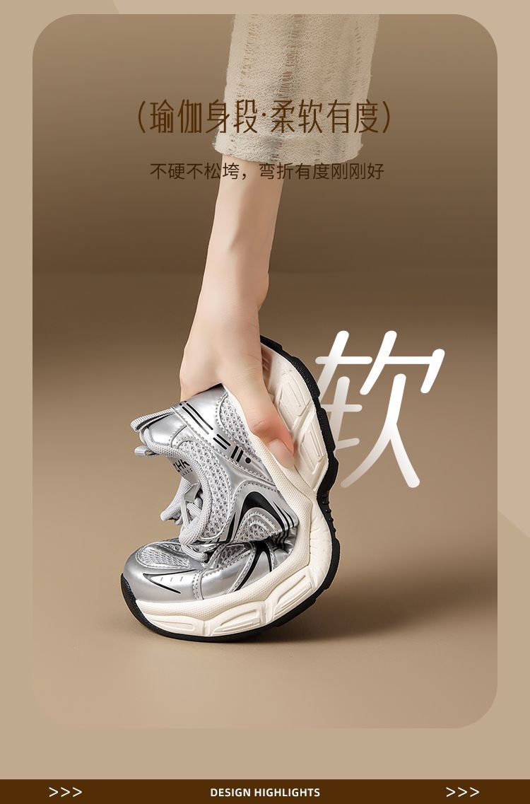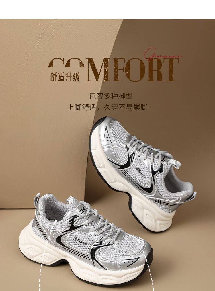 【增高5cm】ZHR厚底银色老爹鞋2025小个子运动鞋网面透气休闲女鞋