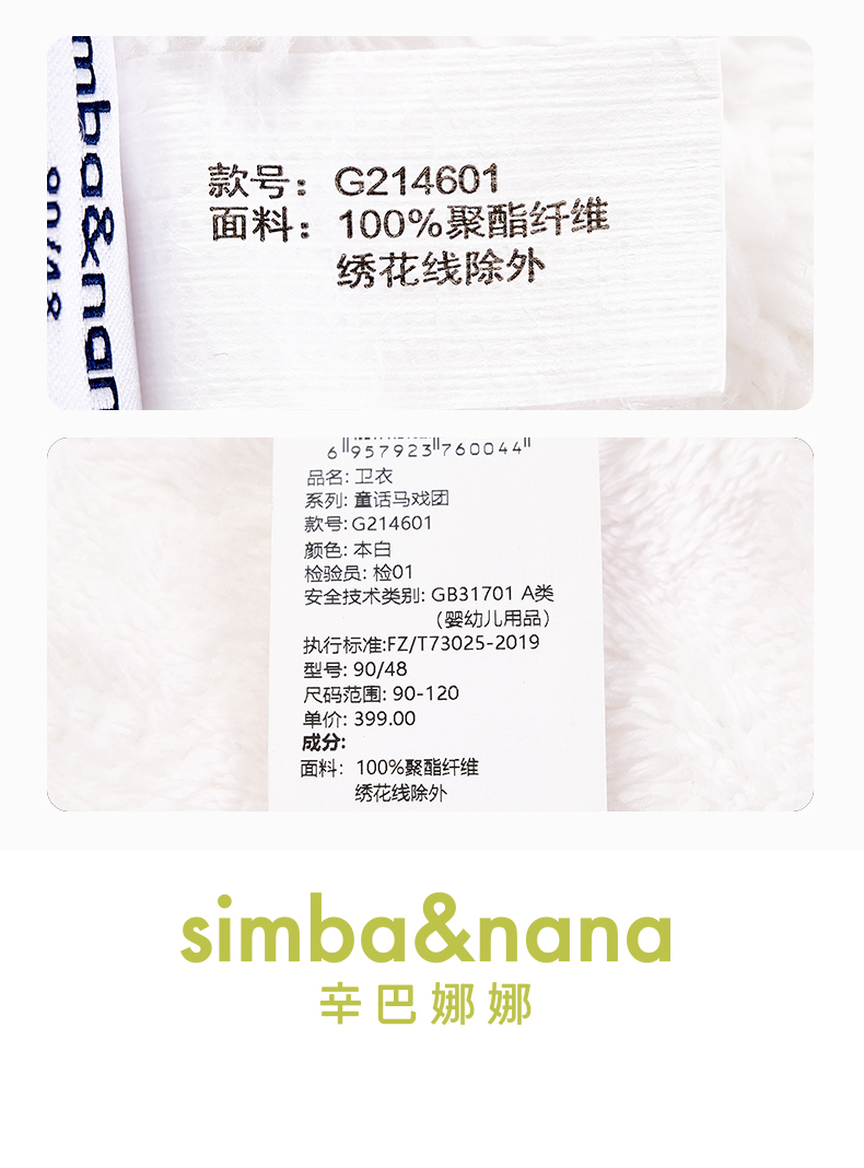 【辛巴娜娜】simbanana毛绒绒原创女童秋冬羊羔毛儿童加厚连帽卫衣