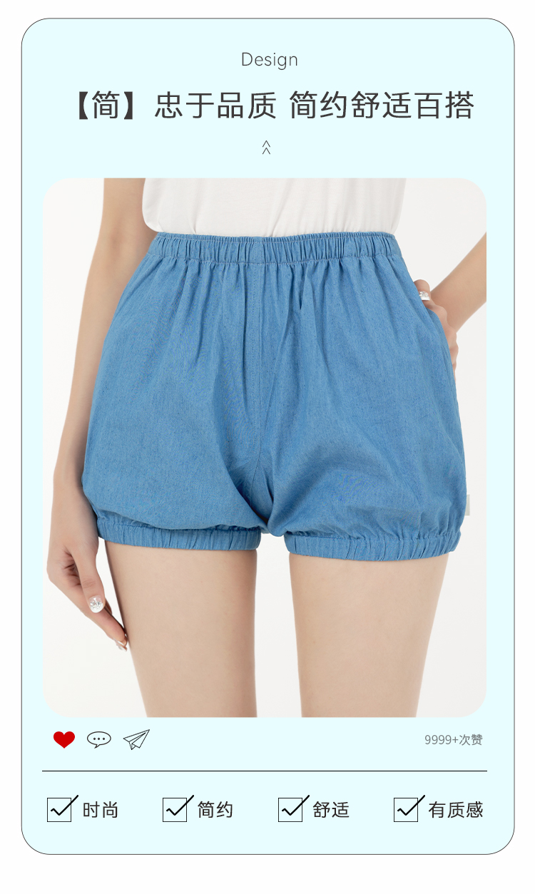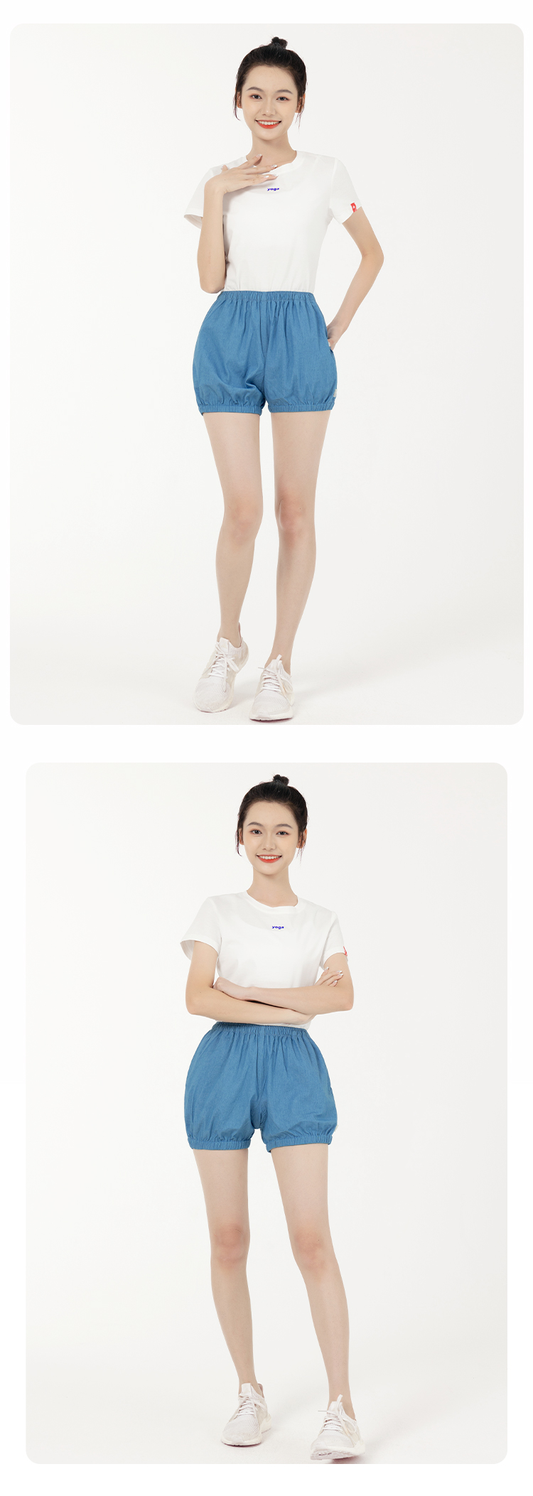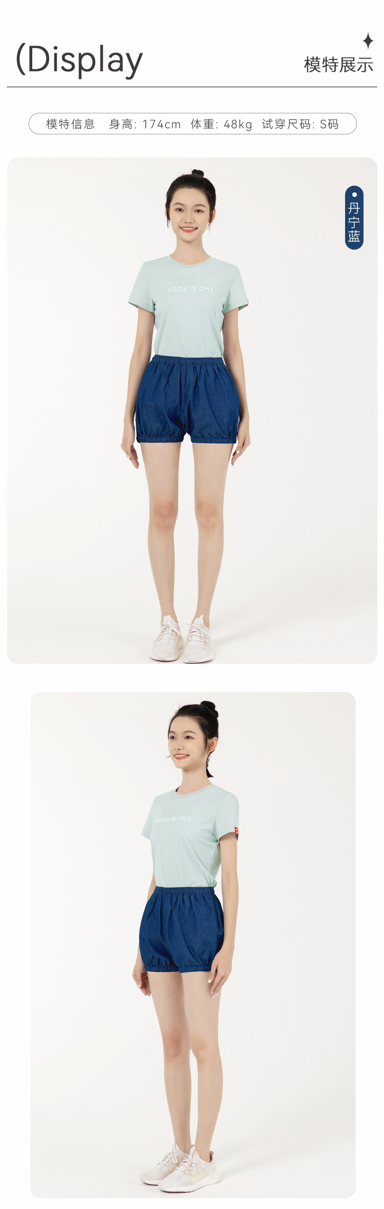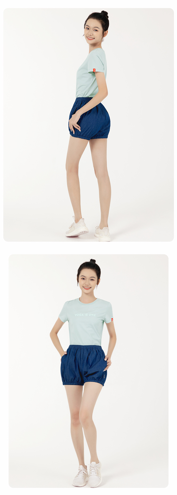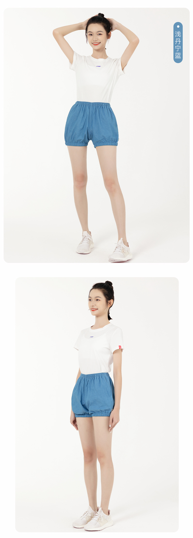 C2092艾扬格life丹宁蓝纯色男女同款牛仔色瑜伽短裤