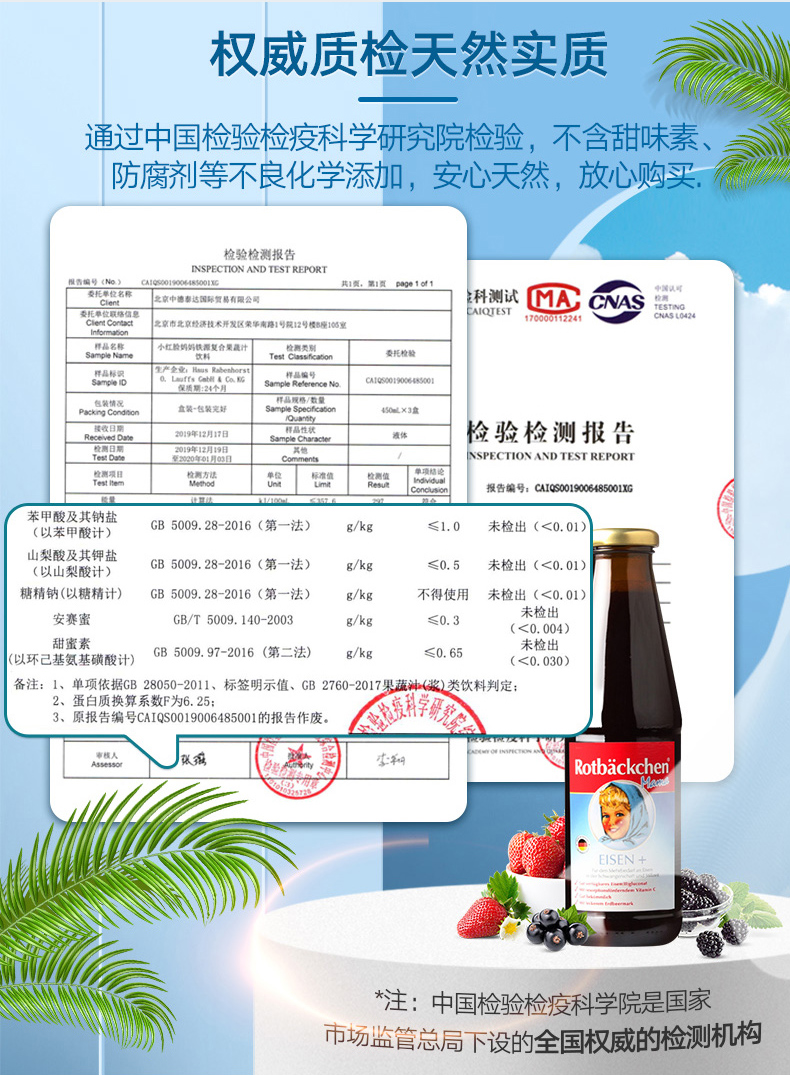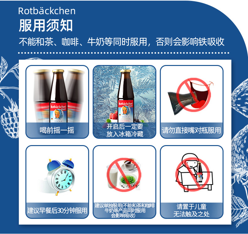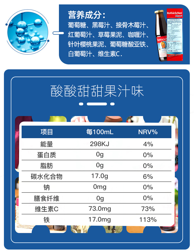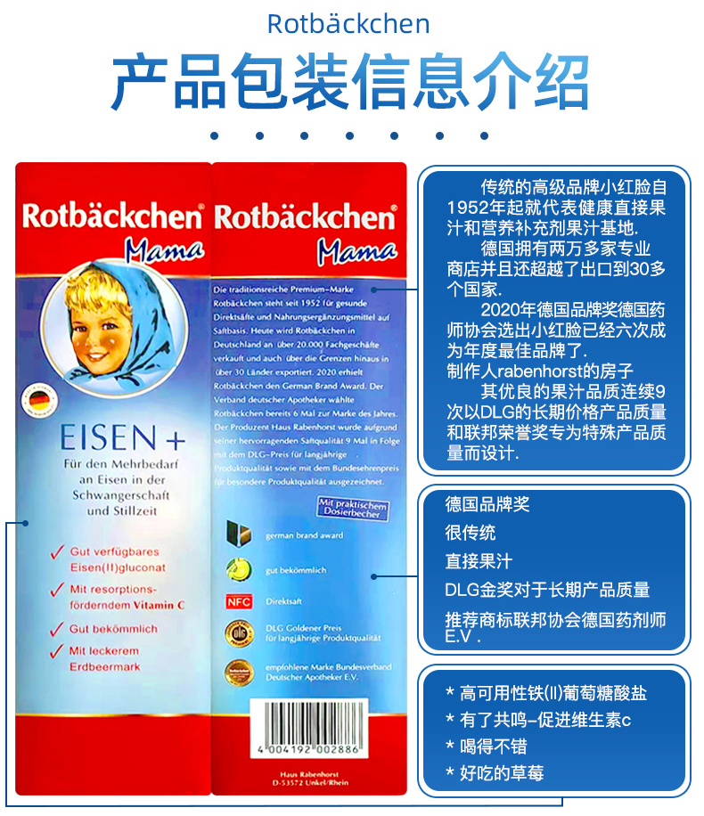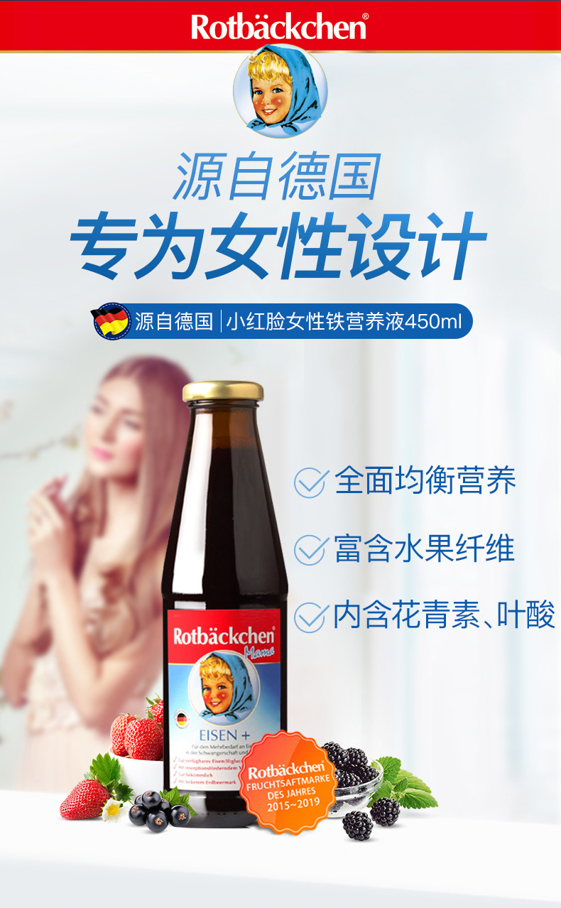 德国进口RBH 百年小红脸 女性成人铁 450ml 精准解决 女性亚健康 铁吸收率98% 0合成添加剂 孕哺期安心用