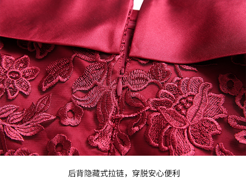 EITIE爱特爱女装蕾丝镂空钩花喇叭七分袖优雅连衣裙D1907319