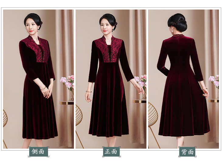 高级感旗袍连衣裙婚礼国潮婚宴装妈妈装气质短袖大摆HYX25-282
