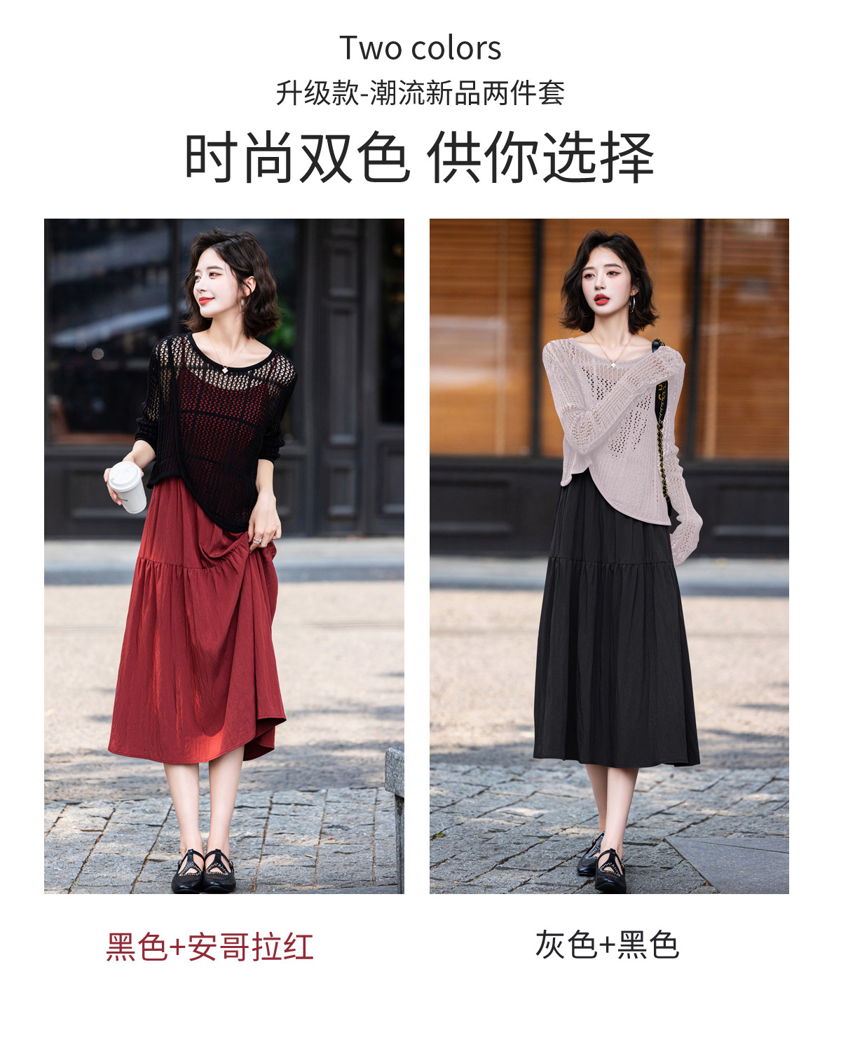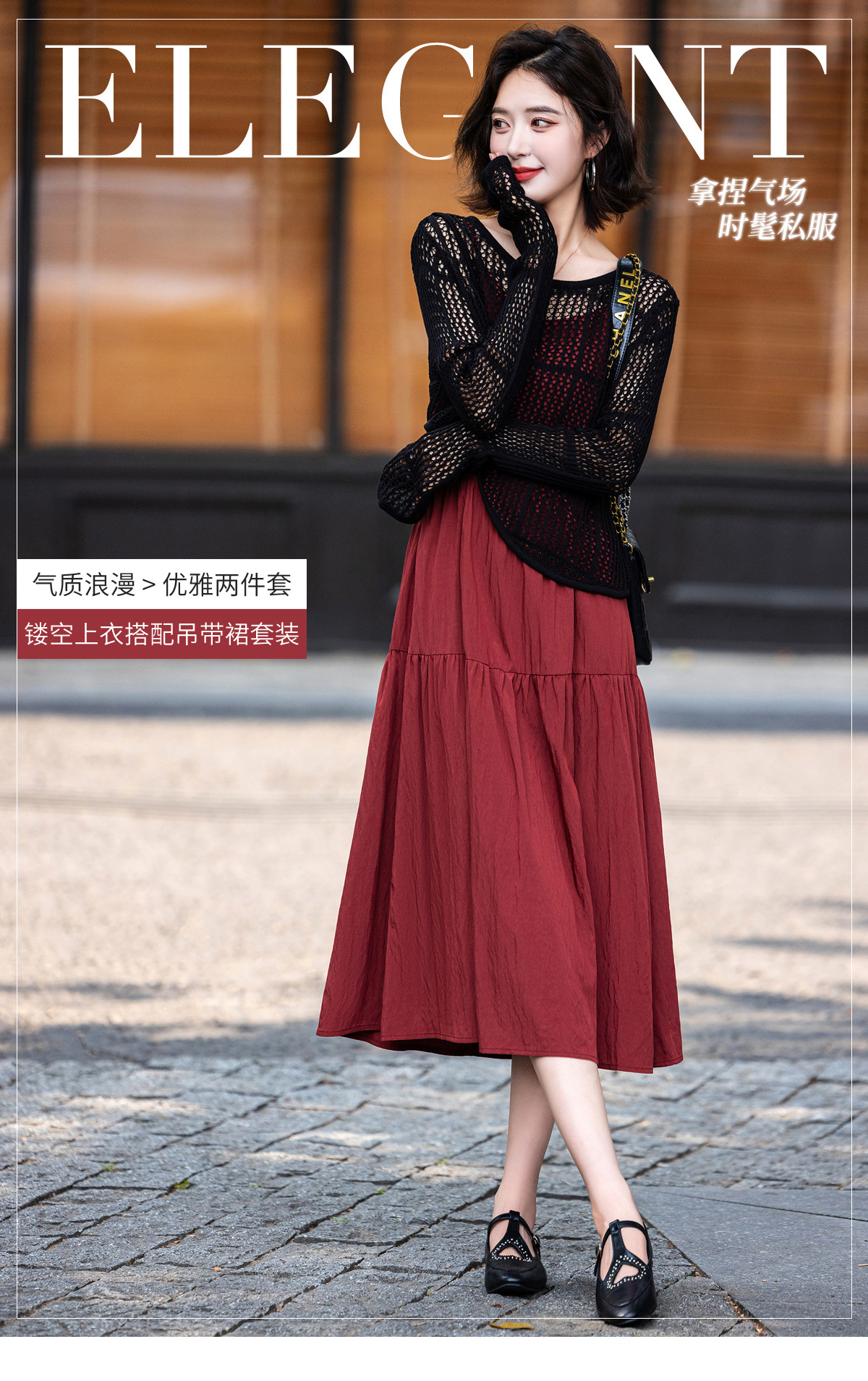 新品针织衫吊带连衣裙套装,显瘦女人味百搭裙HR-YF9682