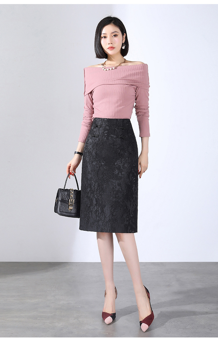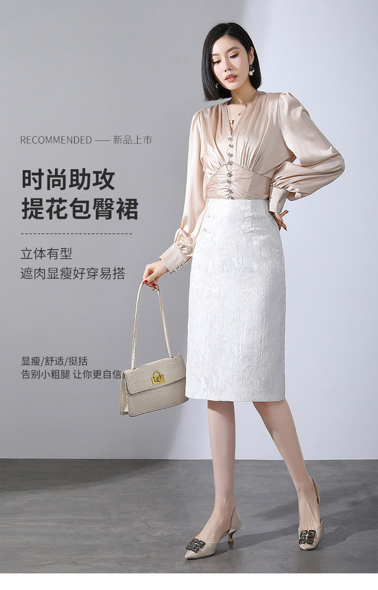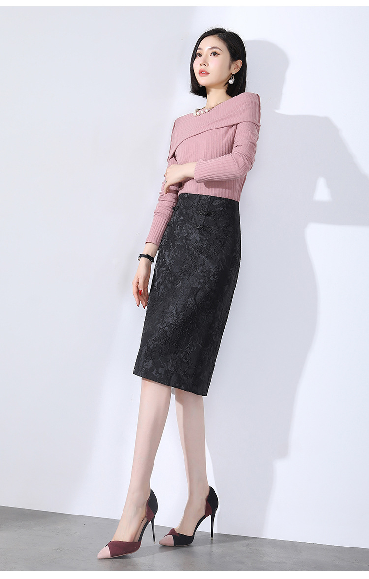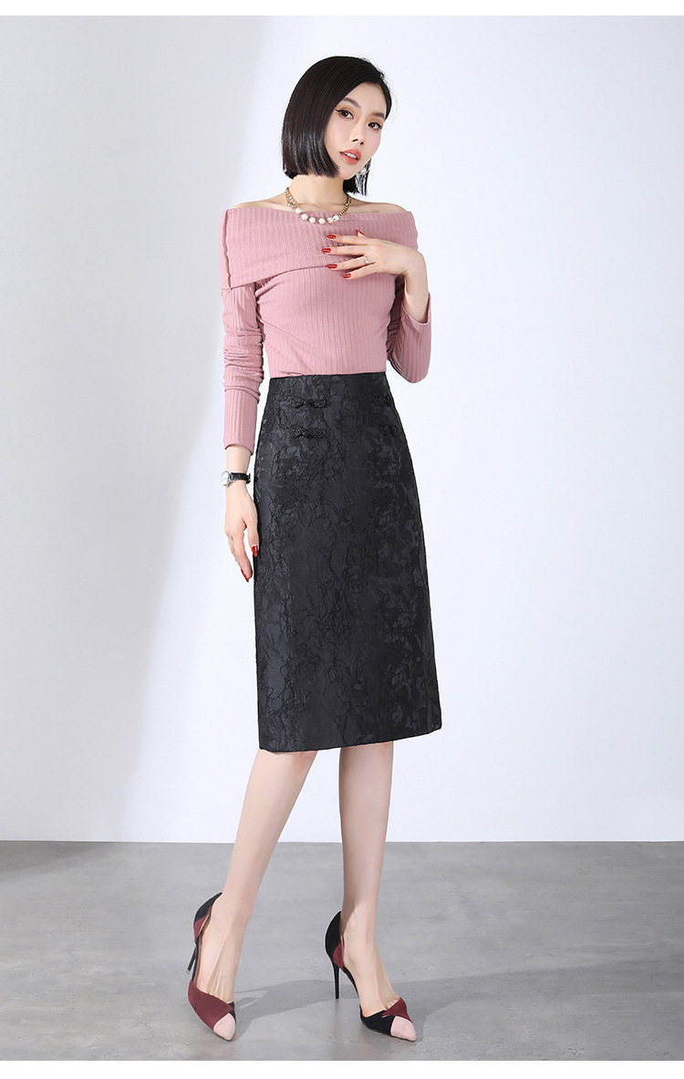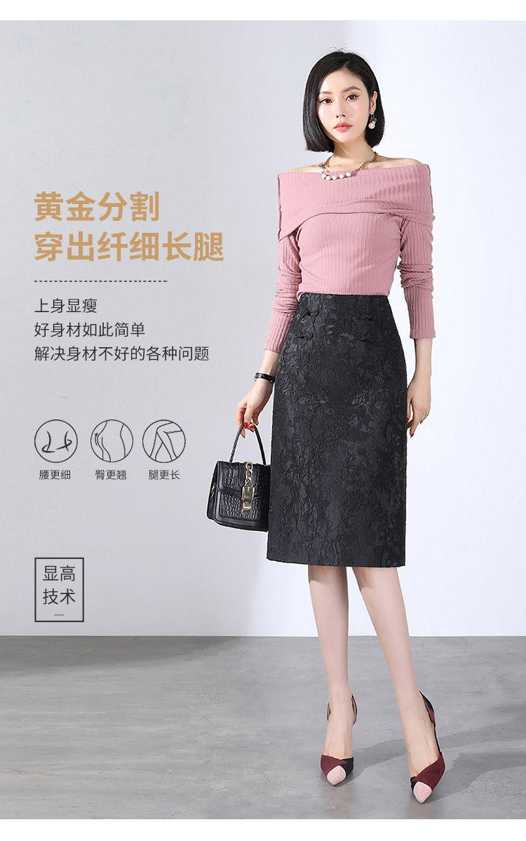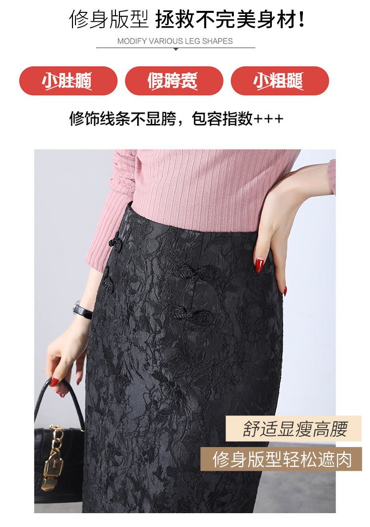 春款复古盘扣开衩时尚提花包臀裙拉链高腰A字裙 TY-2207