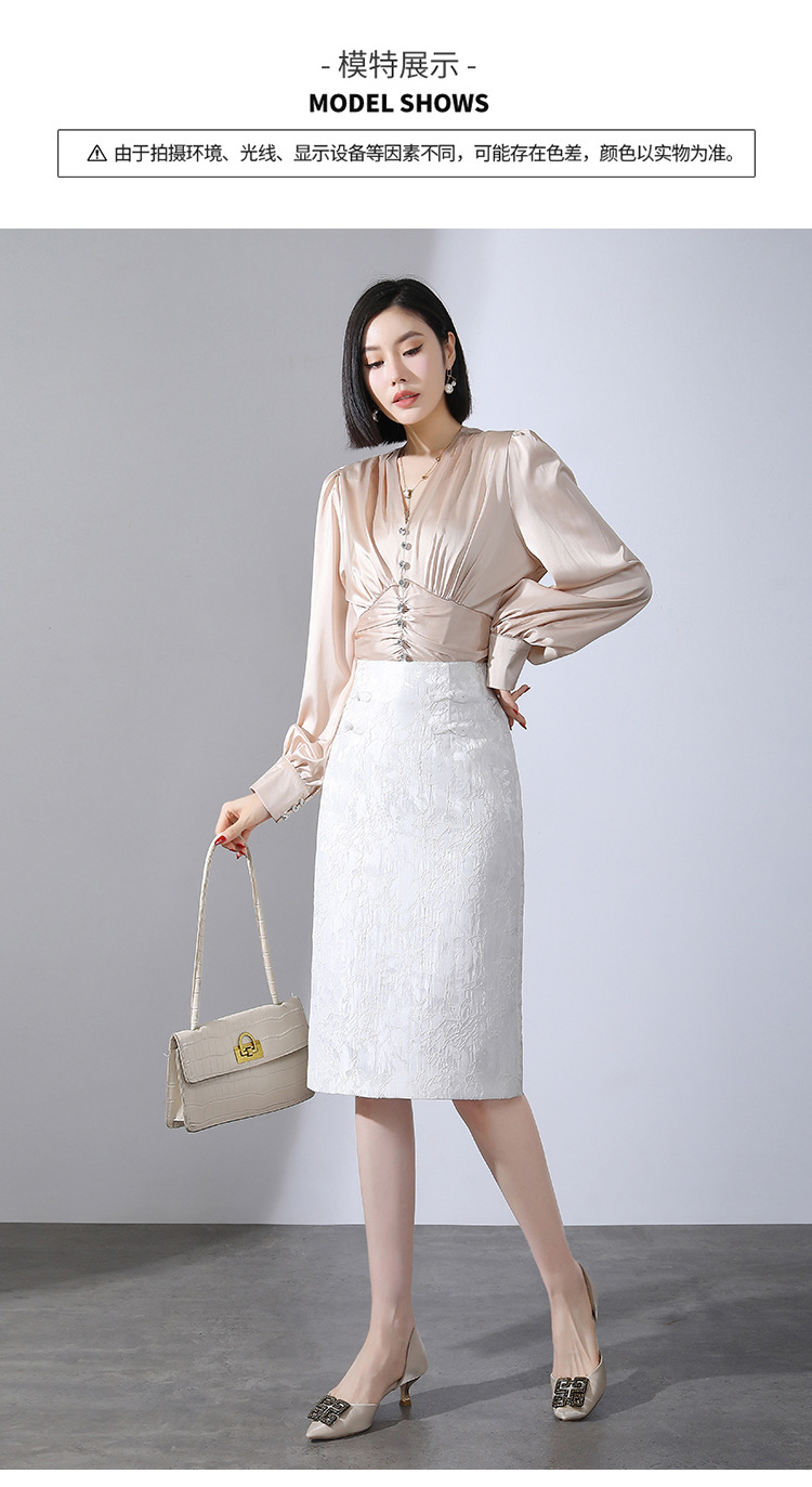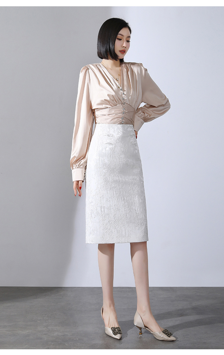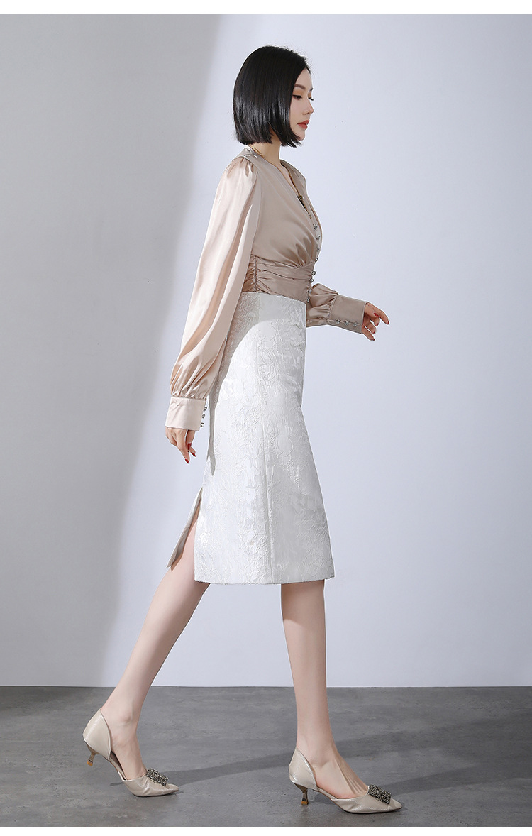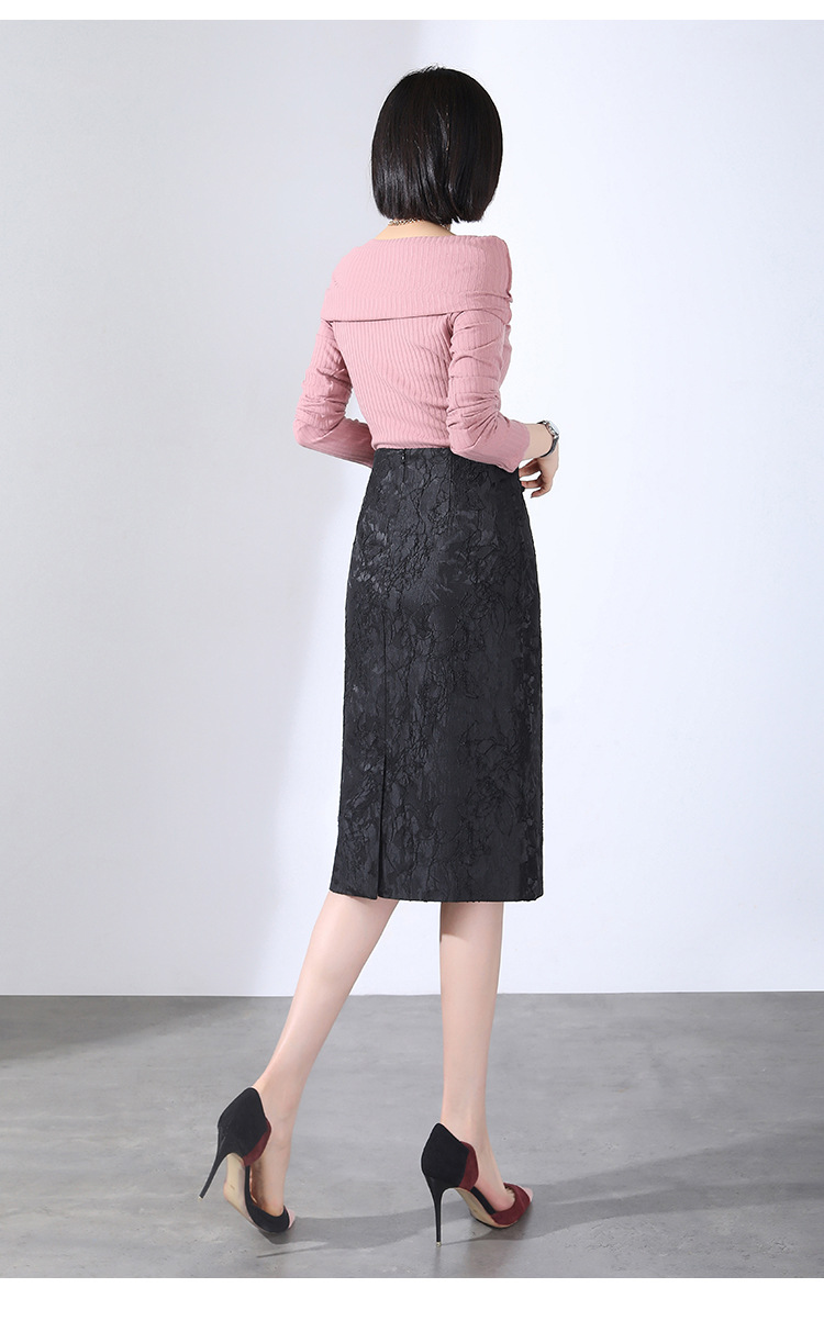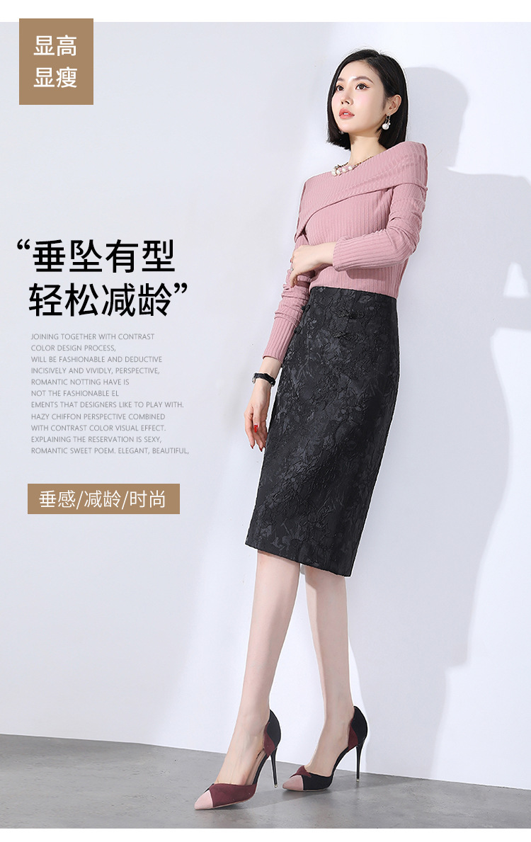 春款复古盘扣开衩时尚提花包臀裙拉链高腰A字裙 TY-2207