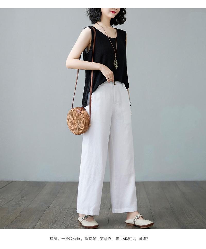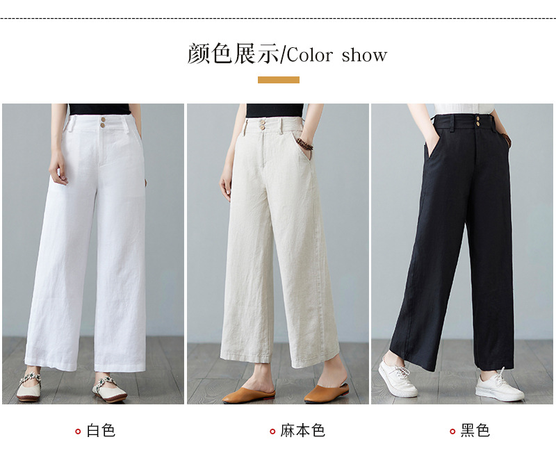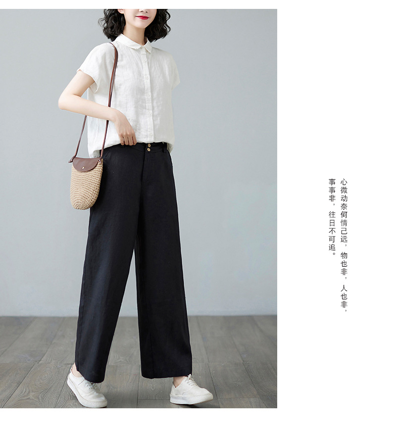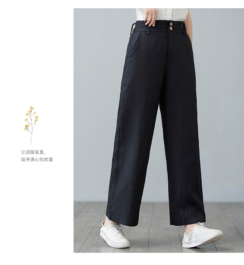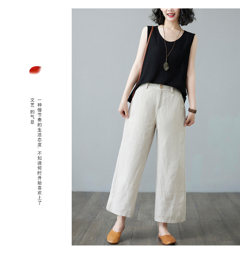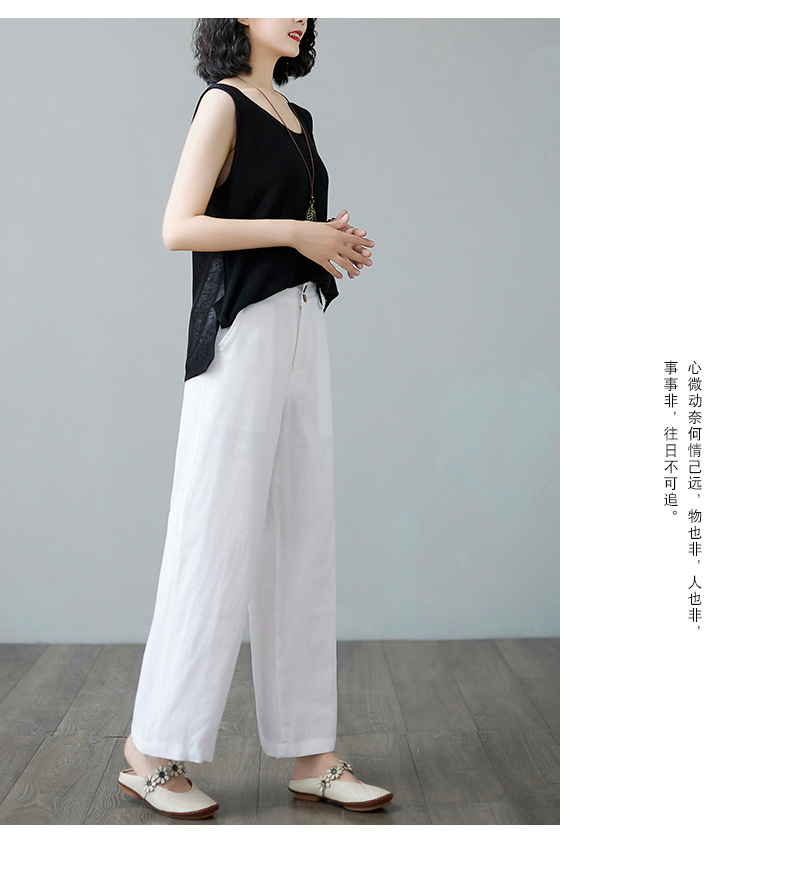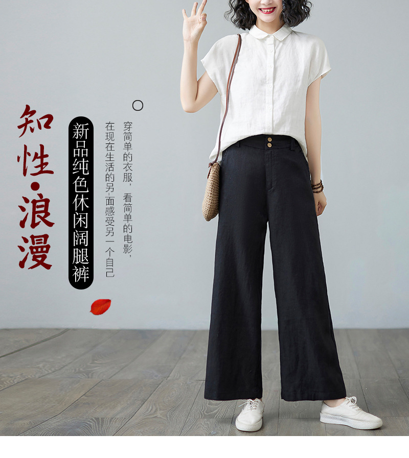 雀说新款文艺宽松纯色棉麻松紧腰直筒裤长裤女休闲裤AL9202