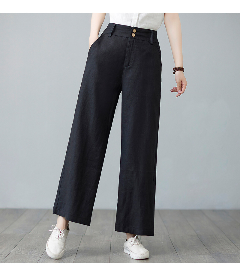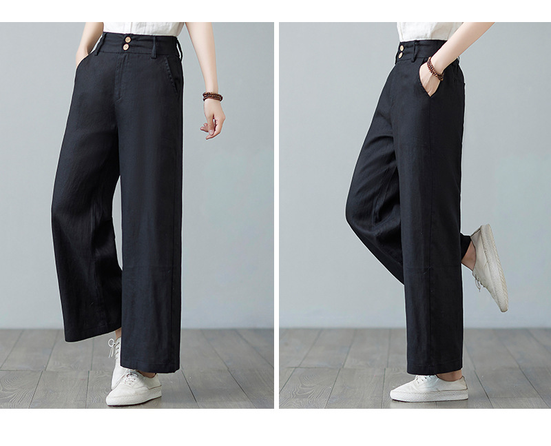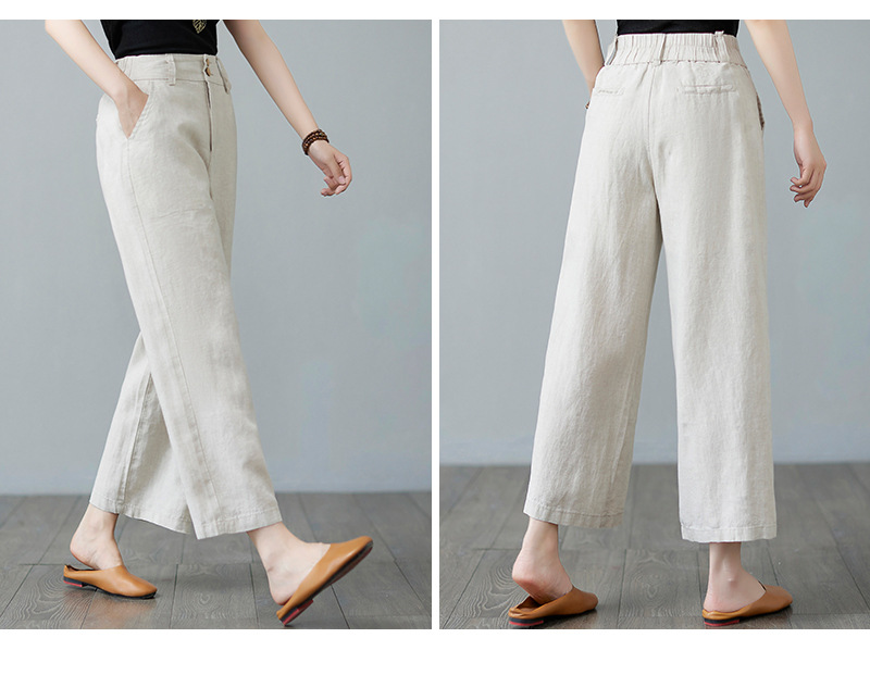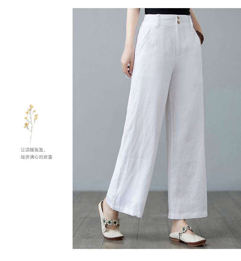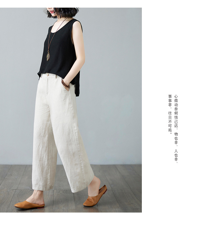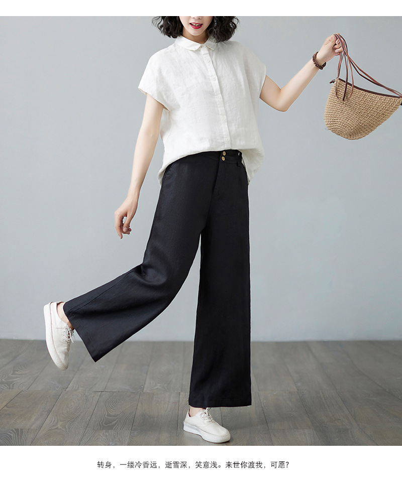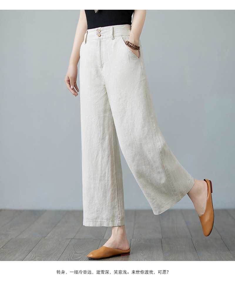雀说新款文艺宽松纯色棉麻松紧腰直筒裤长裤女休闲裤AL9202
