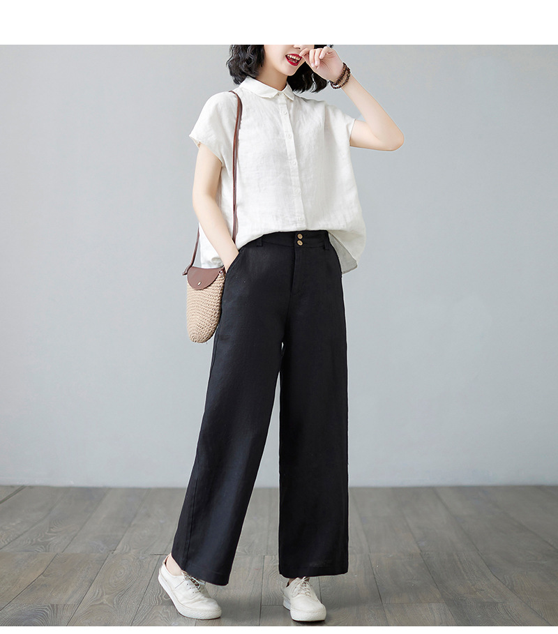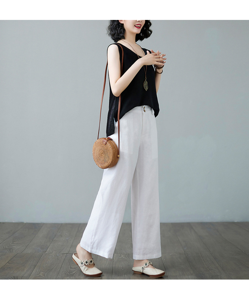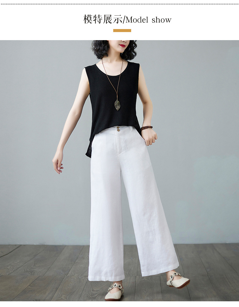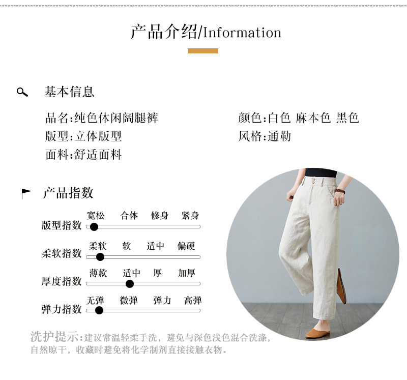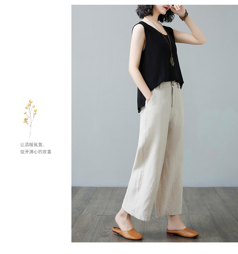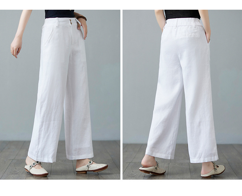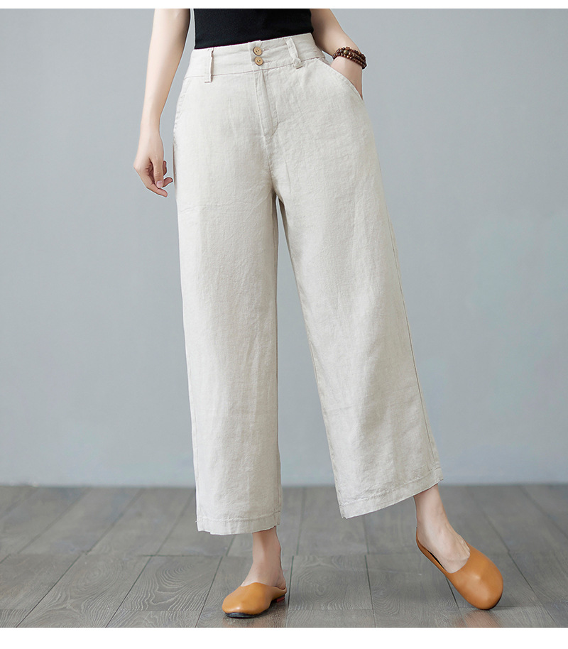 雀说新款文艺宽松纯色棉麻松紧腰直筒裤长裤女休闲裤AL9202
