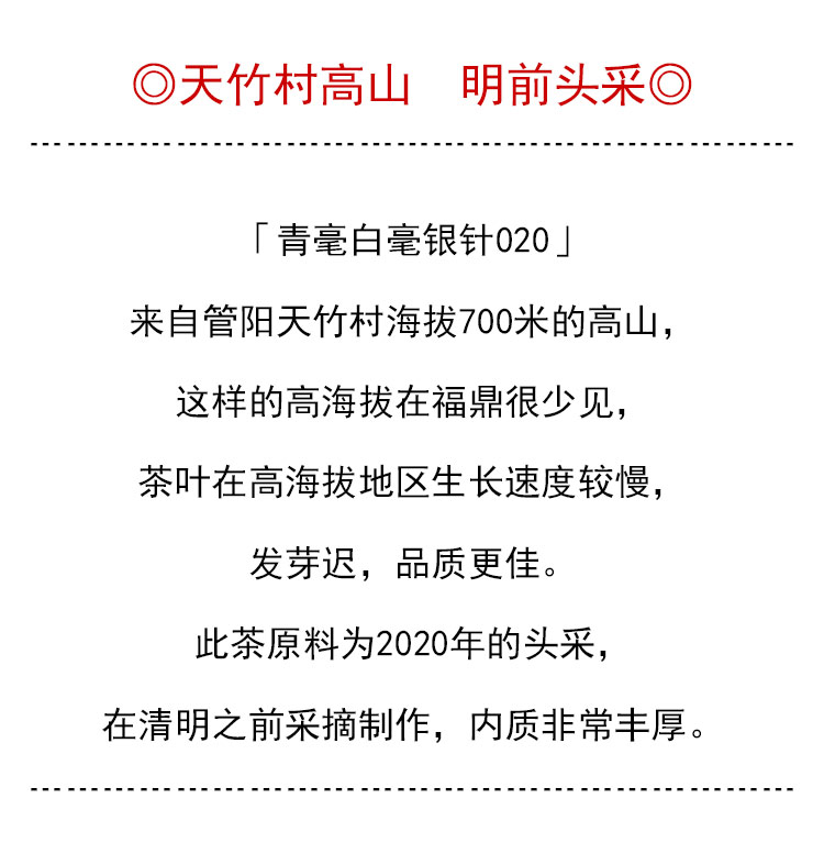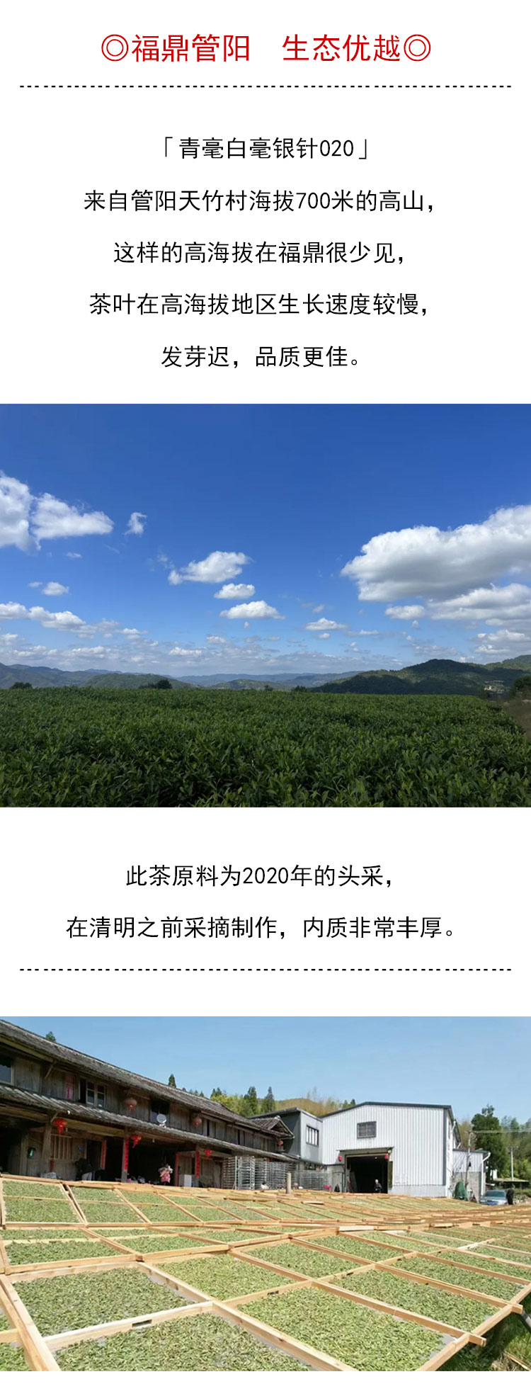茶香记 青毫白毫银针020福鼎白茶管阳高山茶园明前头采炭焙工艺仓储到位