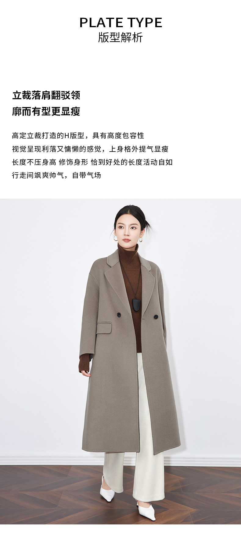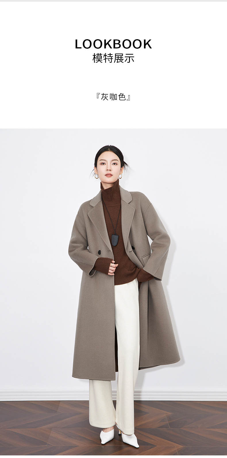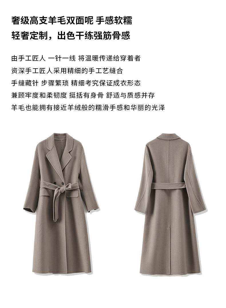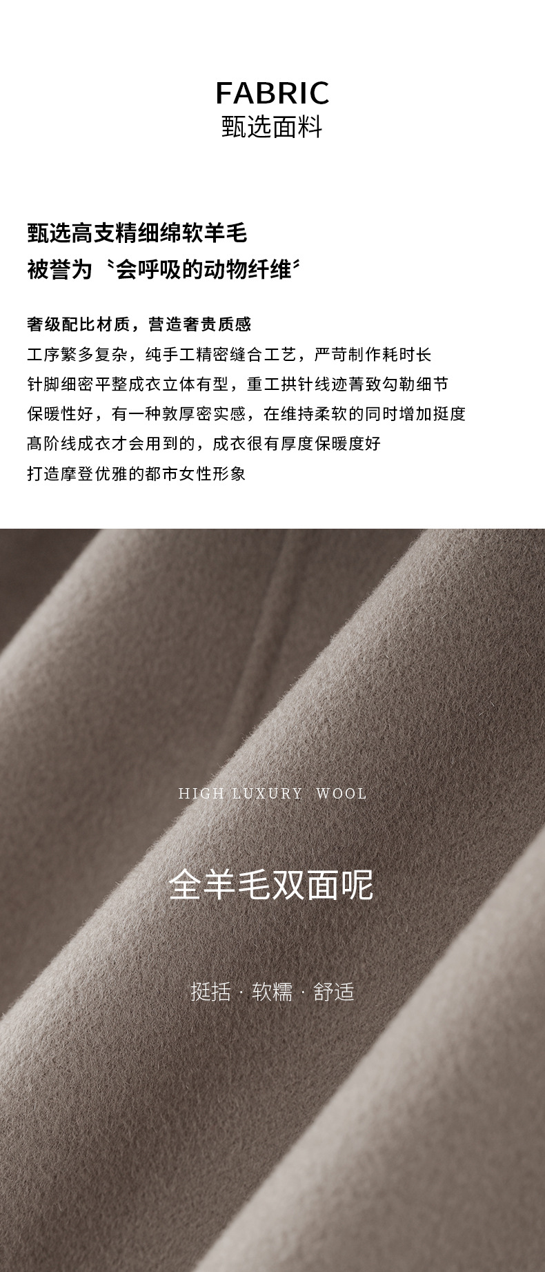 【高货wl】全新升级【铂金会员661/天猫899/差价238】(20435) 洛诗琳秋冬100%羊毛双面呢翻领中长款时尚减龄显瘦大衣