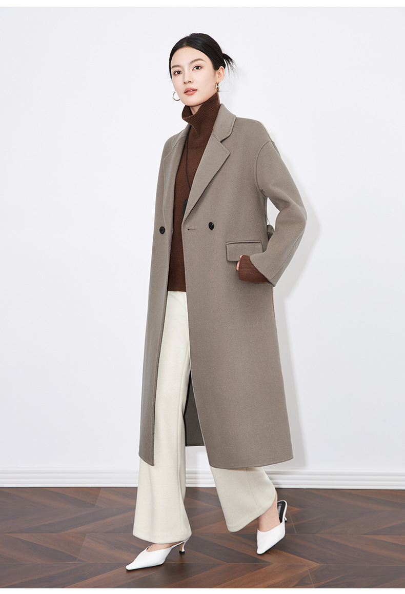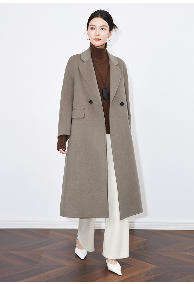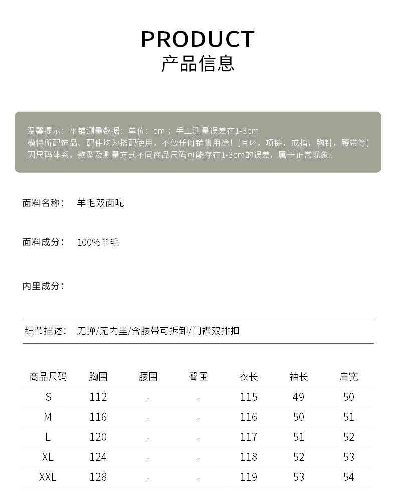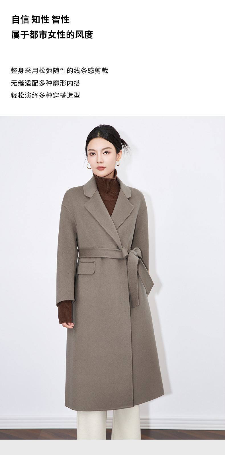 【高货wl】全新升级【铂金会员661/天猫899/差价238】(20435) 洛诗琳秋冬100%羊毛双面呢翻领中长款时尚减龄显瘦大衣