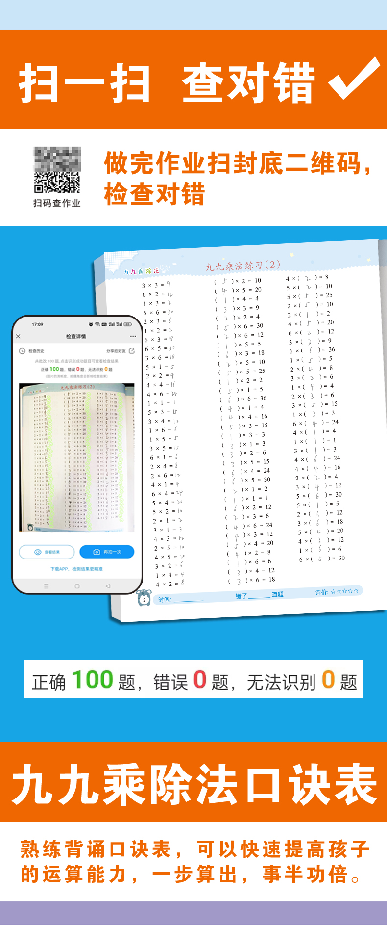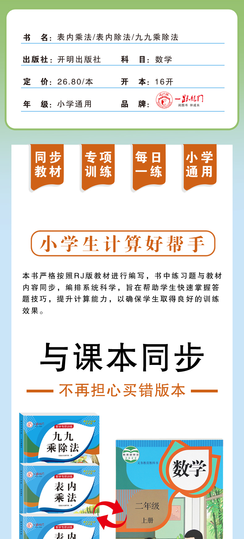 一跃龙门数学专项训练表内乘法表内除法九九乘除法二年级口算训练
