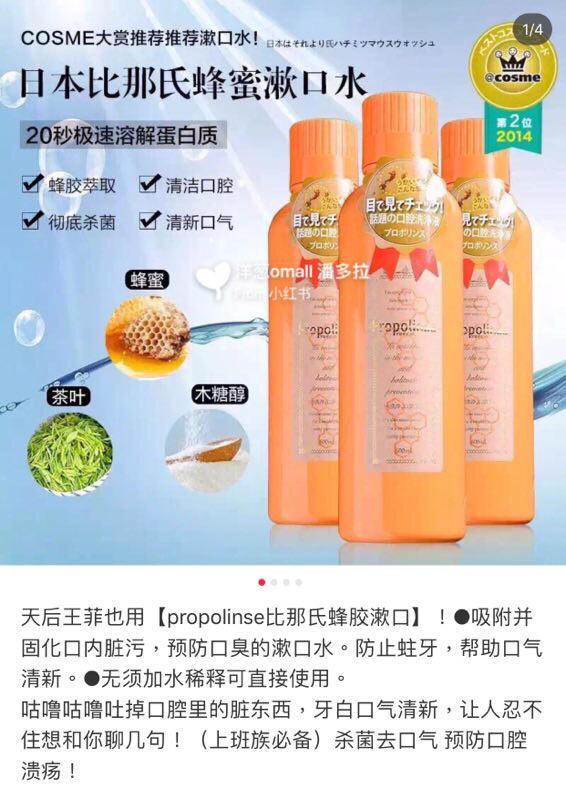 日本比那氏蜂胶复合温和漱口水600ml🍀 清洁口腔口气口臭,它可清除口腔内的有害蛋白菌及唾液中含有的有害菌。‼️ 清洁口腔卫生。使用起来非常的神奇。㊙ 含入口中30秒。吐出来之后你会看见有絮妆的黑色脏物。💯