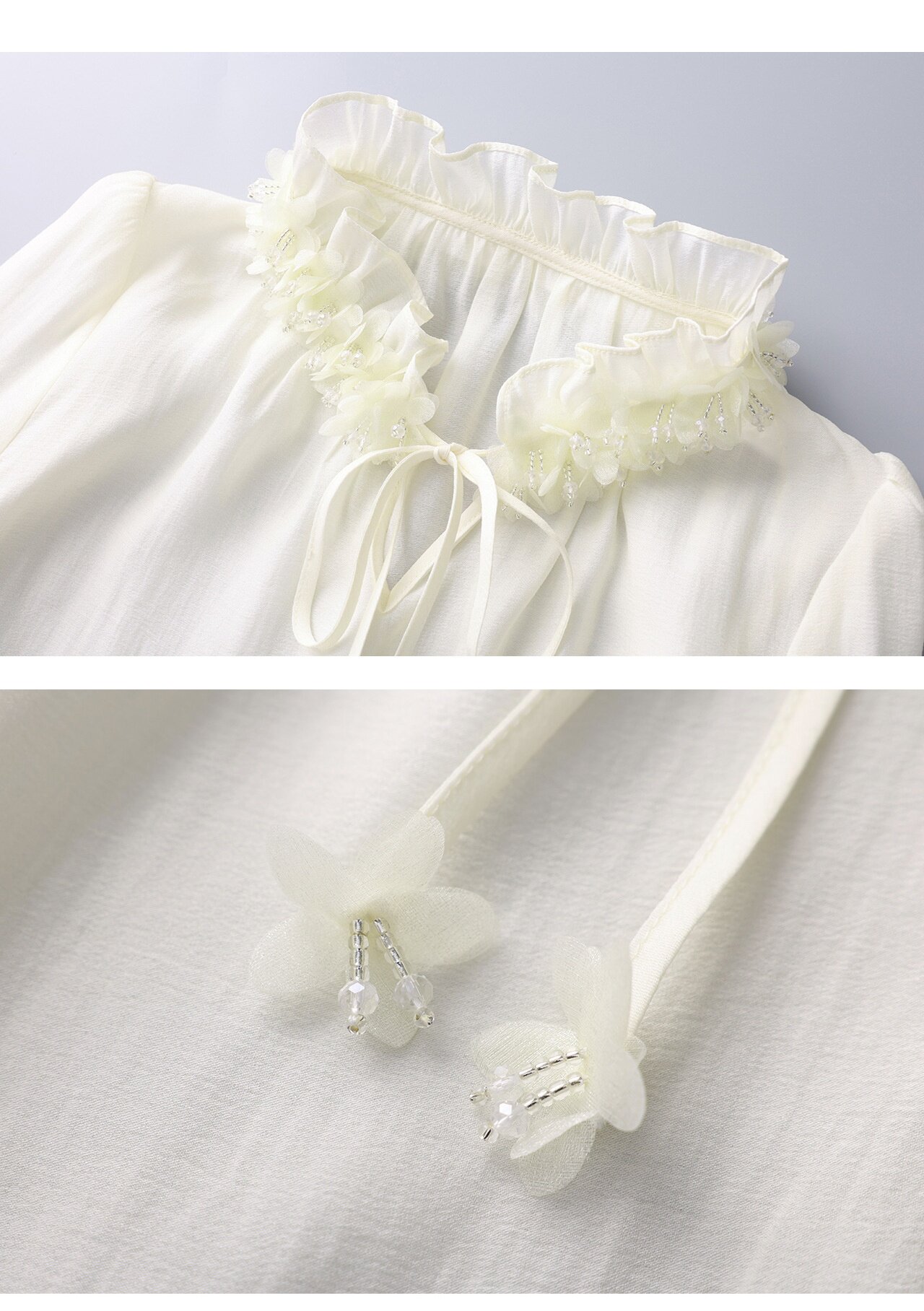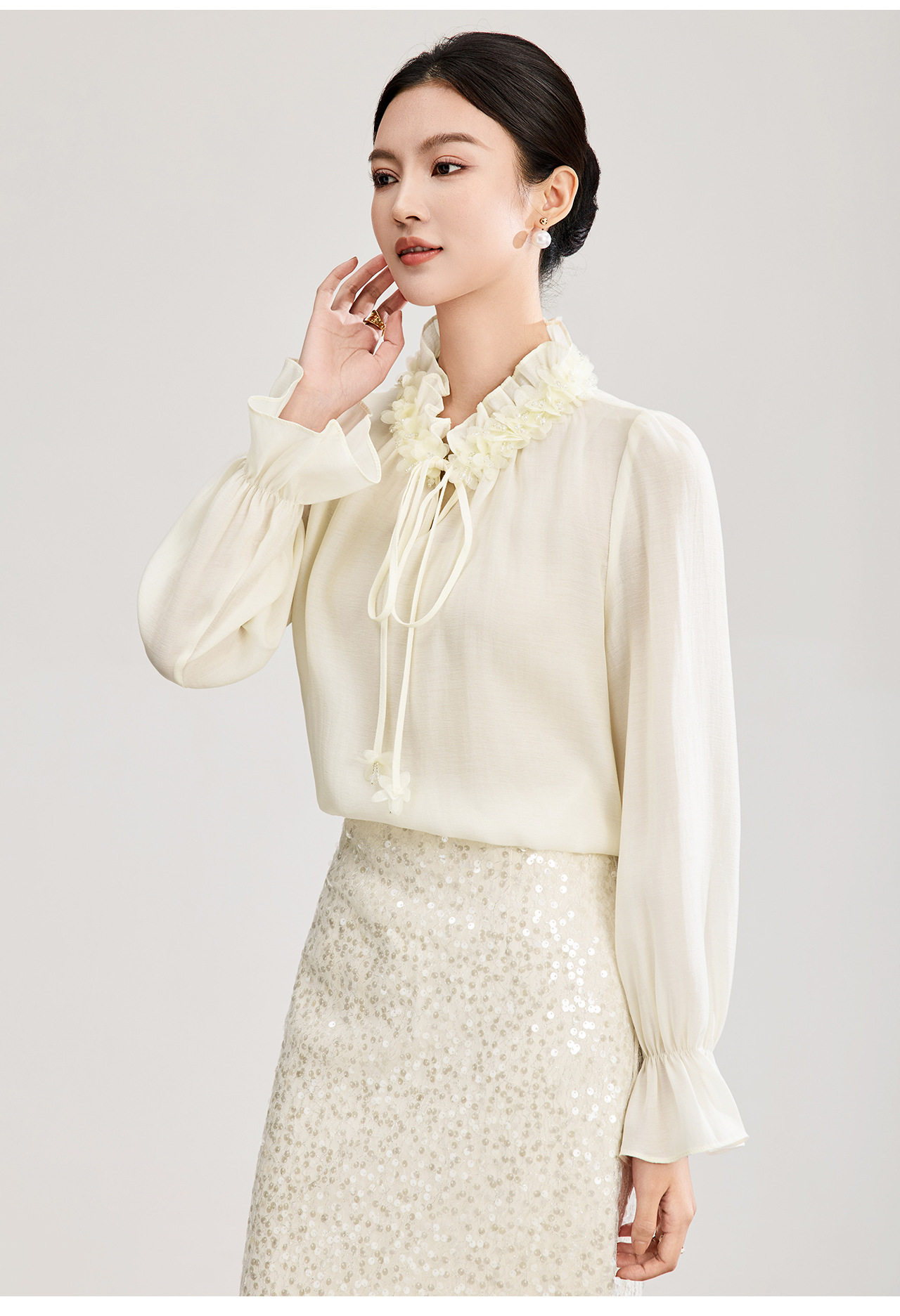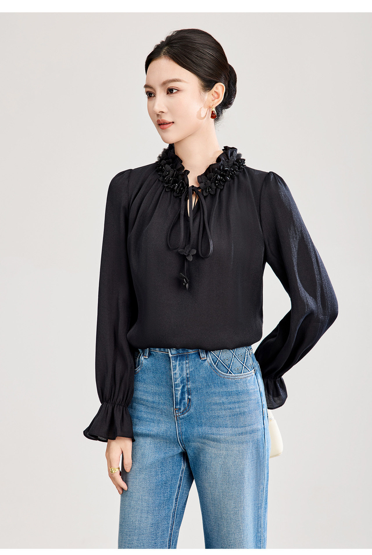 「高货wl」全新升级【铂金会员266/天猫359/差价93】(02209)洛诗琳气质天丝钉珠花瓣领衬衫2026春季新款垂感系带上衣