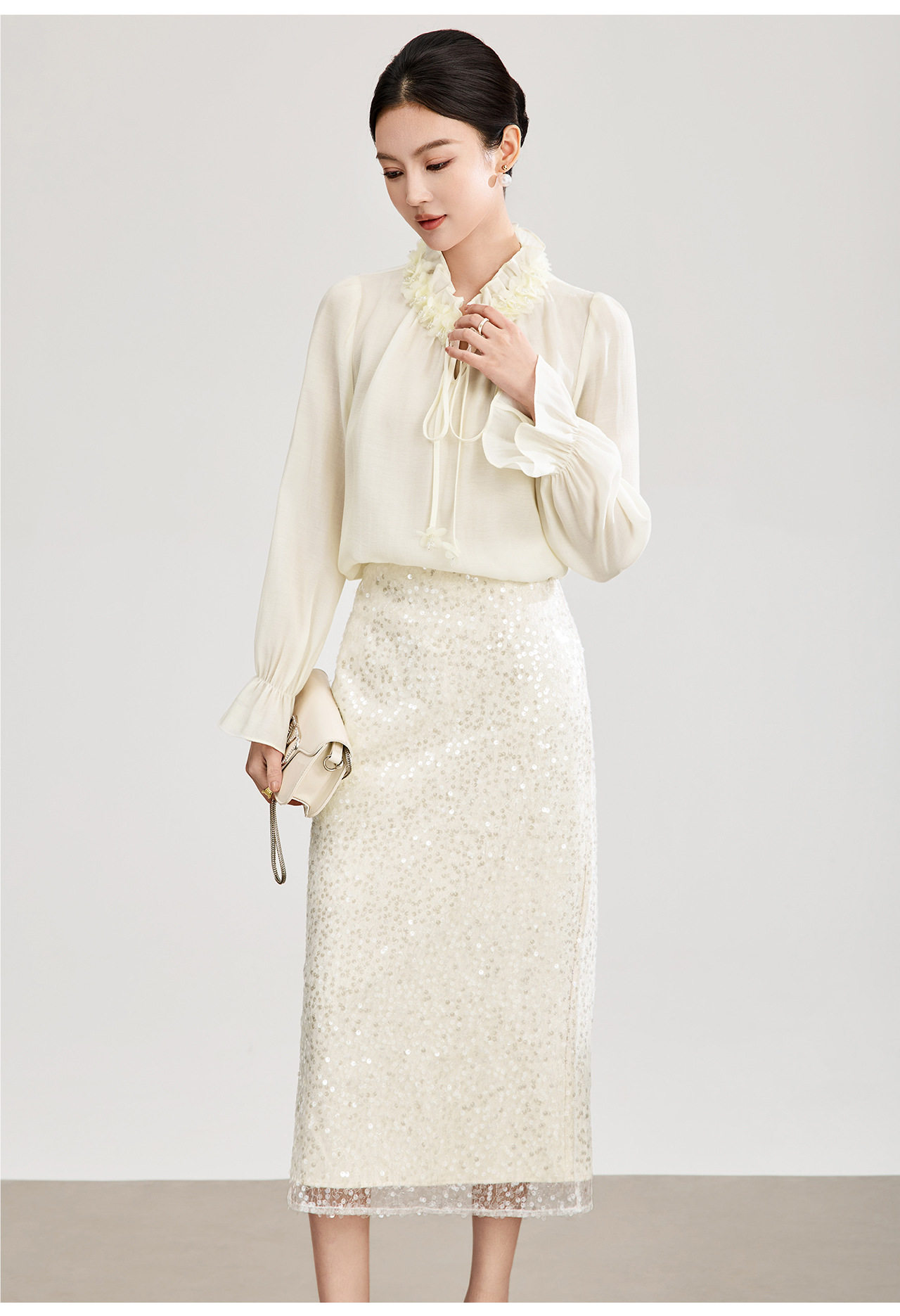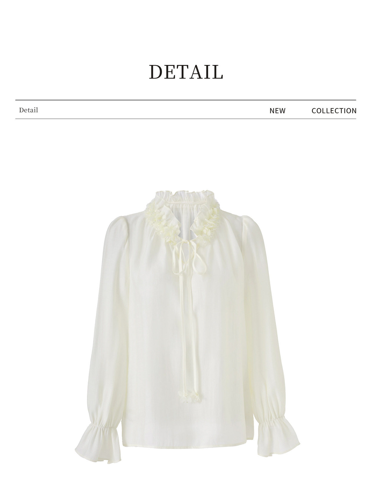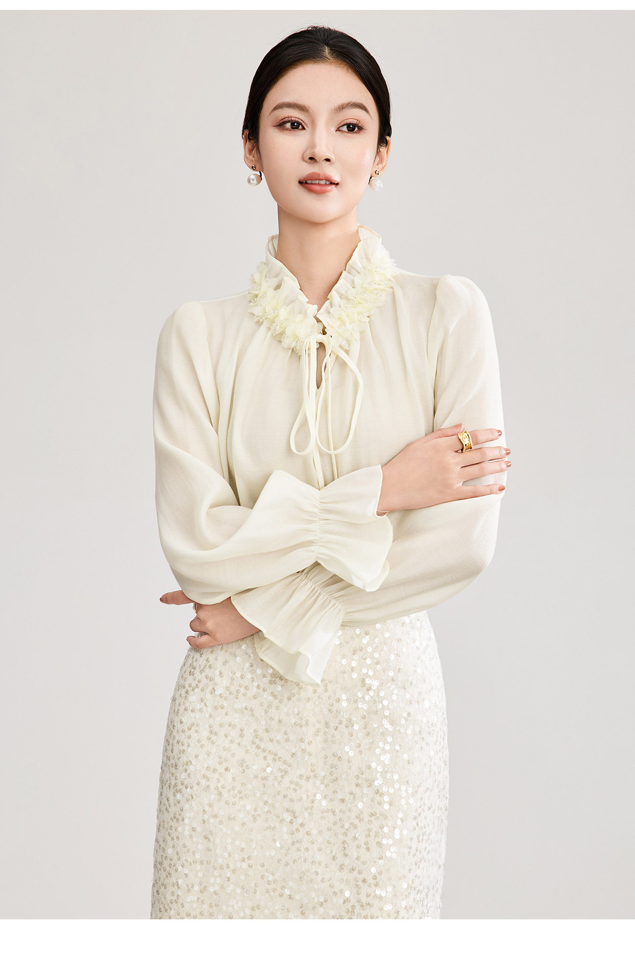 「高货wl」全新升级【铂金会员266/天猫359/差价93】(02209)洛诗琳气质天丝钉珠花瓣领衬衫2026春季新款垂感系带上衣