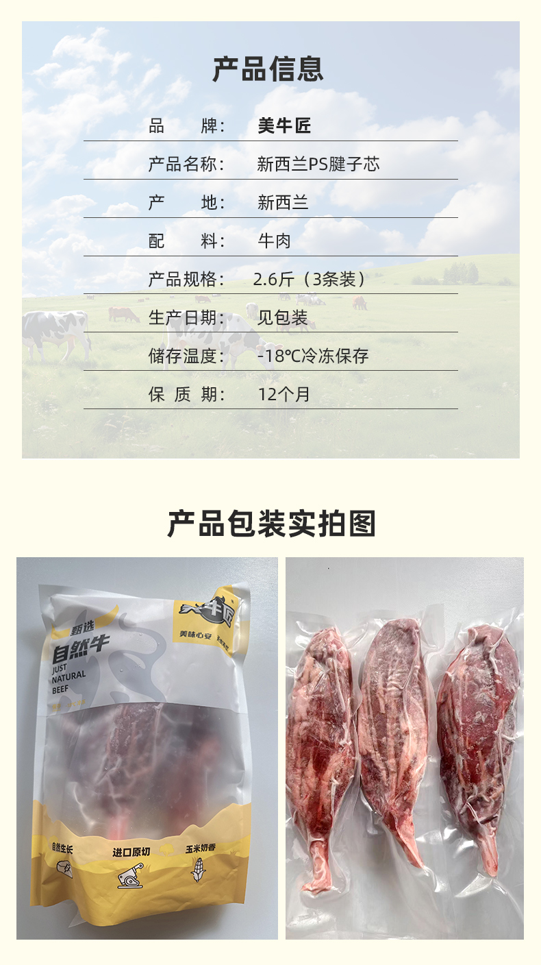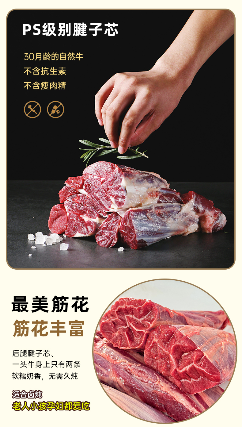 PS级草饲腱子芯 新西兰进口 纯腱芯3条独立包装 约2.6斤 牛腱子 天花板等级