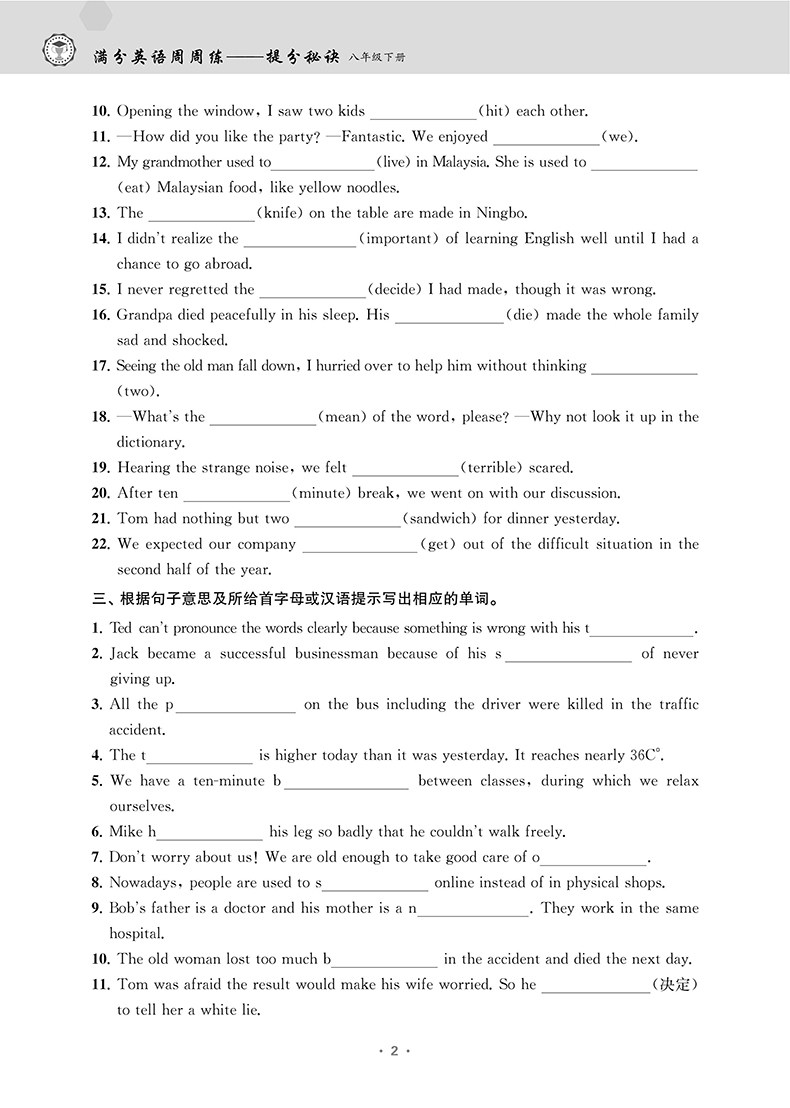 2025提分秘诀满分英语周周练上册下册八年级九年级全一册