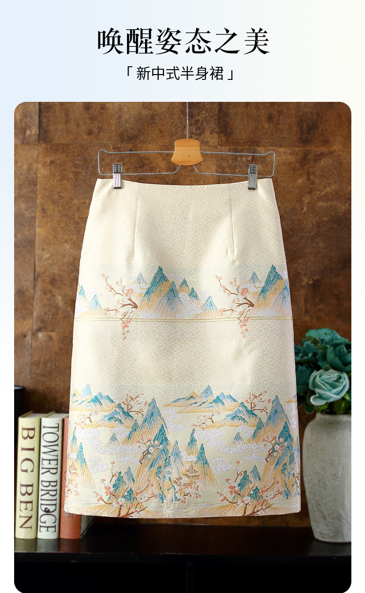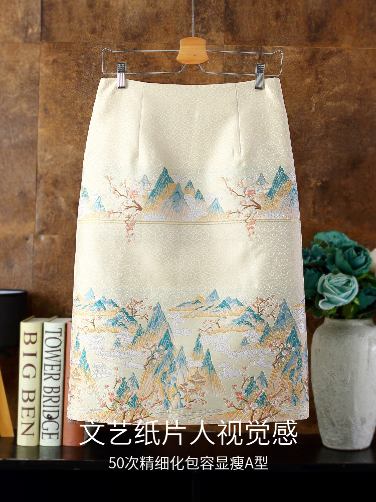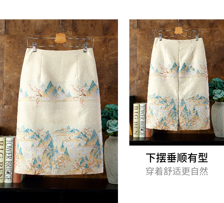 织锦提花千里江山,直筒式中长款高级感半身裙ZSM-240336