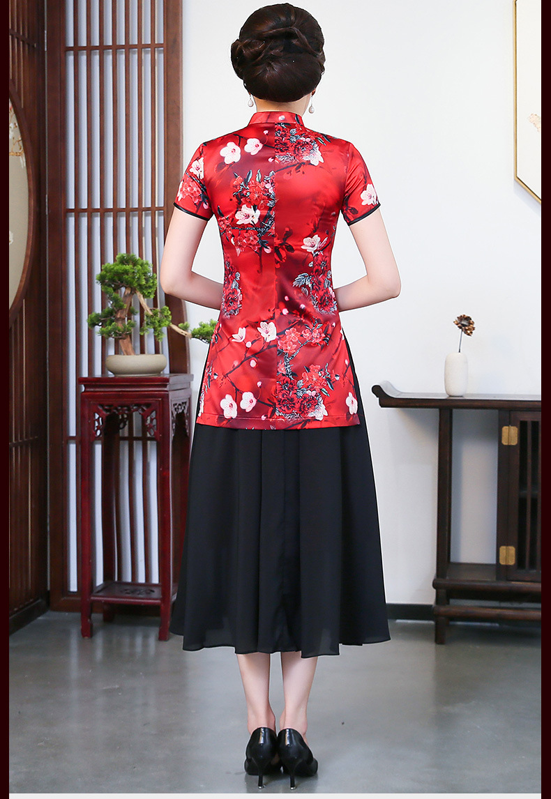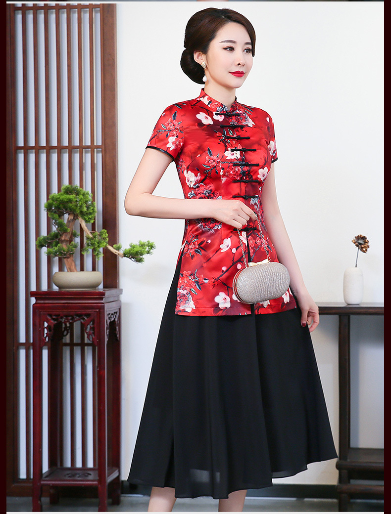 LYE2085新款民族风优雅气质印花短袖唐装套装