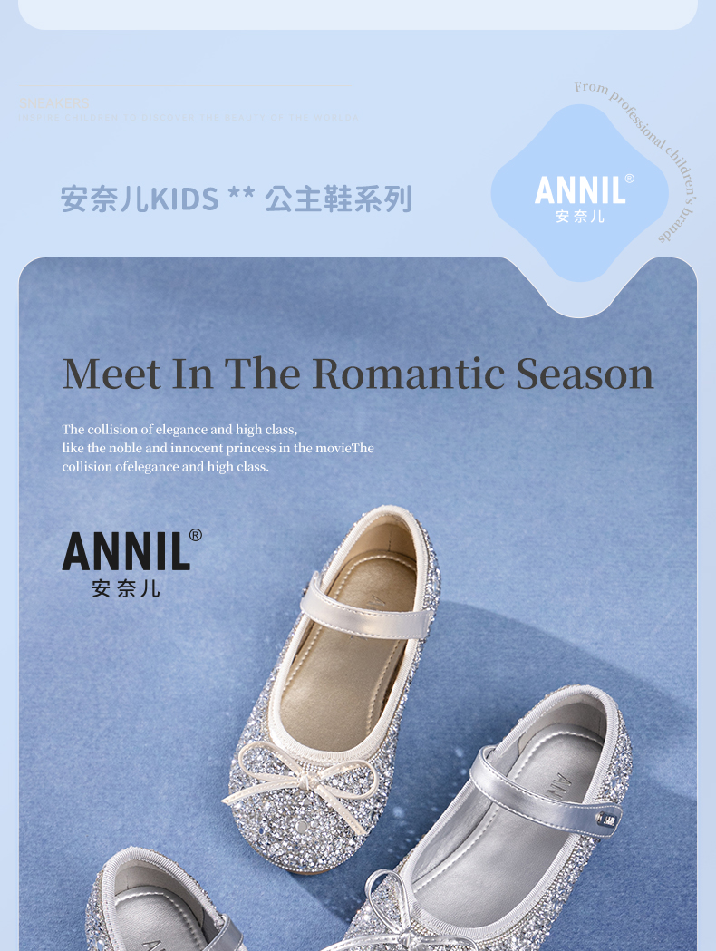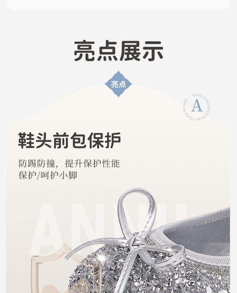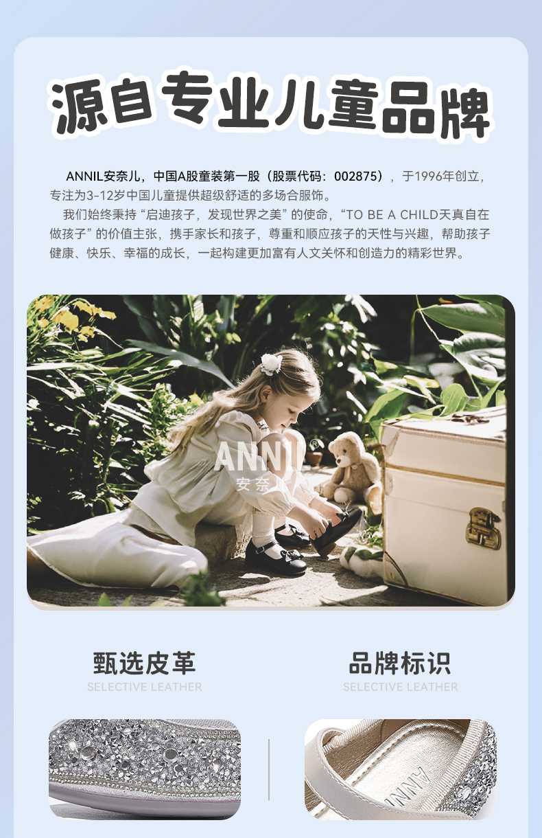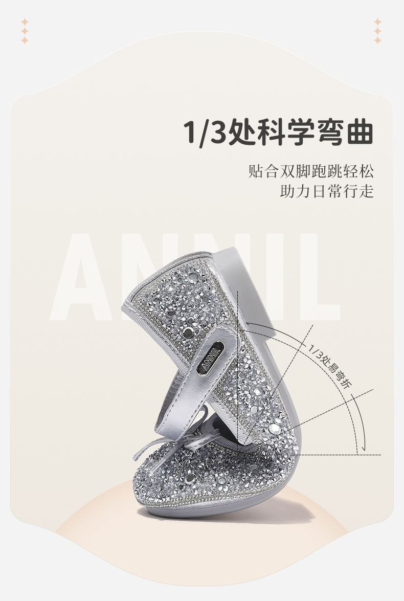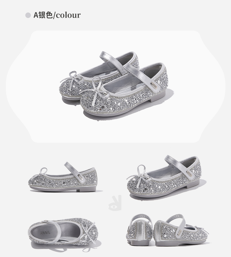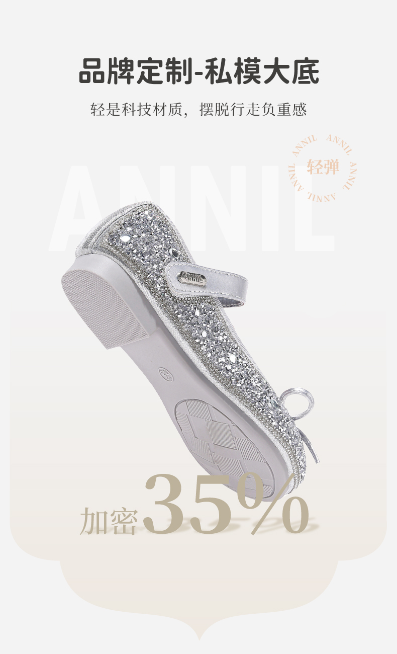 ANNIL/安奈儿儿童皮鞋2025春秋女童鞋亮闪闪公主鞋浅口宝宝水晶舞蹈鞋子HG5101222