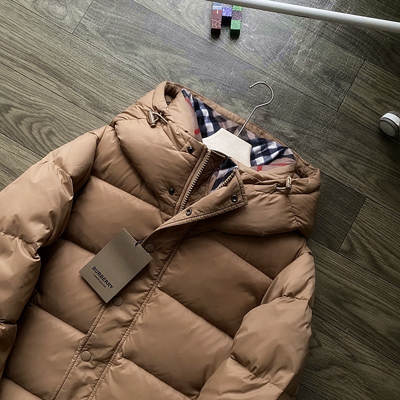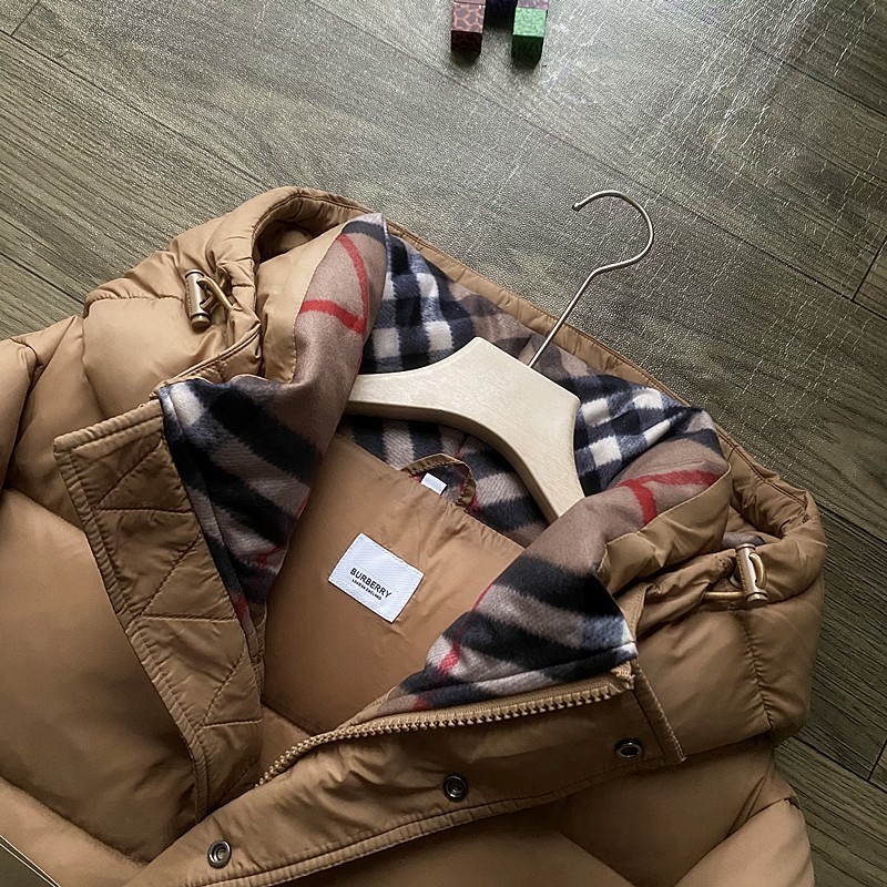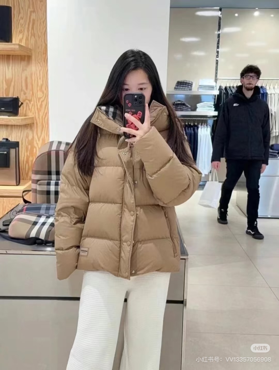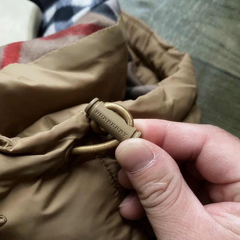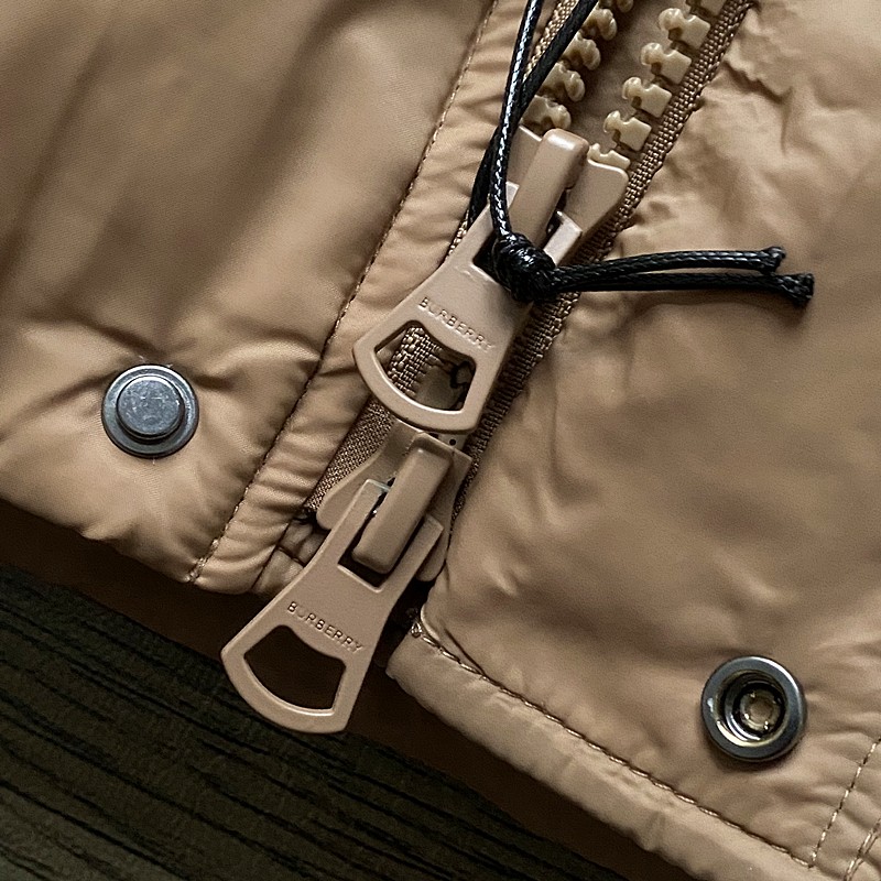 兼具实用性与时尚感。经典连帽设计搭配 细节方面延续Burberry一贯的高水准高领与帽内铺陈标志性Vintage复古格纹衬里,低调却极具辨识度。肩部点缀立体硅胶徽标,质感高级,彰显品牌标识。前襟采用按扣与隐藏式双向拉链结构,兼顾安全与美观;连帽及下摆均配备抽绳设计,可根据需要自由调节松紧,打造立体廓形。羽绒填充方面,精选90%优质羽绒与10%羽毛,保暖性能出众却不显臃肿,轻盈舒适,上身效果极佳。无论作为日常通勤的防寒之选,还是冬季出街的时尚亮点,都能轻松驾驭。这款羽绒服将经典格调与多功能性完美结合,是Burberry秋冬系列中不可错过的核心单品。