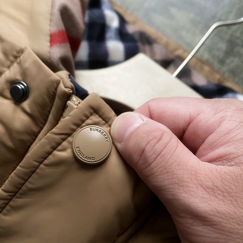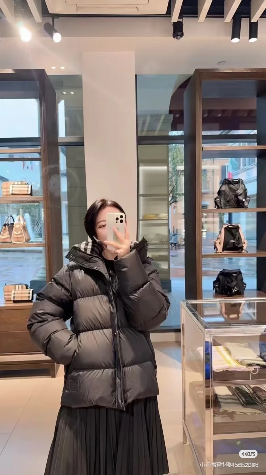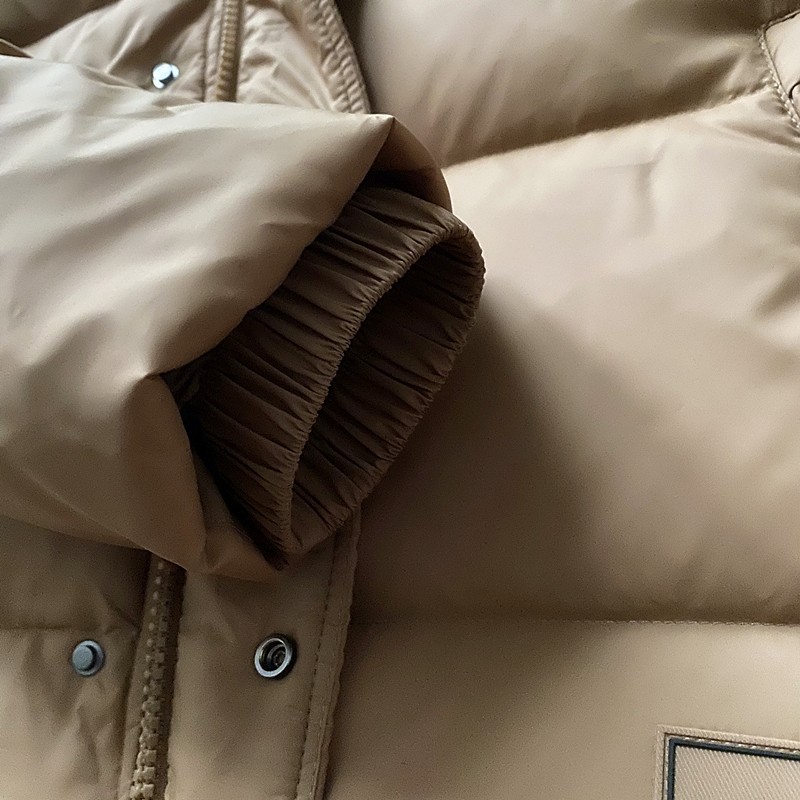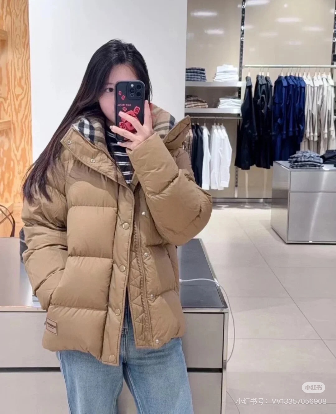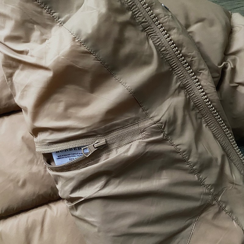 兼具实用性与时尚感。经典连帽设计搭配 细节方面延续Burberry一贯的高水准高领与帽内铺陈标志性Vintage复古格纹衬里,低调却极具辨识度。肩部点缀立体硅胶徽标,质感高级,彰显品牌标识。前襟采用按扣与隐藏式双向拉链结构,兼顾安全与美观;连帽及下摆均配备抽绳设计,可根据需要自由调节松紧,打造立体廓形。羽绒填充方面,精选90%优质羽绒与10%羽毛,保暖性能出众却不显臃肿,轻盈舒适,上身效果极佳。无论作为日常通勤的防寒之选,还是冬季出街的时尚亮点,都能轻松驾驭。这款羽绒服将经典格调与多功能性完美结合,是Burberry秋冬系列中不可错过的核心单品。