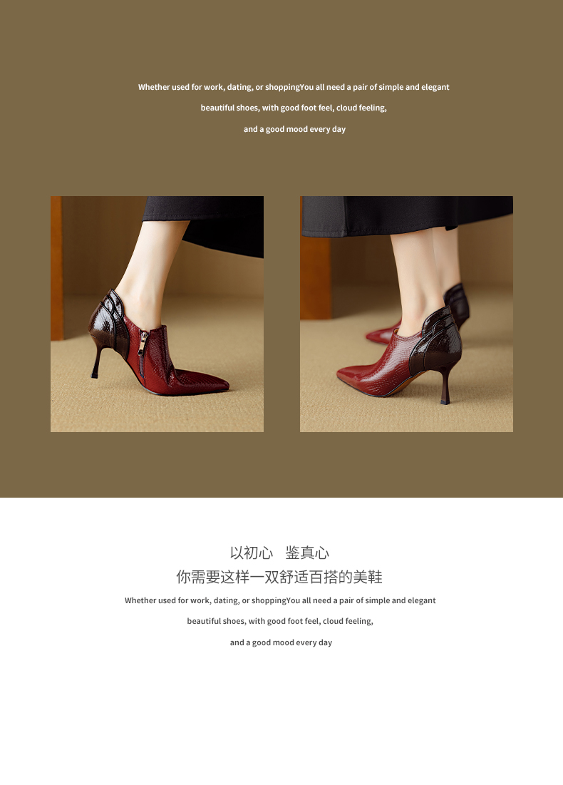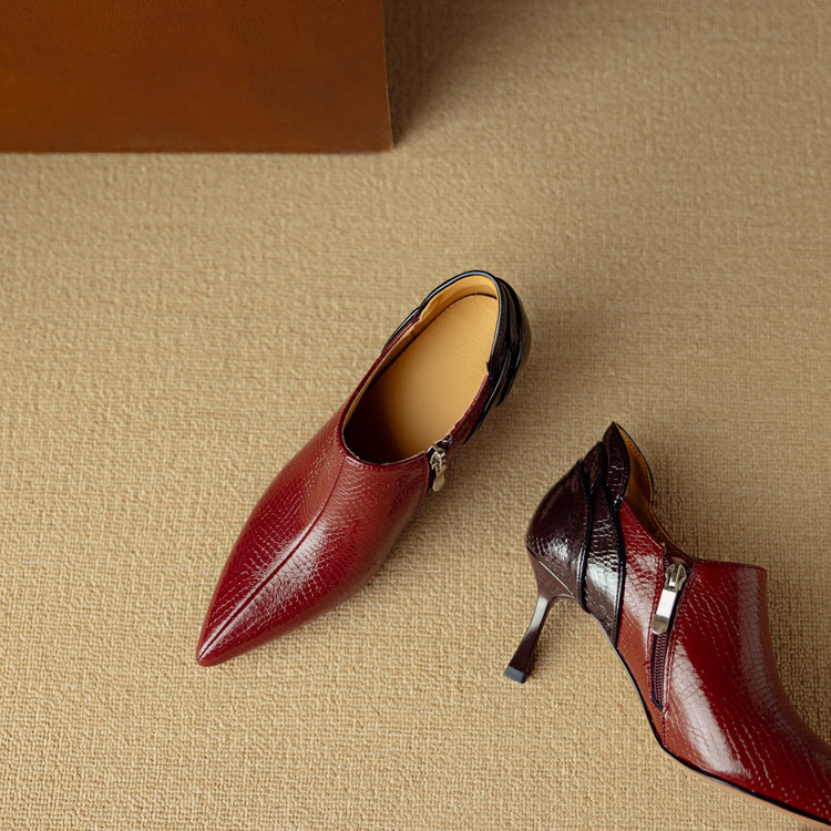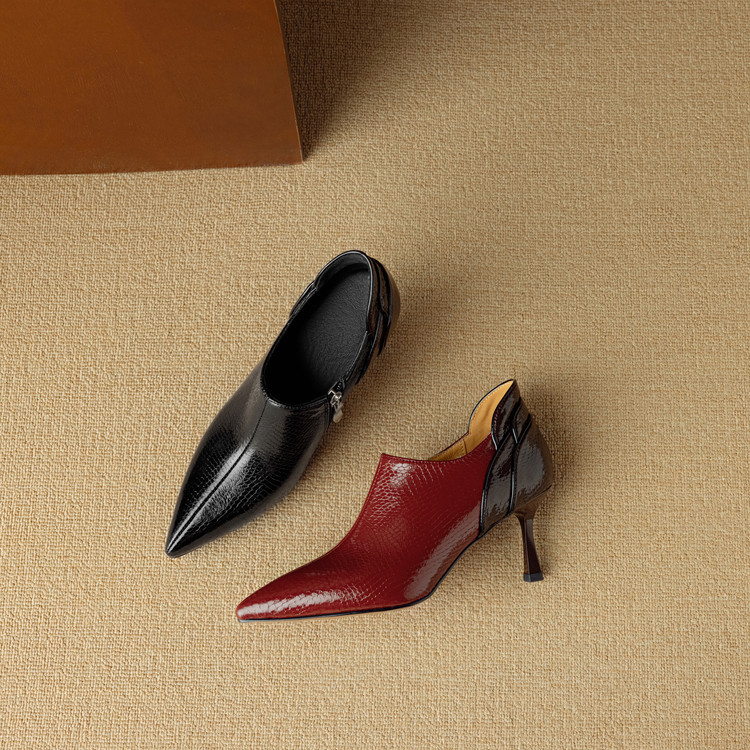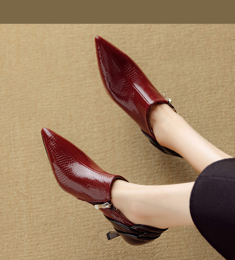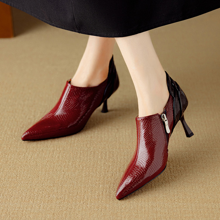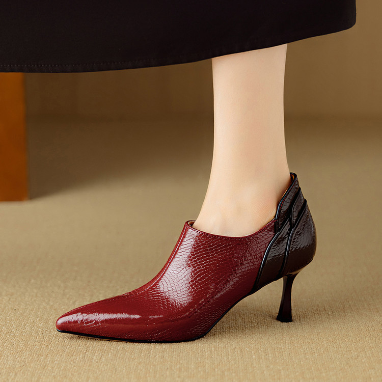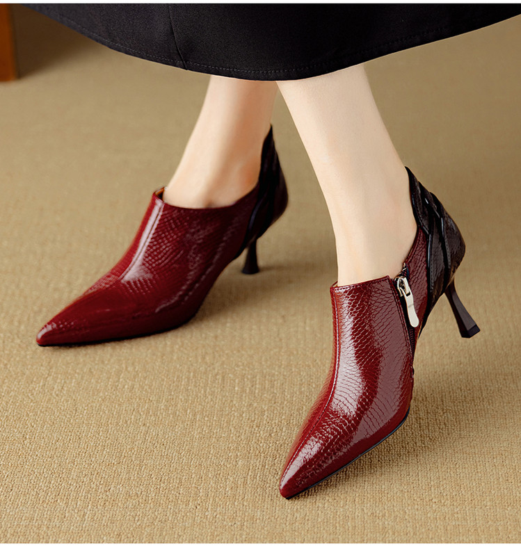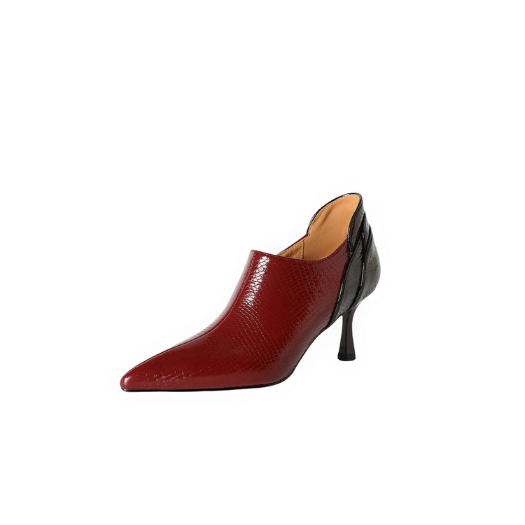 【预售5天】气质百搭秋季新款深口单鞋女尖头细跟真皮酒红色英伦风高跟鞋DB&M6560