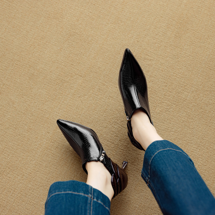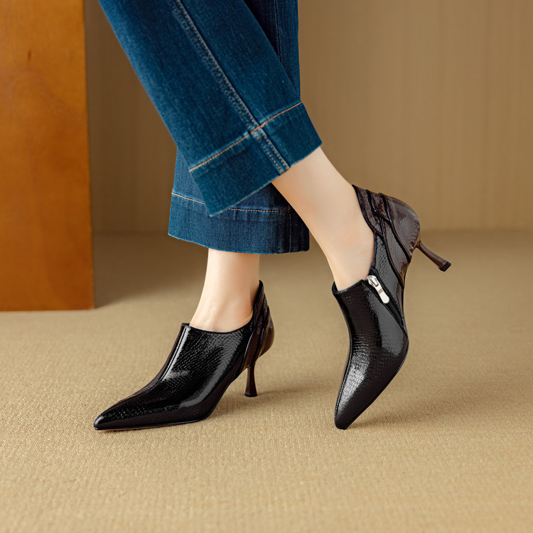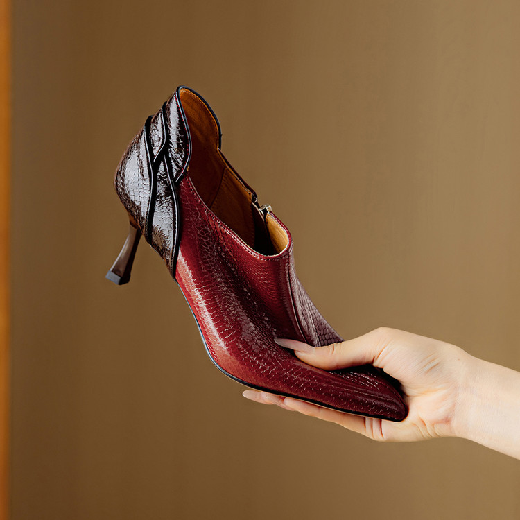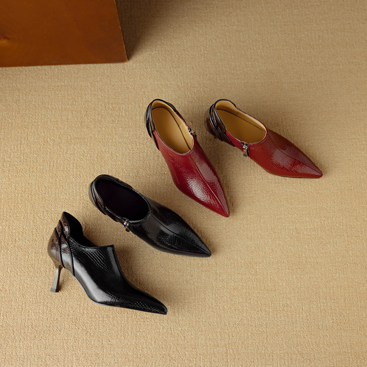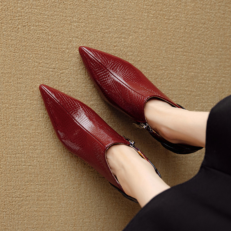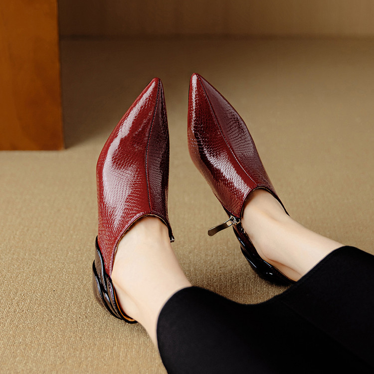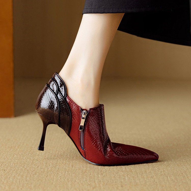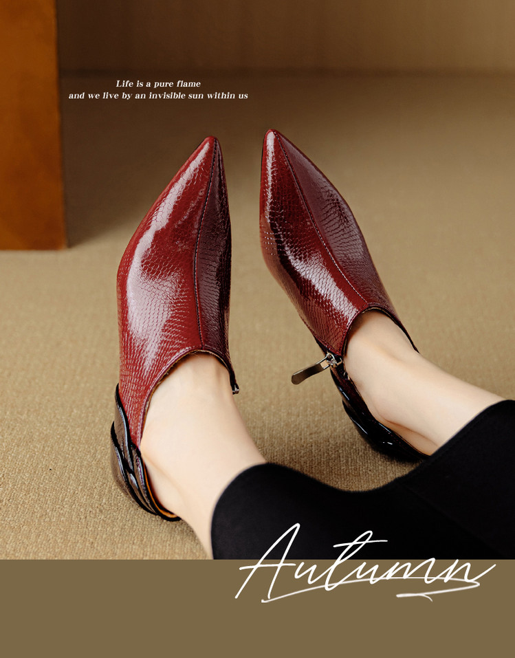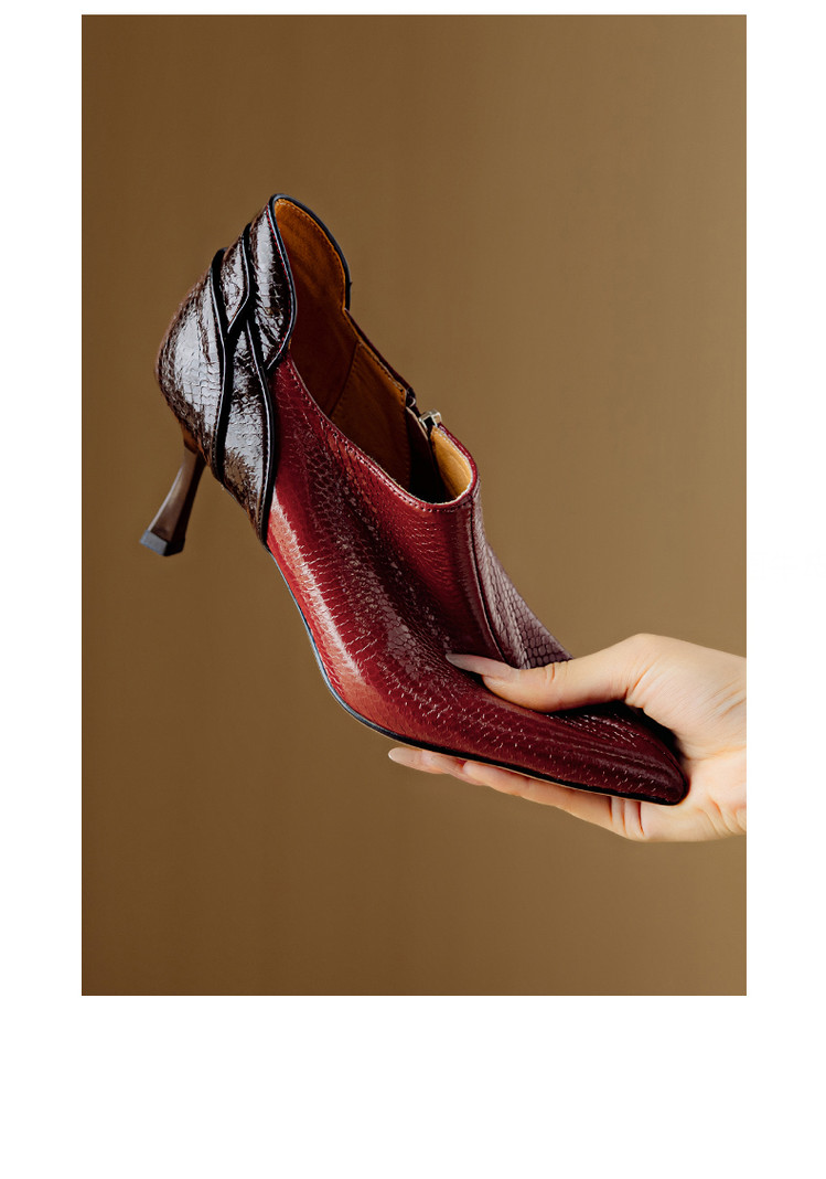 【预售5天】气质百搭秋季新款深口单鞋女尖头细跟真皮酒红色英伦风高跟鞋DB&M6560