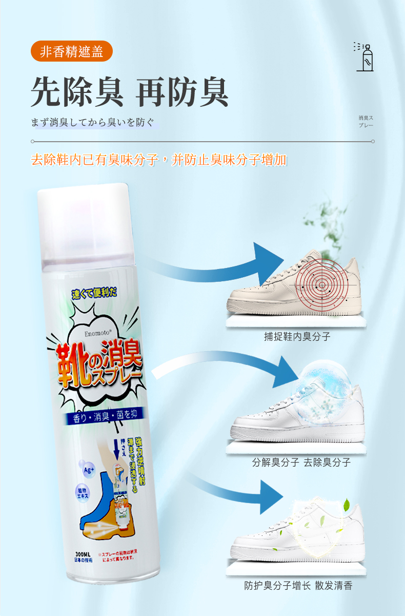 【告别脚臭,即喷即穿】倒喷鞋袜除臭喷雾倒喷设计防臭除味清爽速干即喷即穿清新消臭鞋袜除臭喷雾
