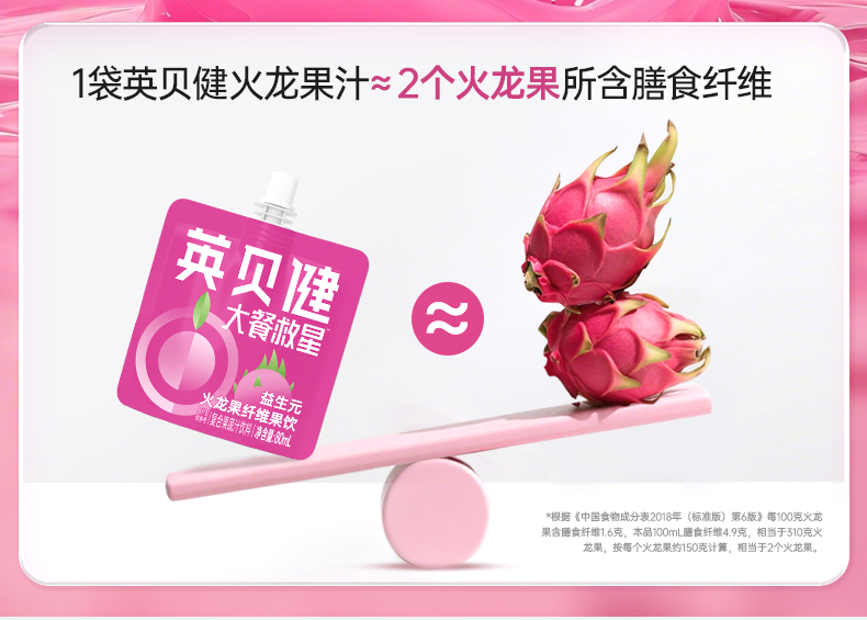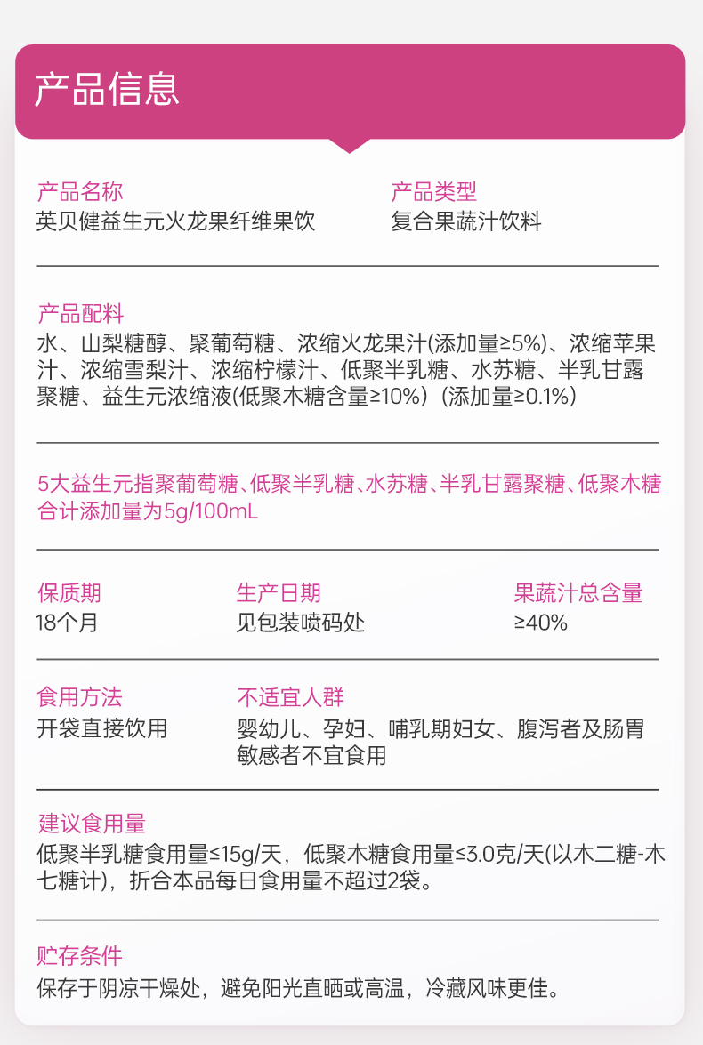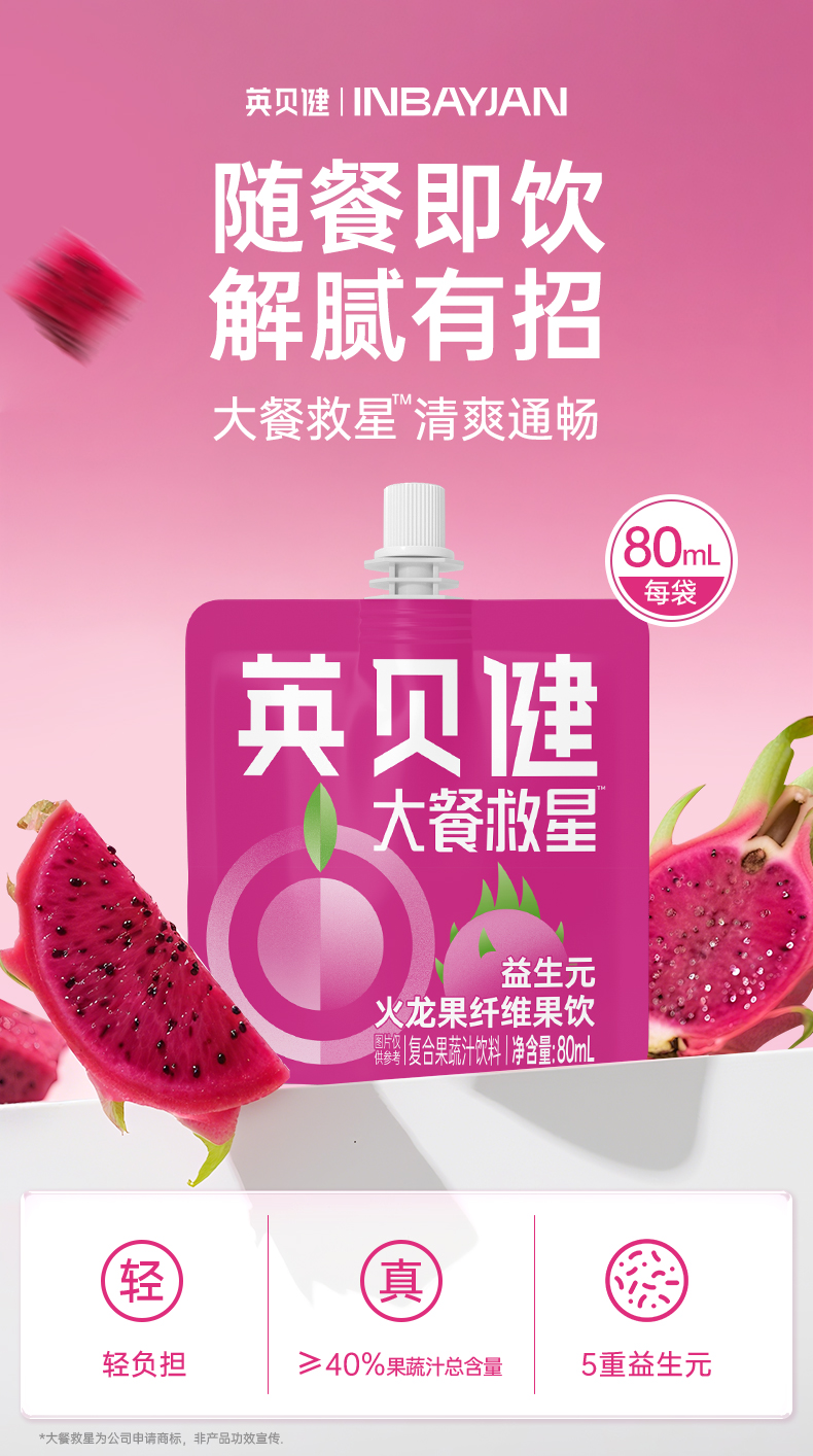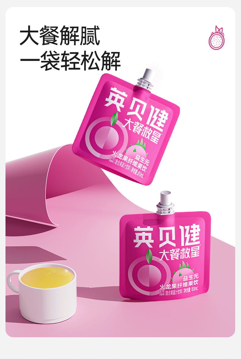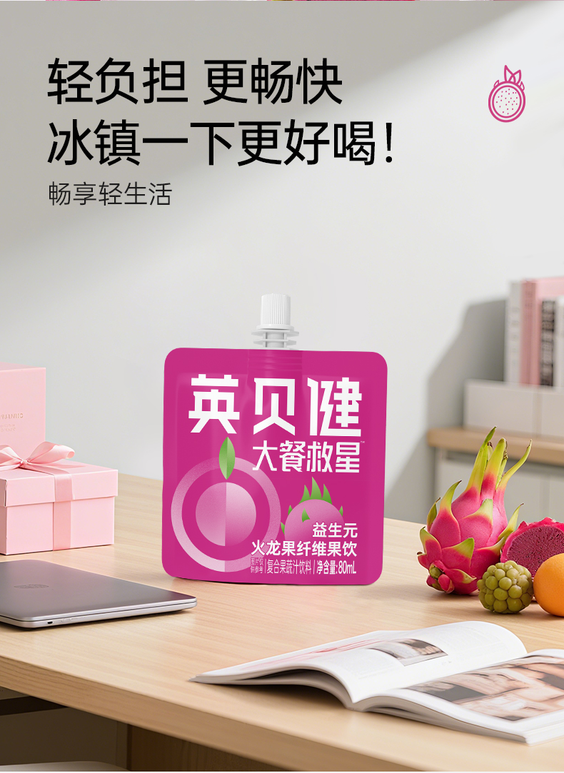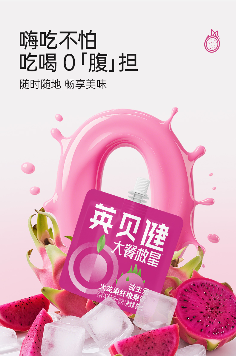 全线热销5000万+瓶!【大餐救星 火龙果+5种益生元 自然畅快】英贝健 火龙果益生元纤维果饮(80ml/袋*12)