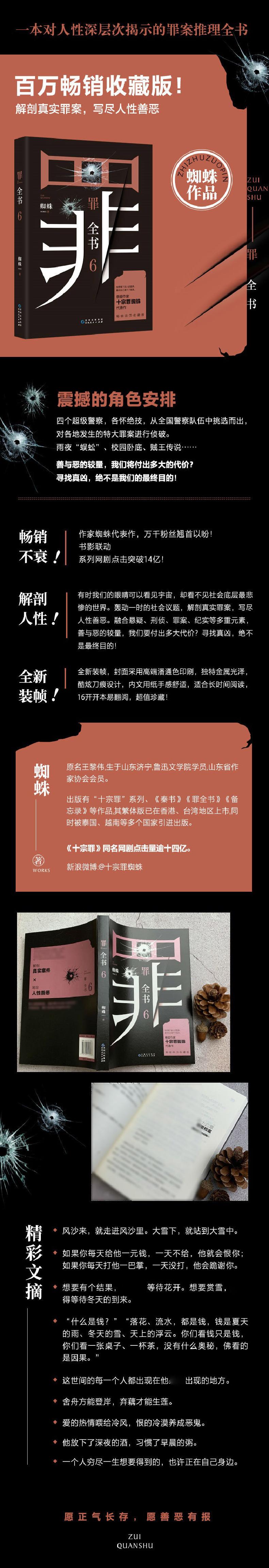 1.“我写作的时候,头顶没有太阳,所以我坐在黑暗之中,点燃了自己,借着这点卑微之光,走进地狱深处。”作家蜘蛛代表作,万千粉丝翘首以盼!畅销近十年而不衰,书影联动,IP,系列网剧点击突破14亿!