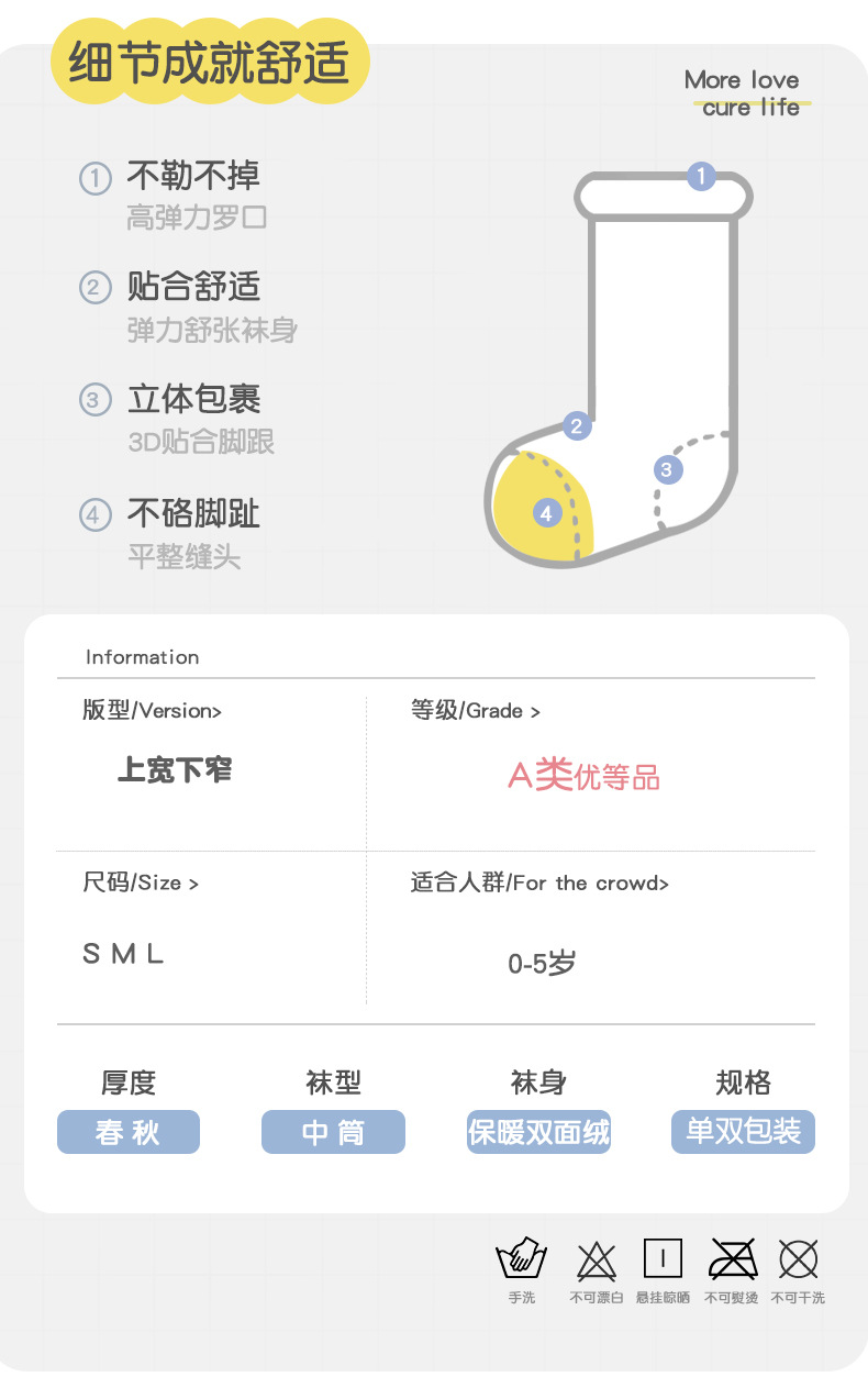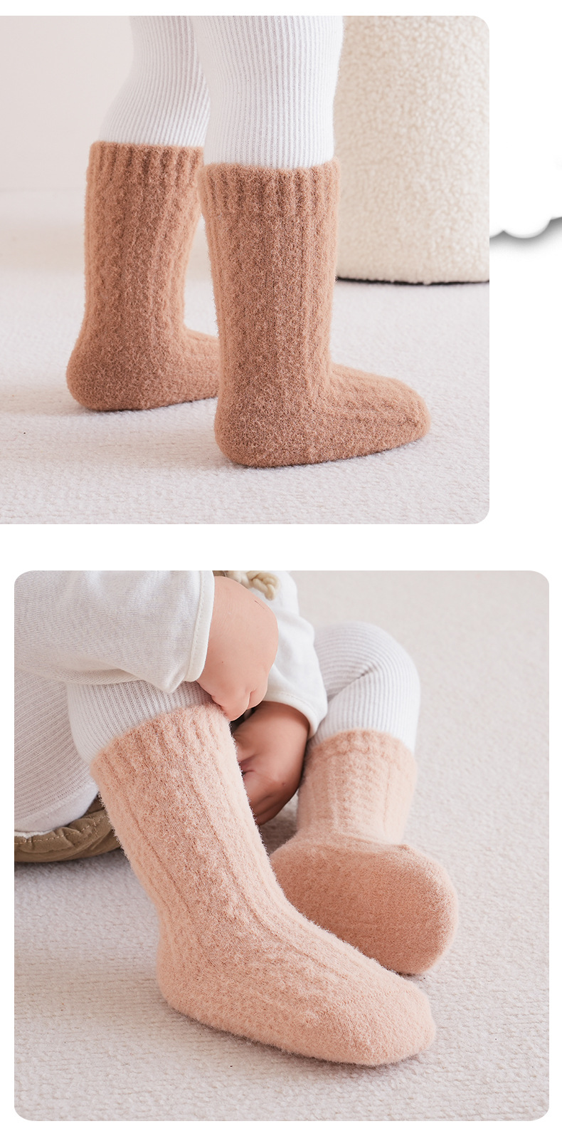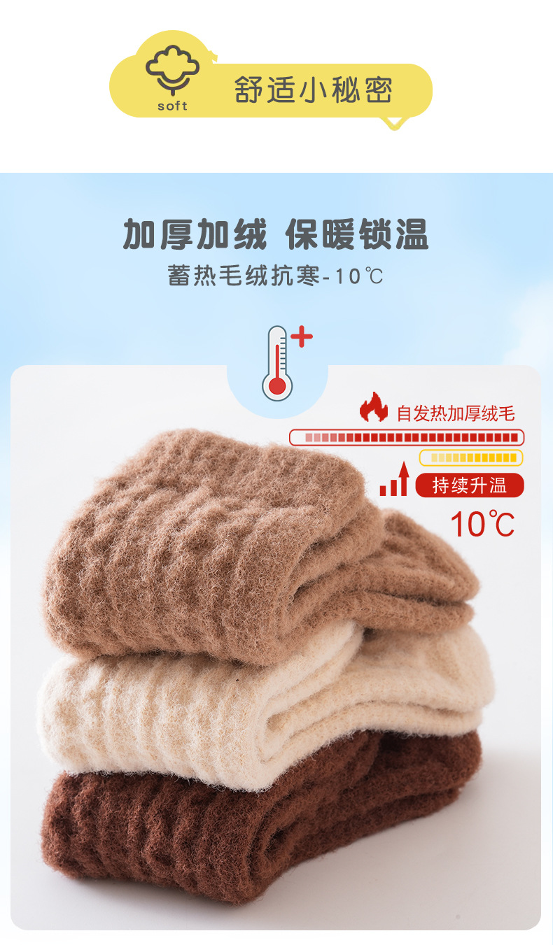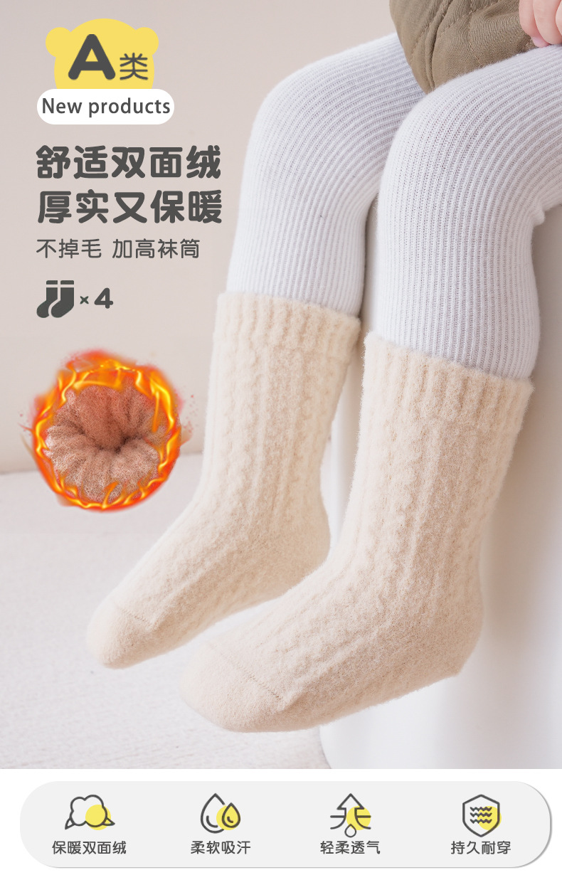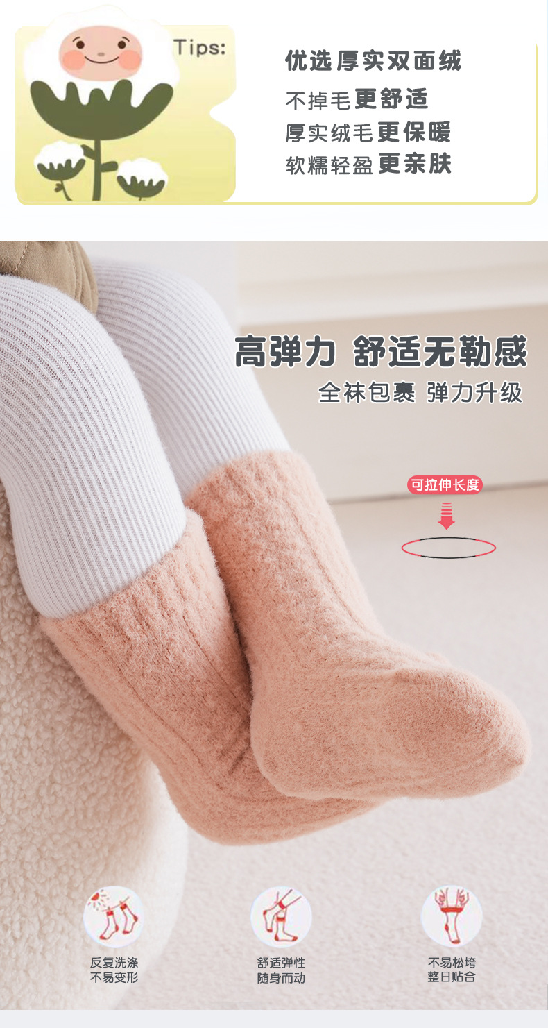 超值三双装【舒适双面绒!厚实又保暖】A类无荧光,给“足”安全感,秋冬婴儿袜子新款加厚加绒柔软舒适宝宝袜儿童保暖蓄热长筒袜。rc